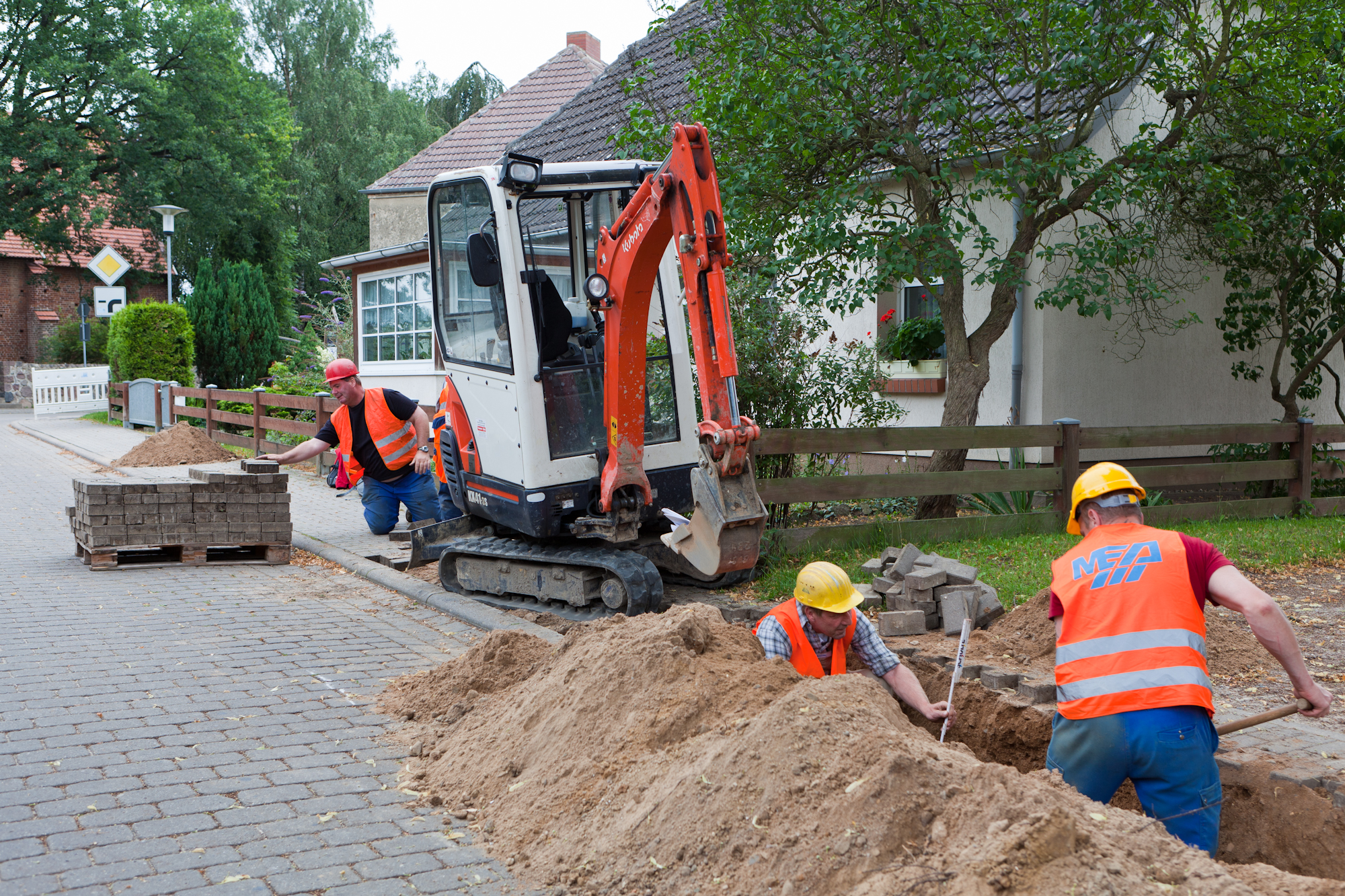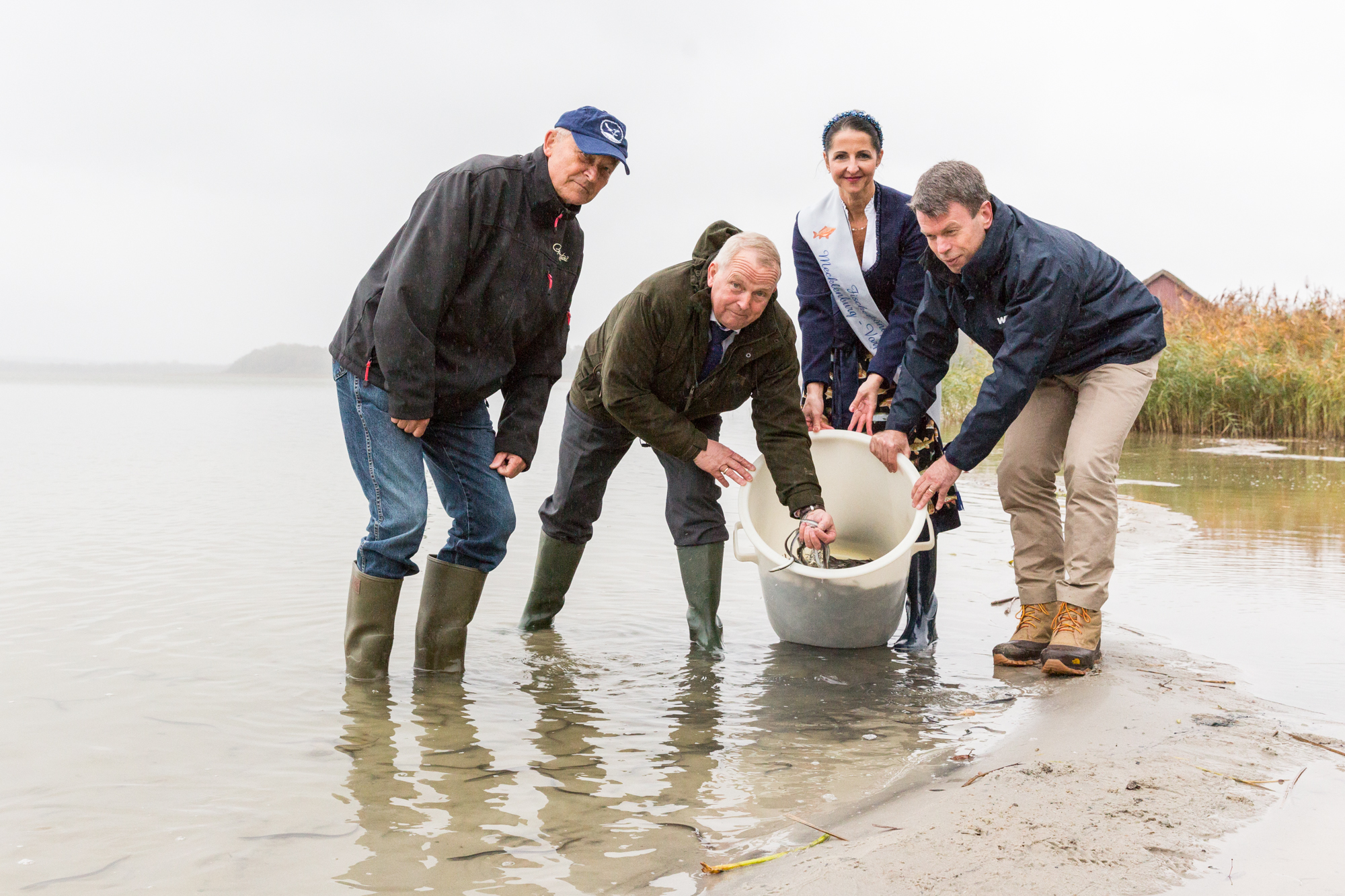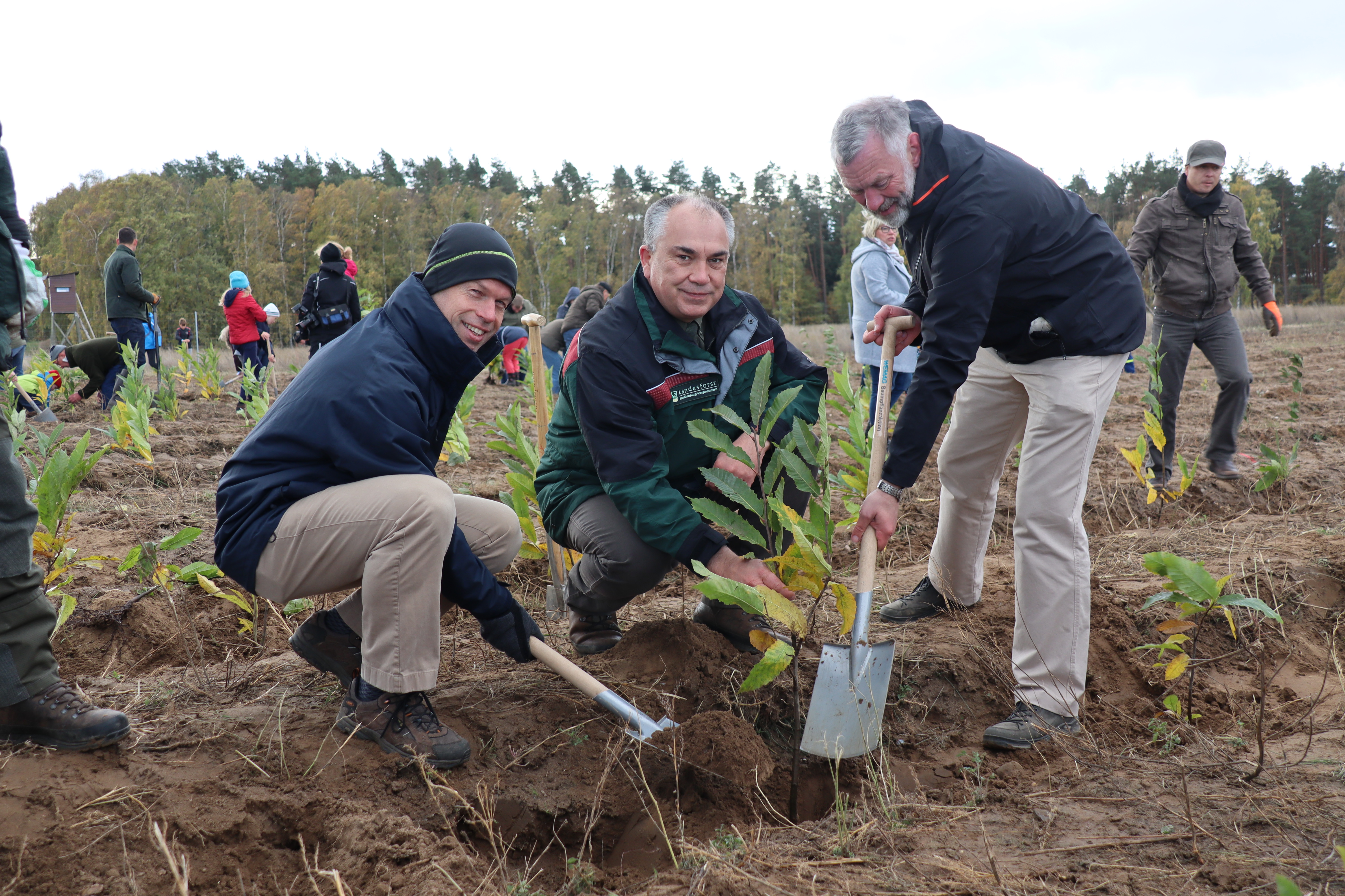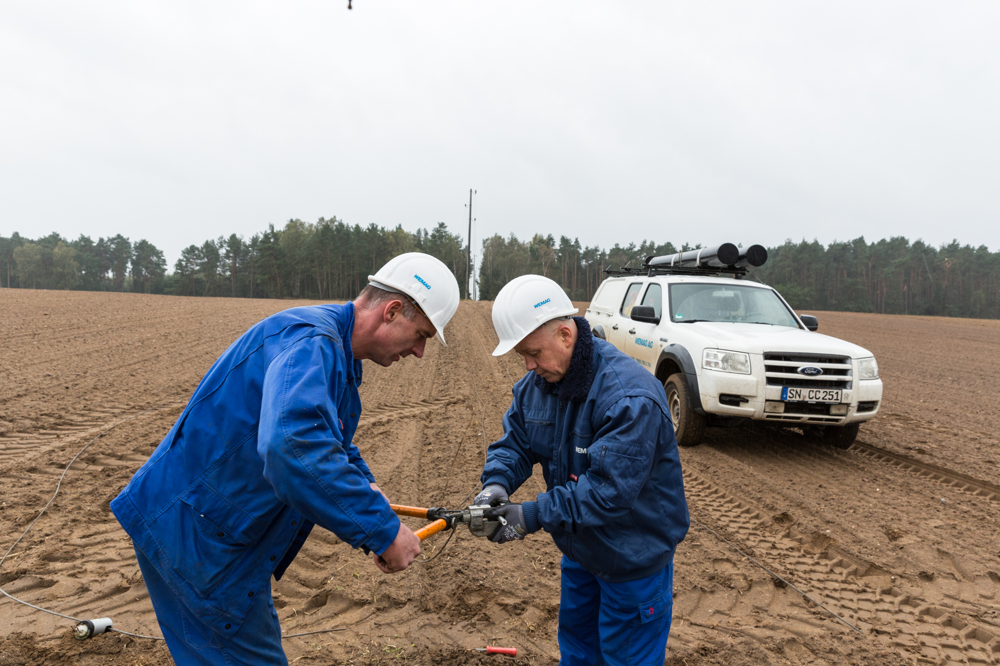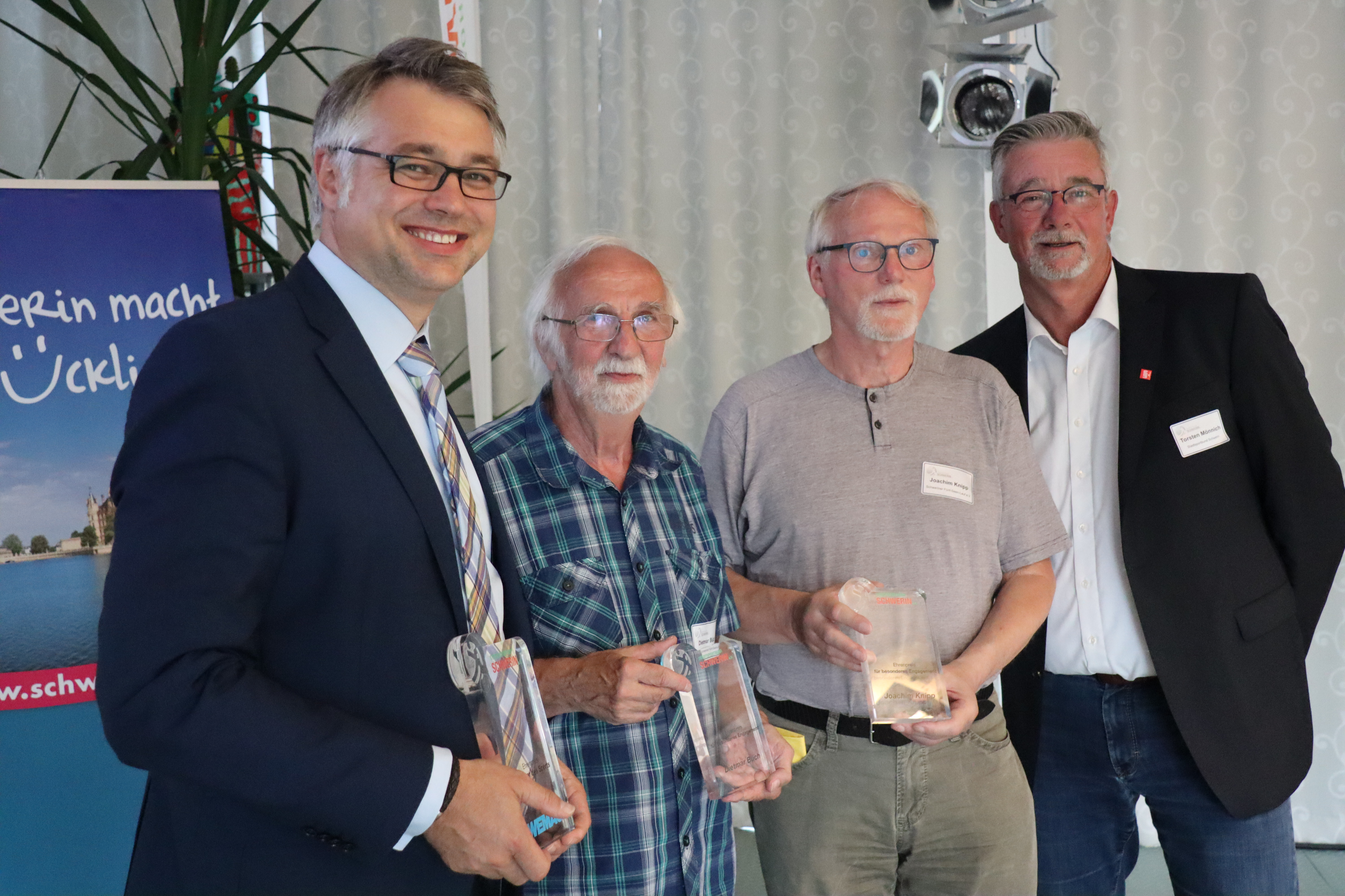 Martin Retzlaff, Geschäftsführer der WEMACOM Breitband GmbH, MdB Frank Junge, Christian Pegel, Minister für Energie, Infrastruktur und Digitalisierung, WEMAG-Vorstand Thomas Murche und Wolfgang Schmülling, 1. Stellvertreter des Landrates des Landkreises Ludwigslust-Parchim (v.l.), haben in Neuburg, Gemeinde Siggelkow, den symbolischen Spatenstich für den Breitbandausbau durchgeführt / Foto: WEMAG/Stephan Rudolph-Kramer
