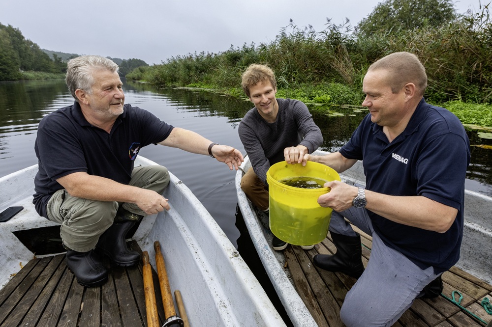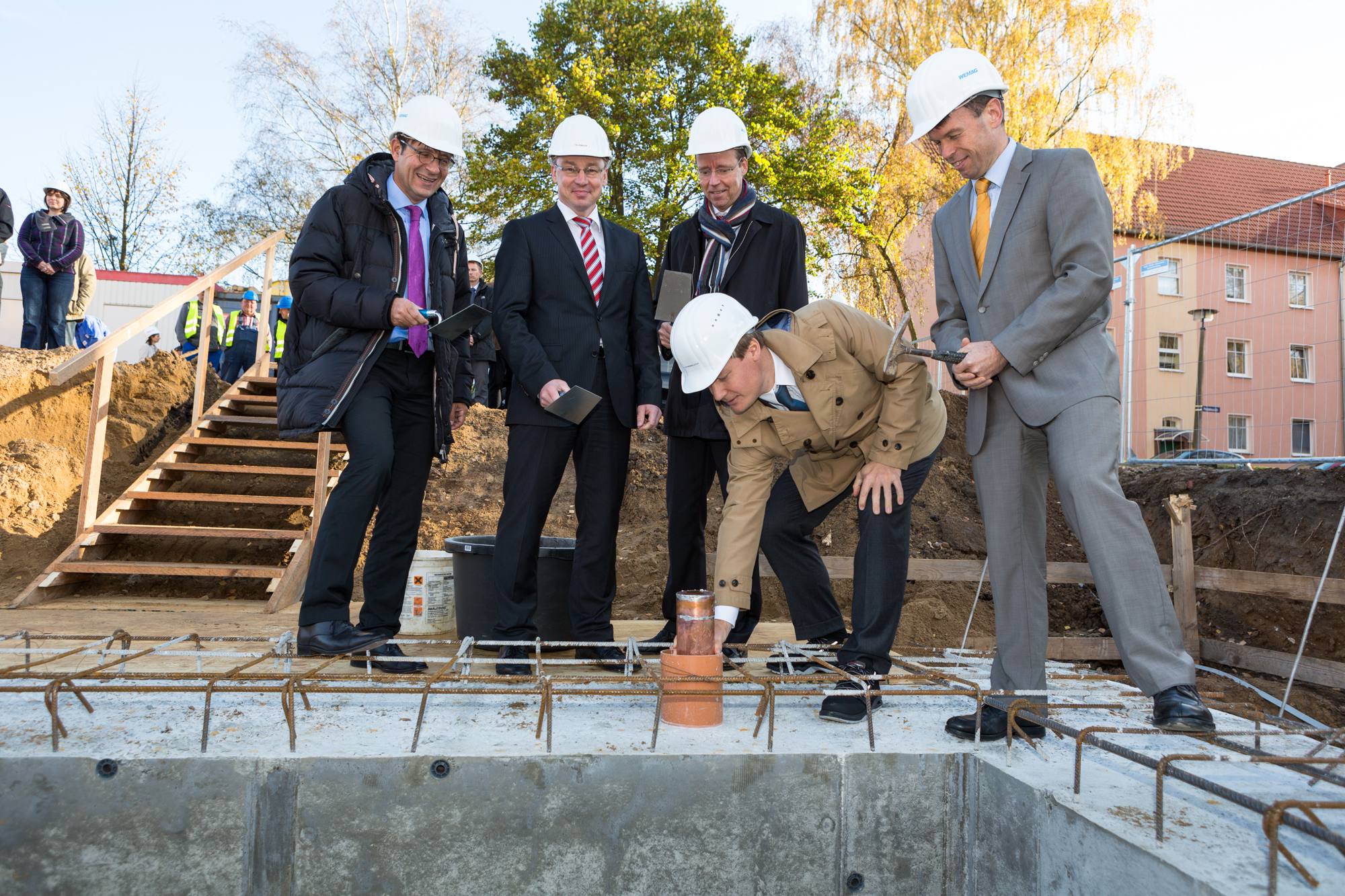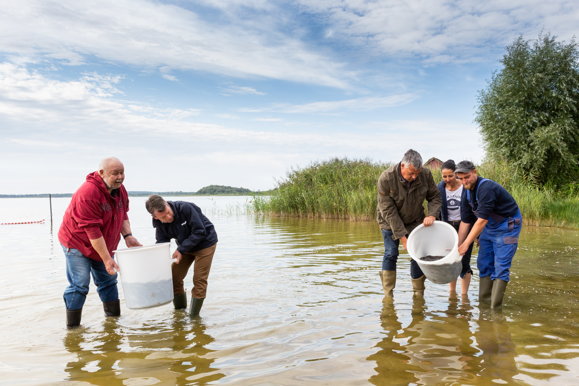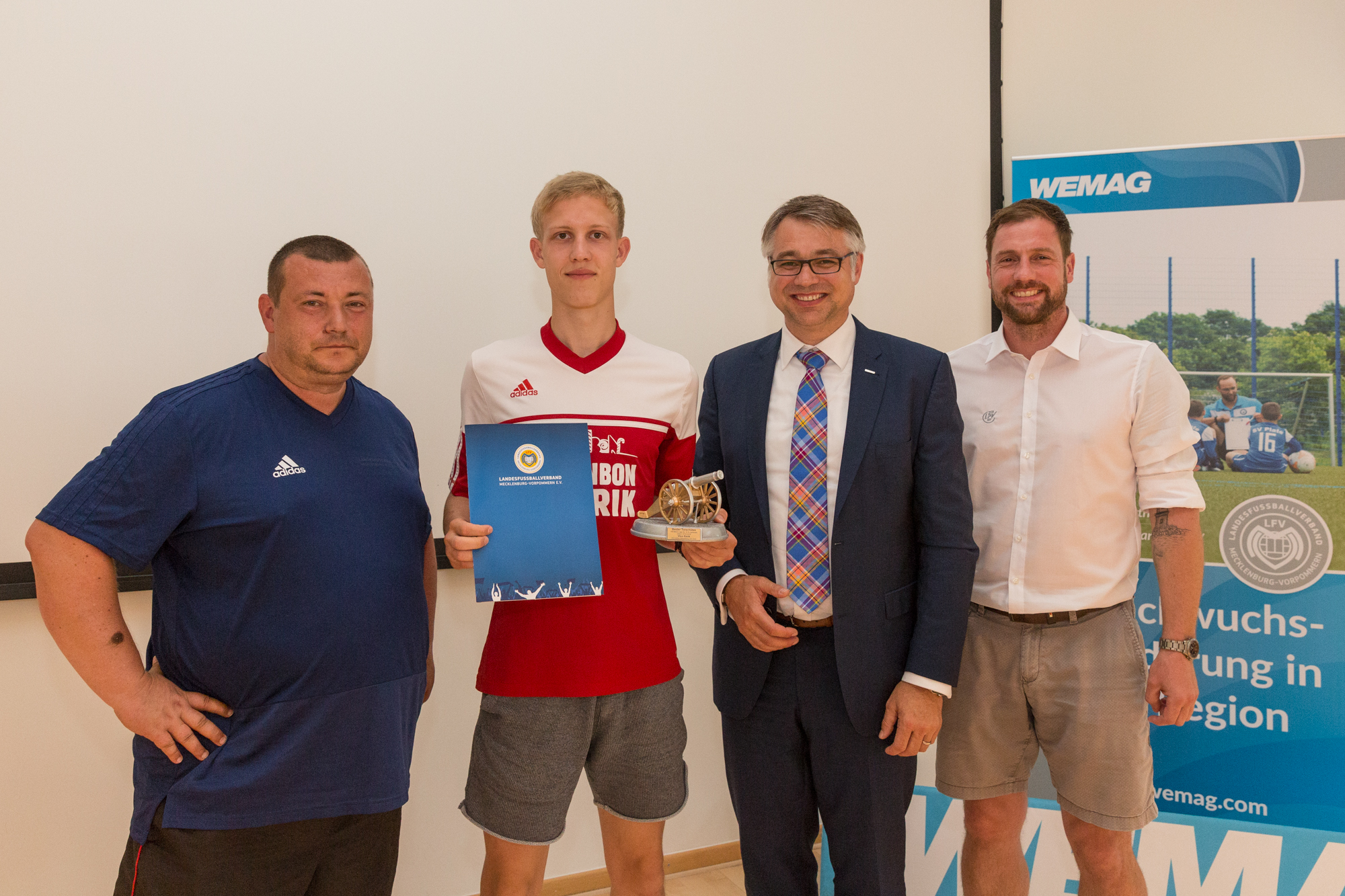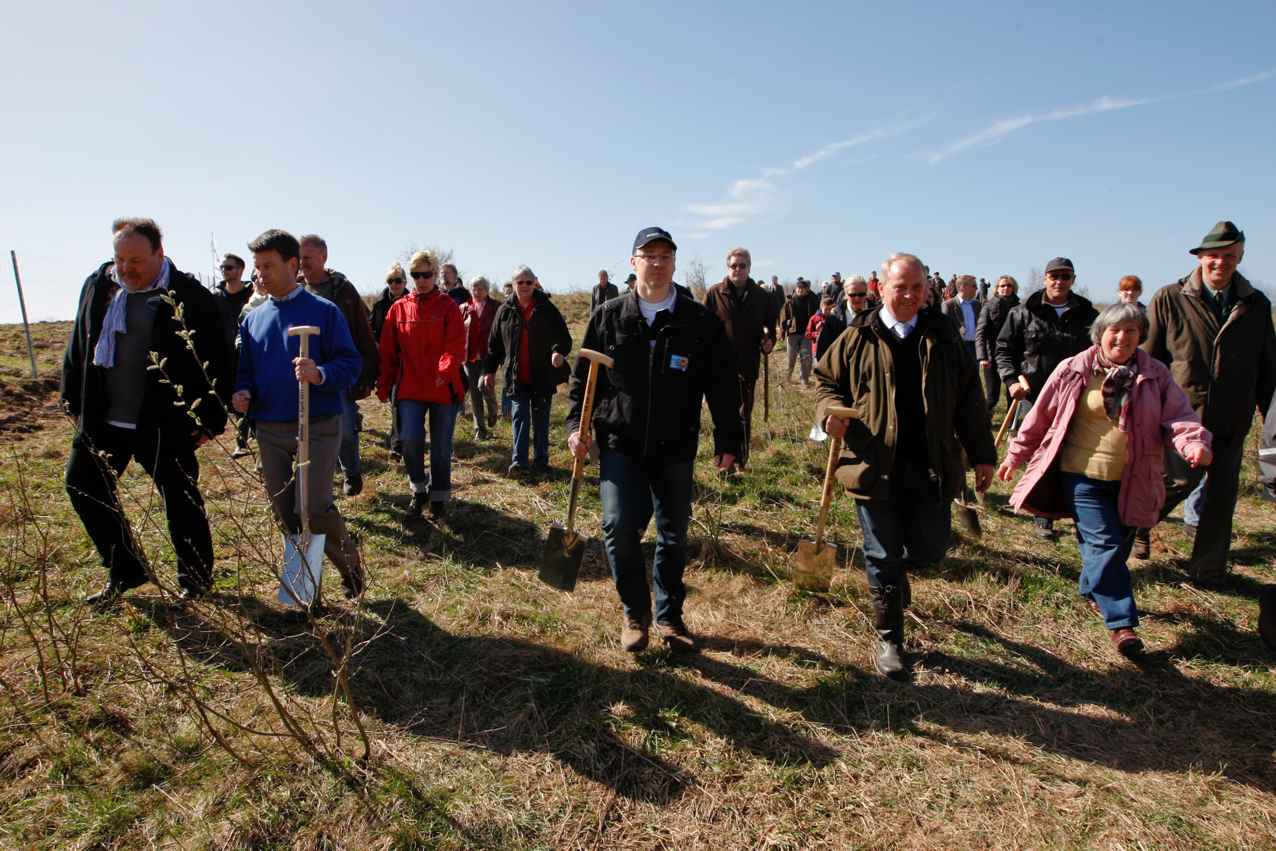 Martin Retzlaff, Geschäftsführer der WEMACOM Breitband GmbH, MdB Frank Junge, Christian Pegel, Minister für Energie, Infrastruktur und Digitalisierung, WEMAG-Vorstand Thomas Murche und Wolfgang Schmülling, 1. Stellvertreter des Landrates des Landkreises Ludwigslust-Parchim (v.l.), haben in Neuburg, Gemeinde Siggelkow, den symbolischen Spatenstich für den Breitbandausbau durchgeführt / Foto: WEMAG/Stephan Rudolph-Kramer