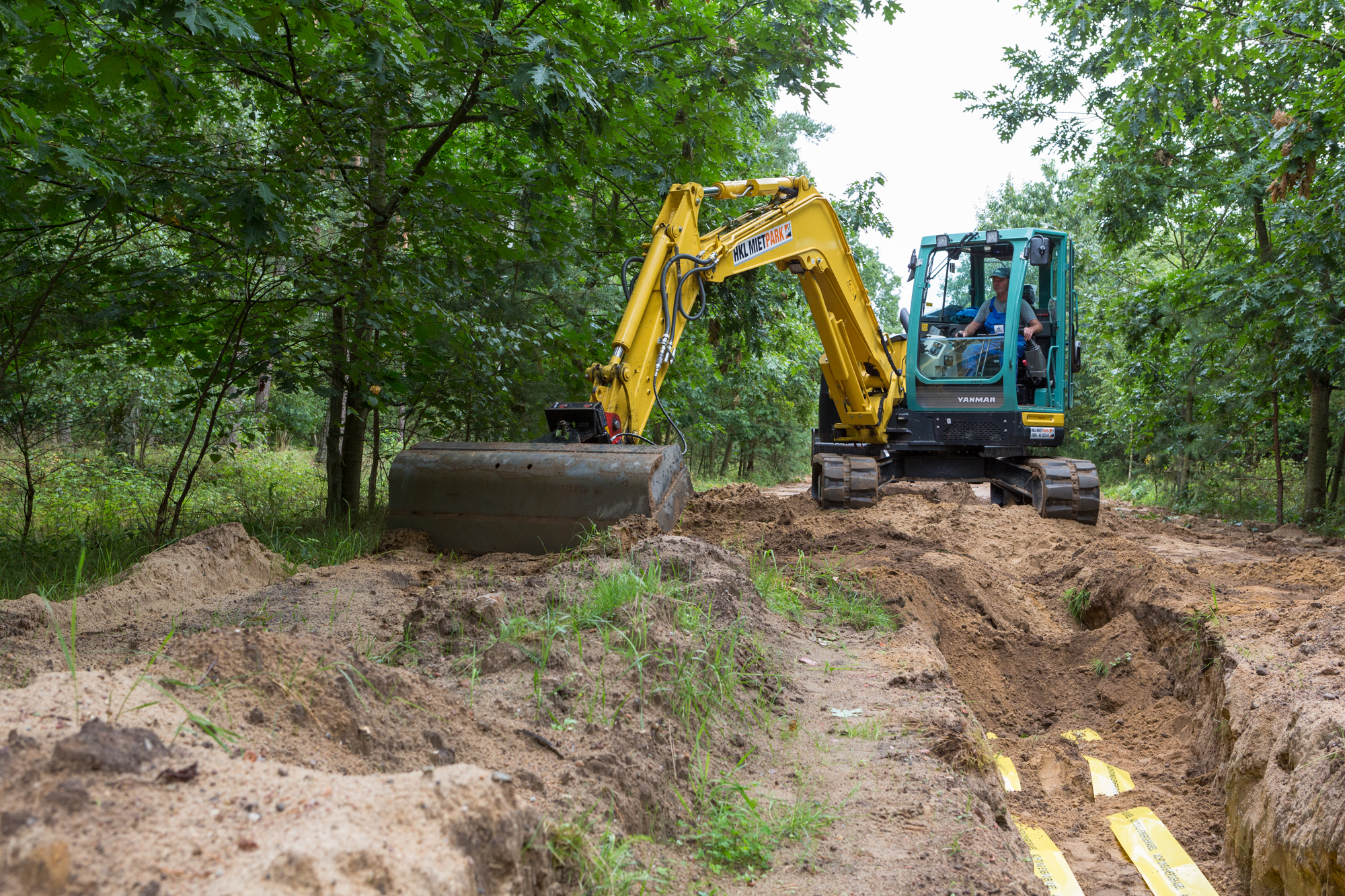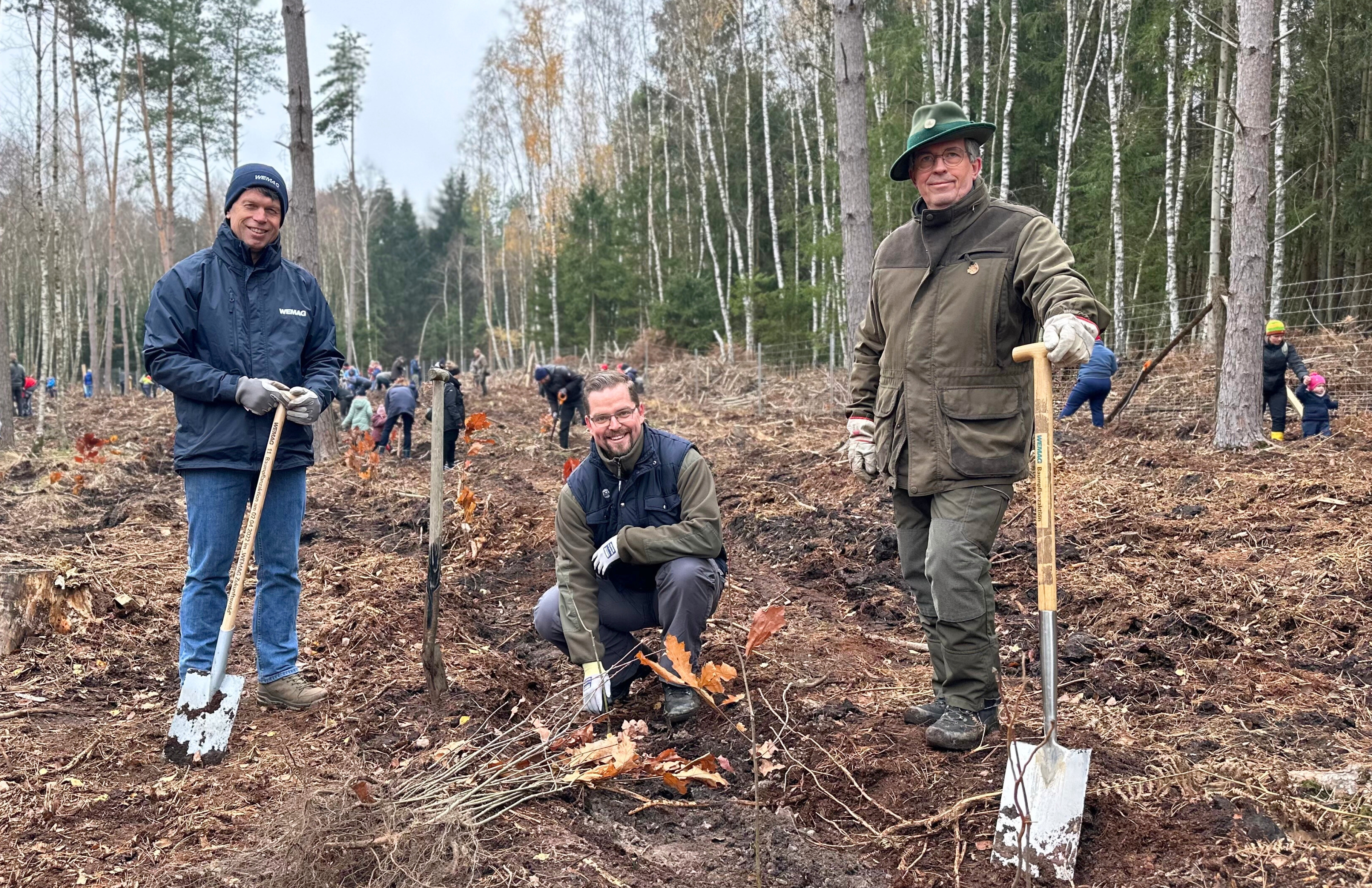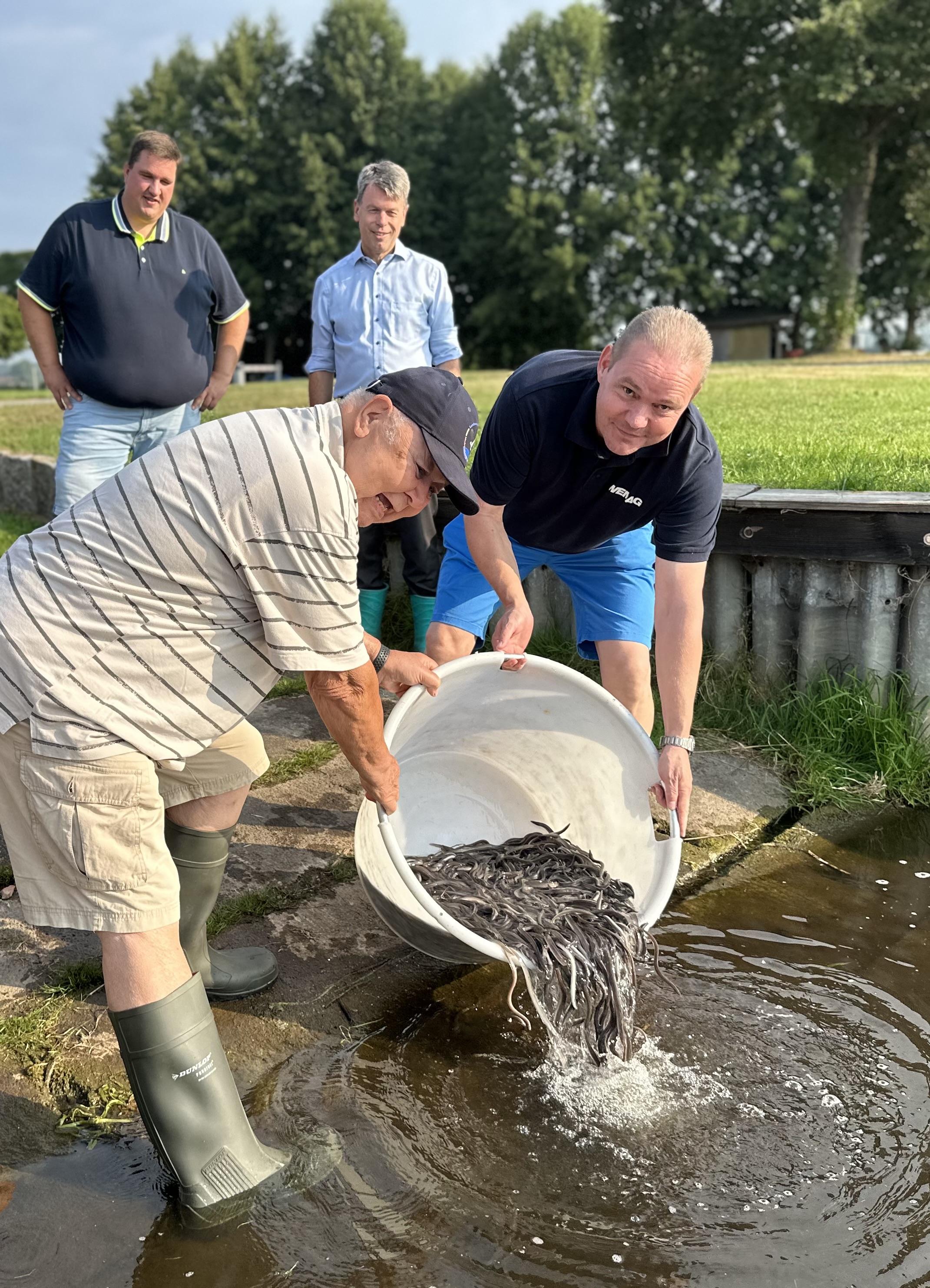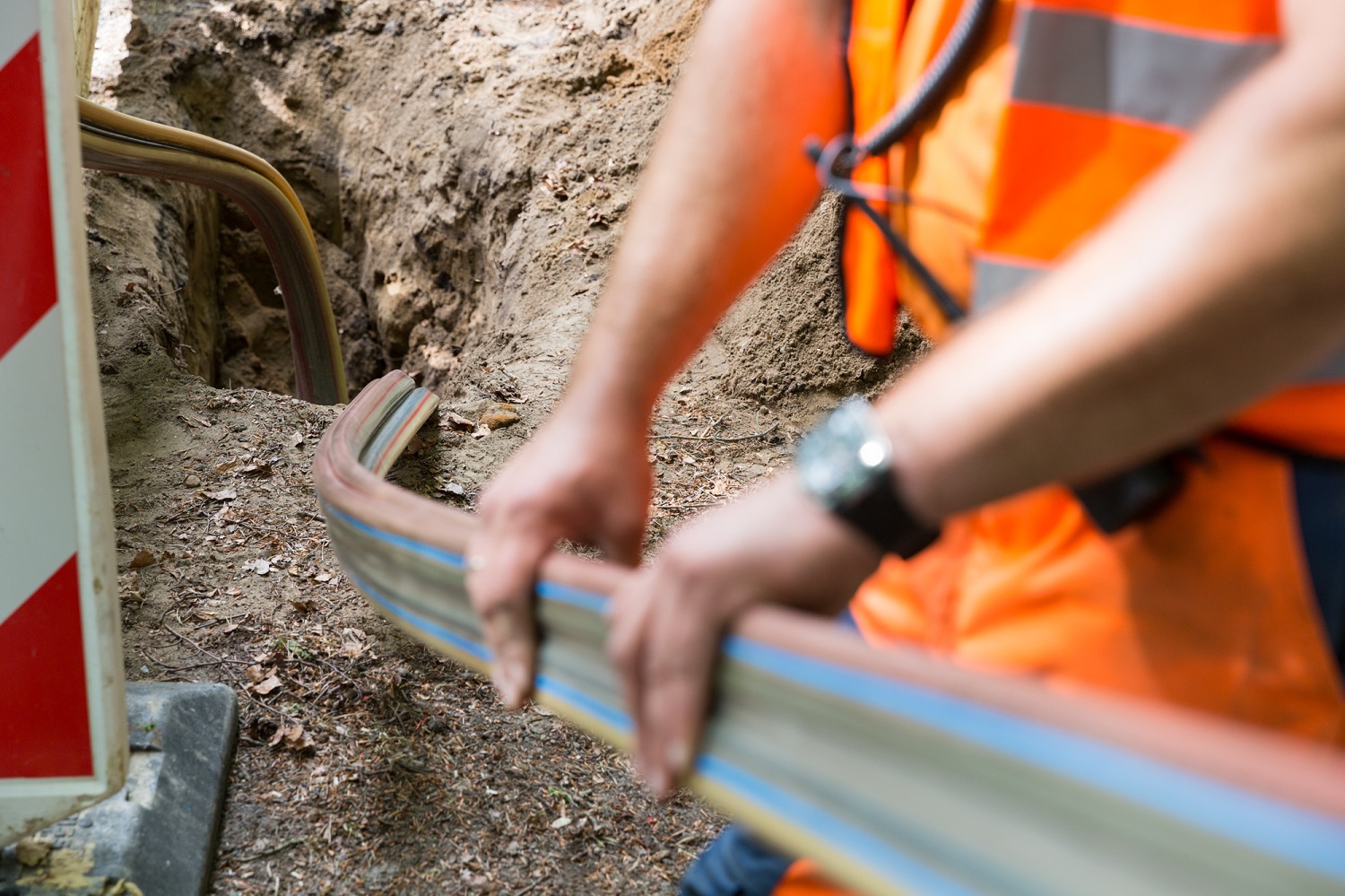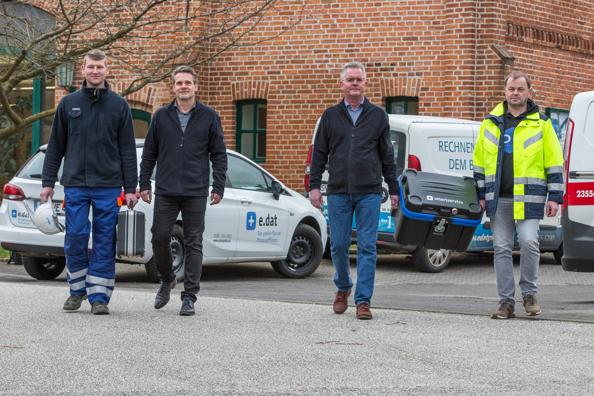 Martin Retzlaff, Geschäftsführer der WEMACOM Breitband GmbH, MdB Frank Junge, Christian Pegel, Minister für Energie, Infrastruktur und Digitalisierung, WEMAG-Vorstand Thomas Murche und Wolfgang Schmülling, 1. Stellvertreter des Landrates des Landkreises Ludwigslust-Parchim (v.l.), haben in Neuburg, Gemeinde Siggelkow, den symbolischen Spatenstich für den Breitbandausbau durchgeführt / Foto: WEMAG/Stephan Rudolph-Kramer
