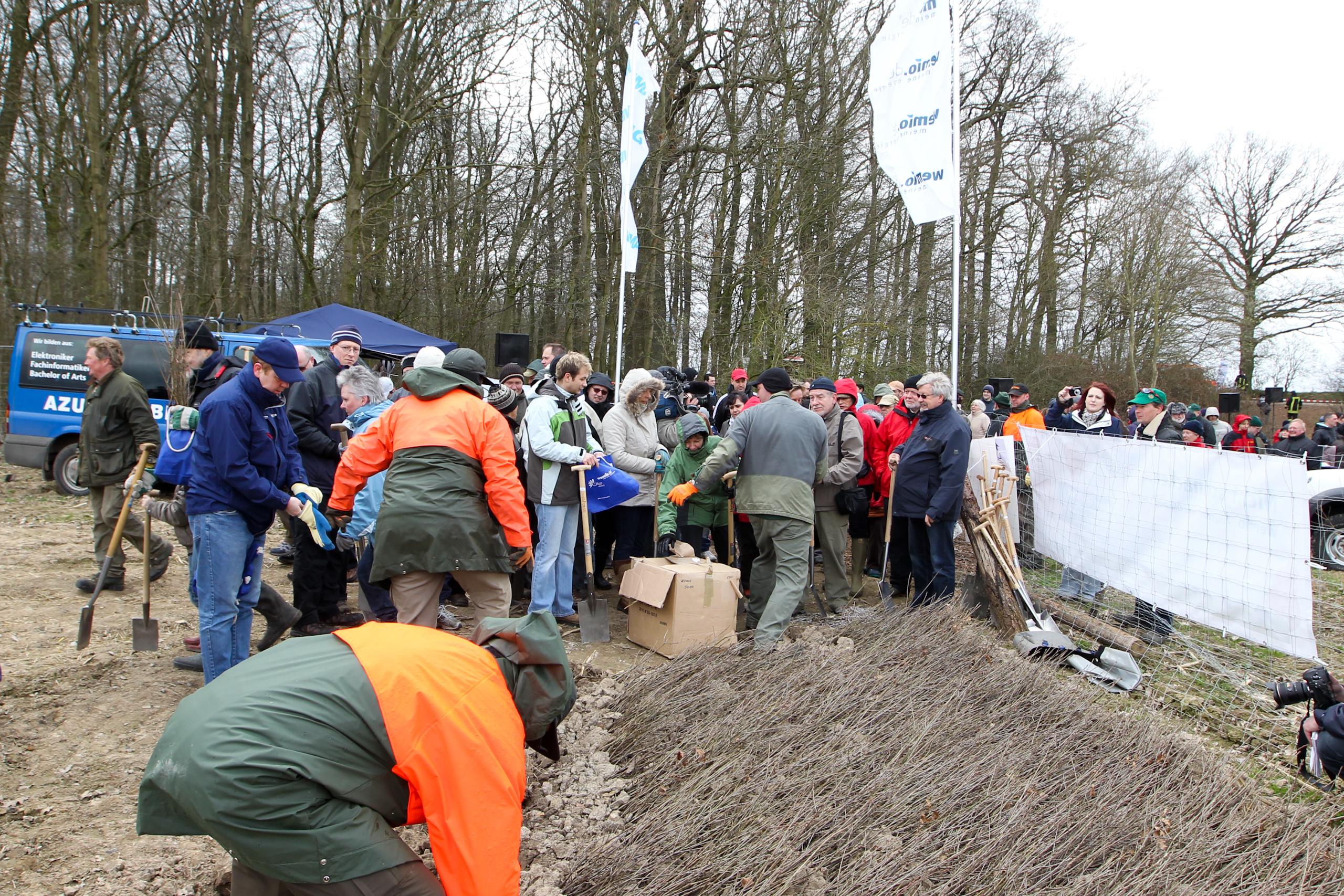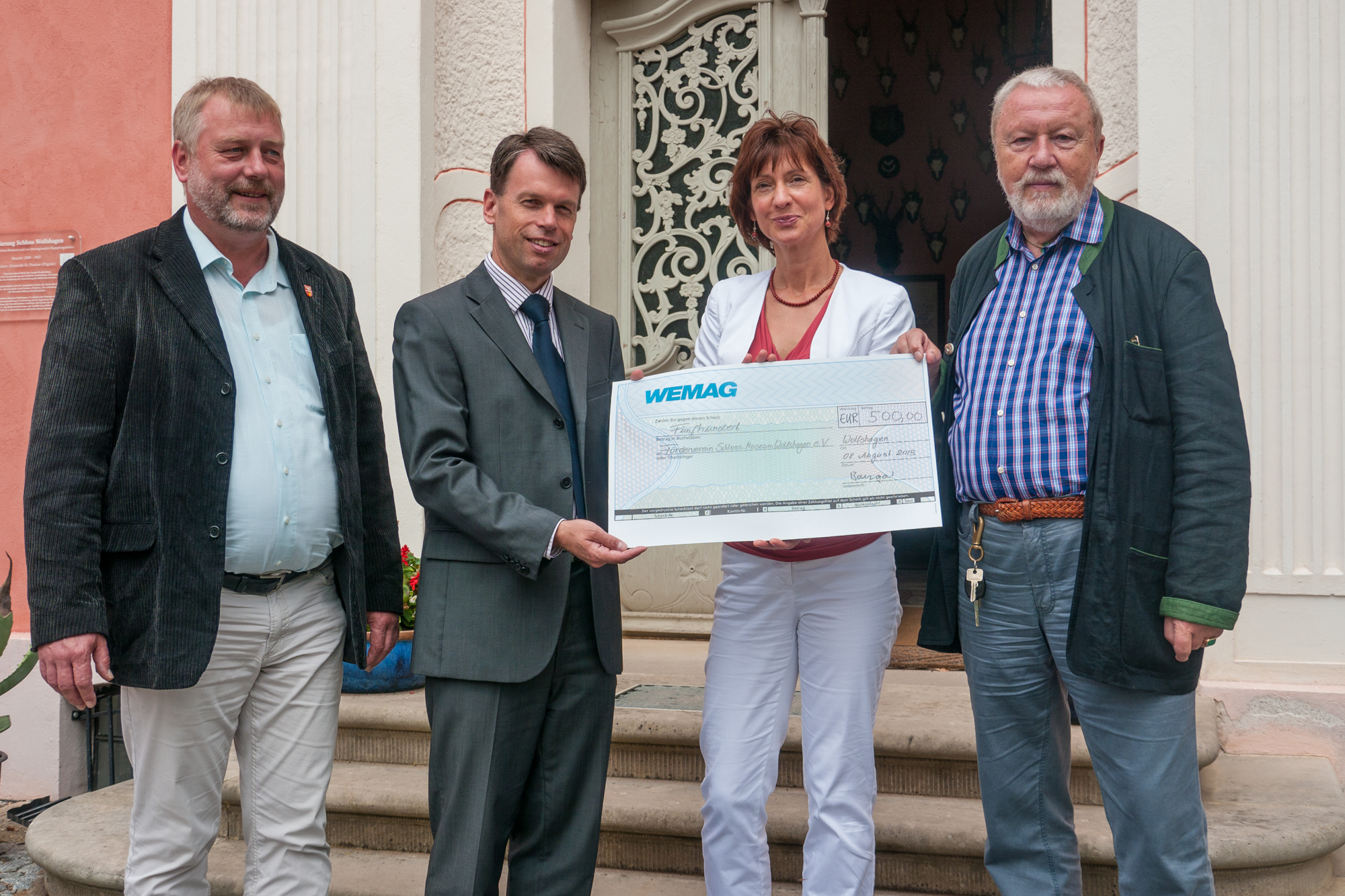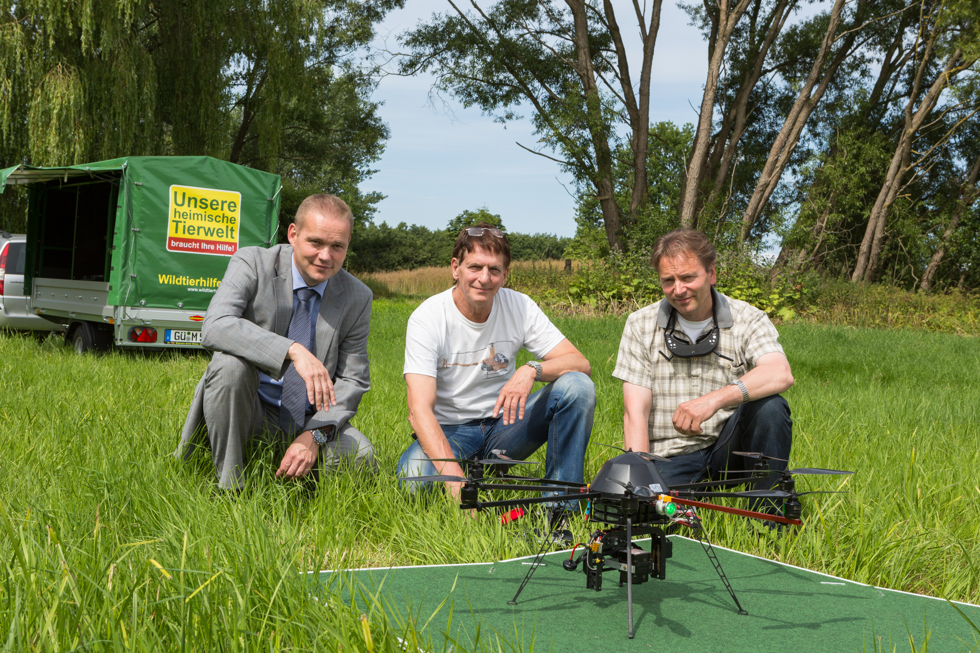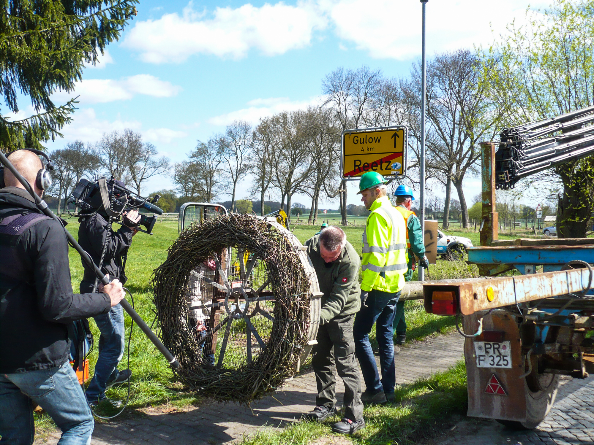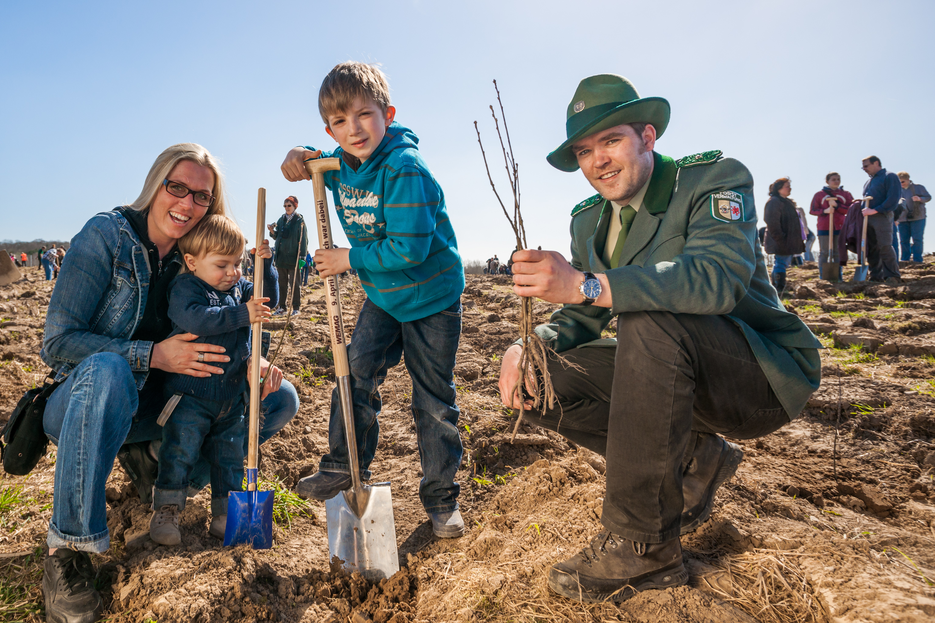 Martin Retzlaff, Geschäftsführer der WEMACOM Breitband GmbH, MdB Frank Junge, Christian Pegel, Minister für Energie, Infrastruktur und Digitalisierung, WEMAG-Vorstand Thomas Murche und Wolfgang Schmülling, 1. Stellvertreter des Landrates des Landkreises Ludwigslust-Parchim (v.l.), haben in Neuburg, Gemeinde Siggelkow, den symbolischen Spatenstich für den Breitbandausbau durchgeführt / Foto: WEMAG/Stephan Rudolph-Kramer