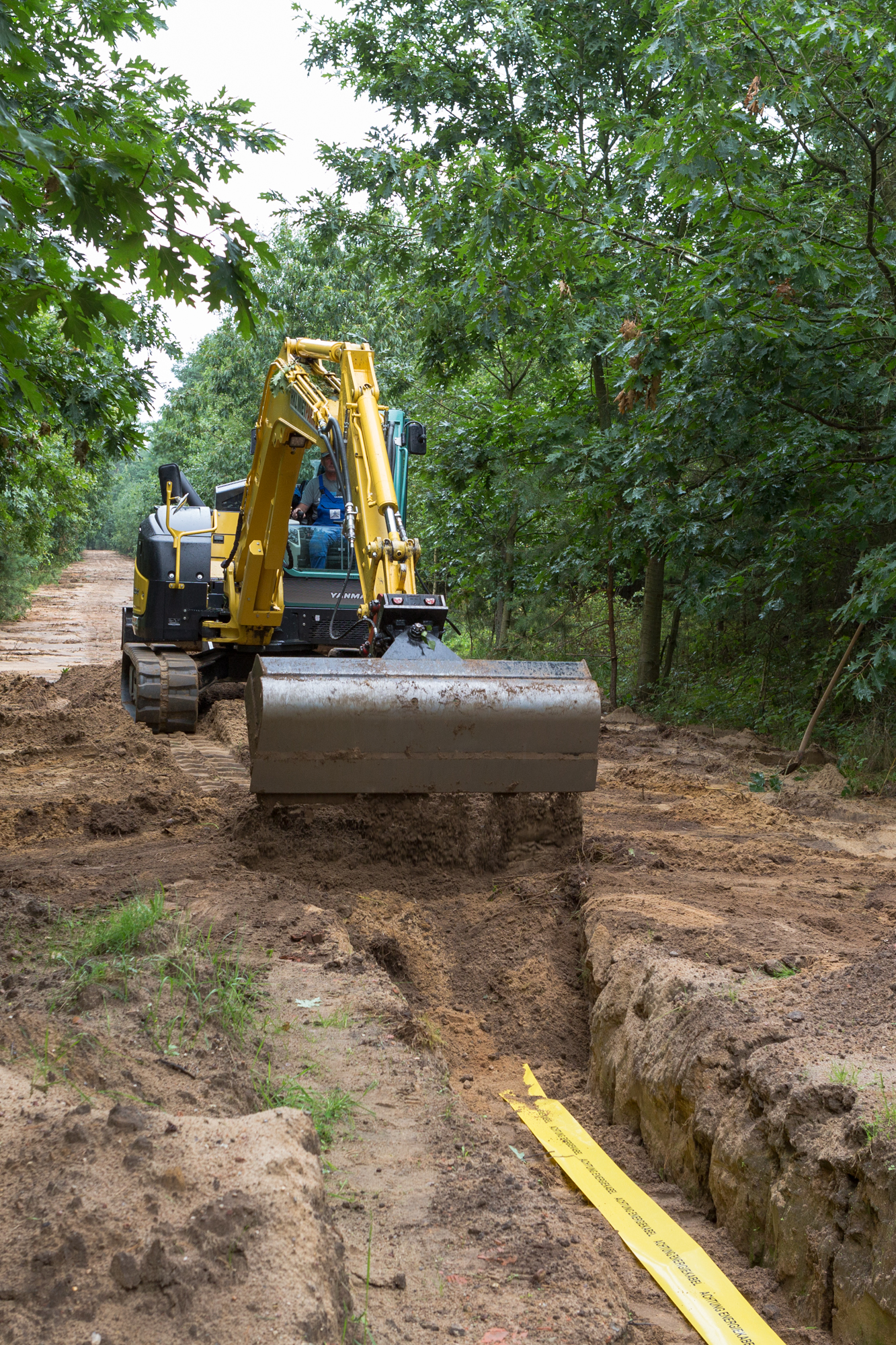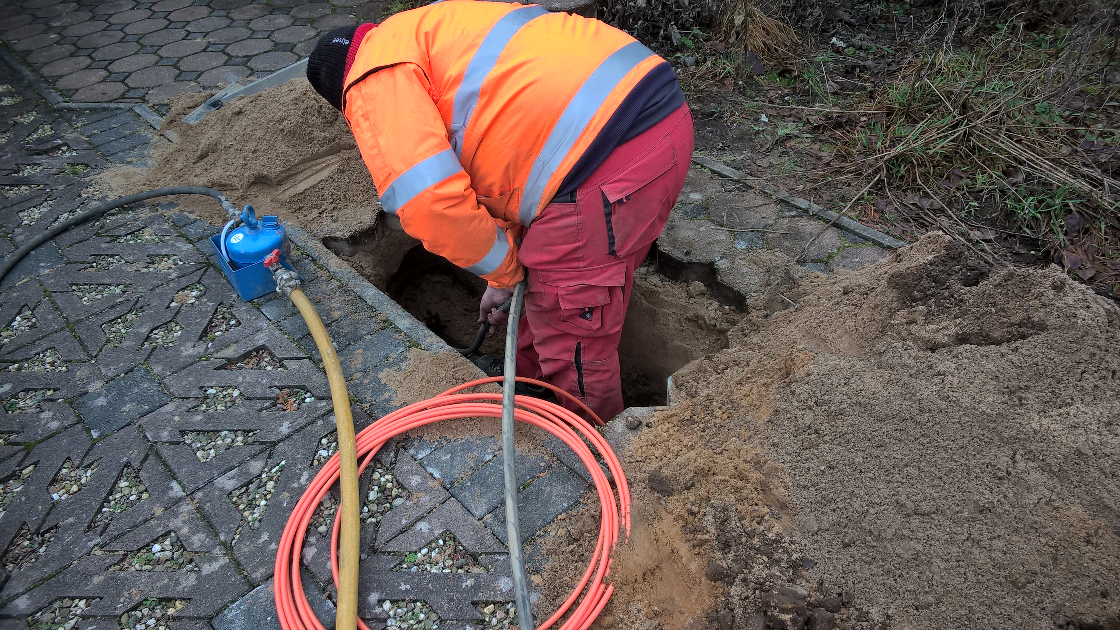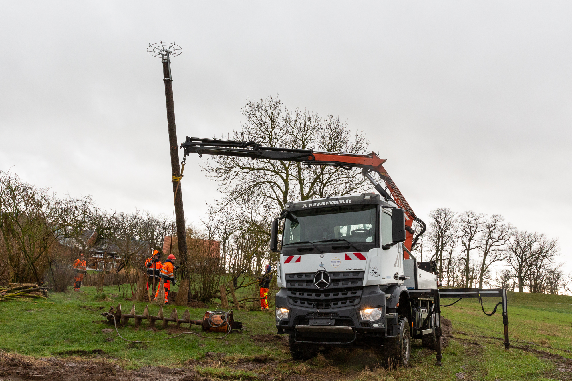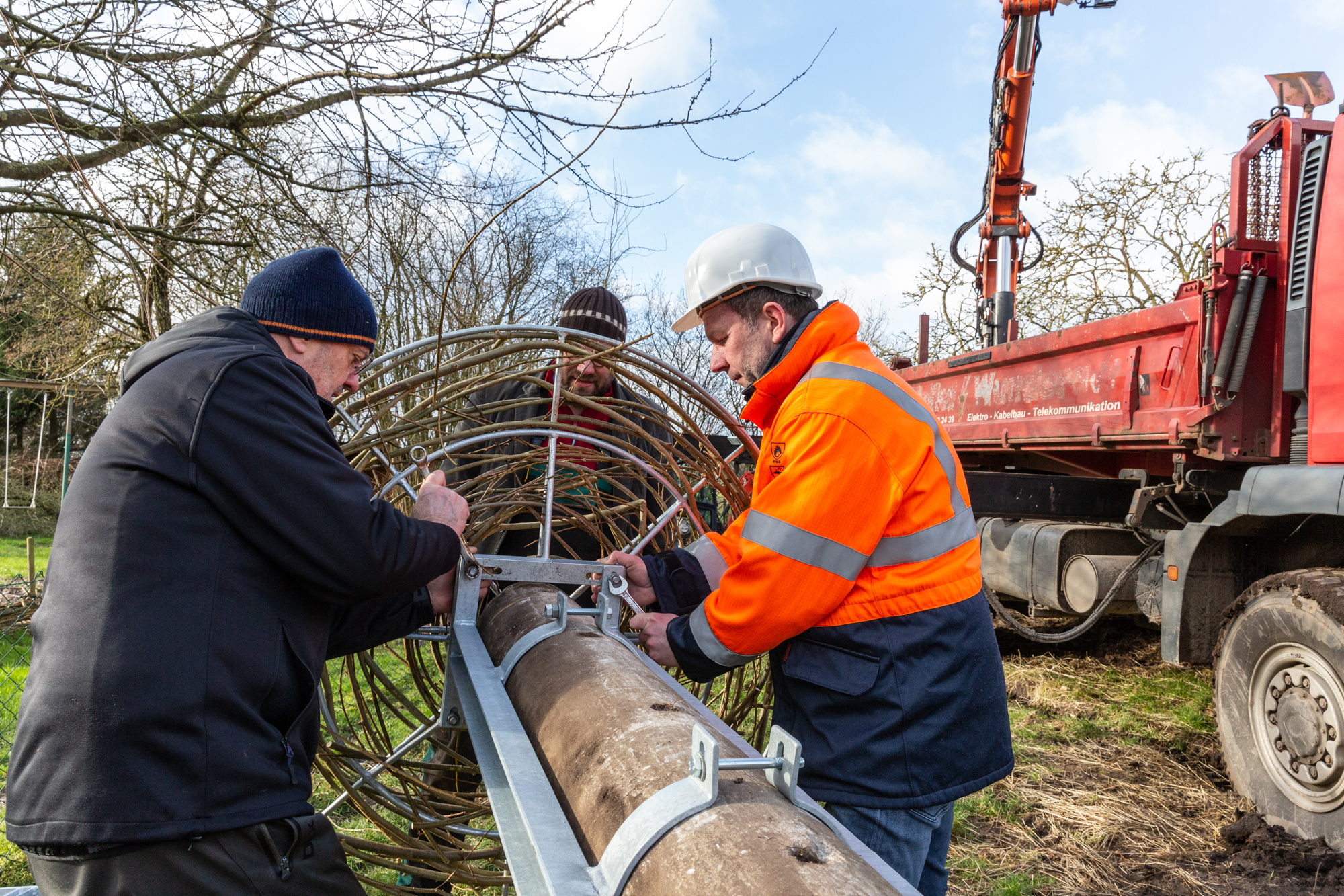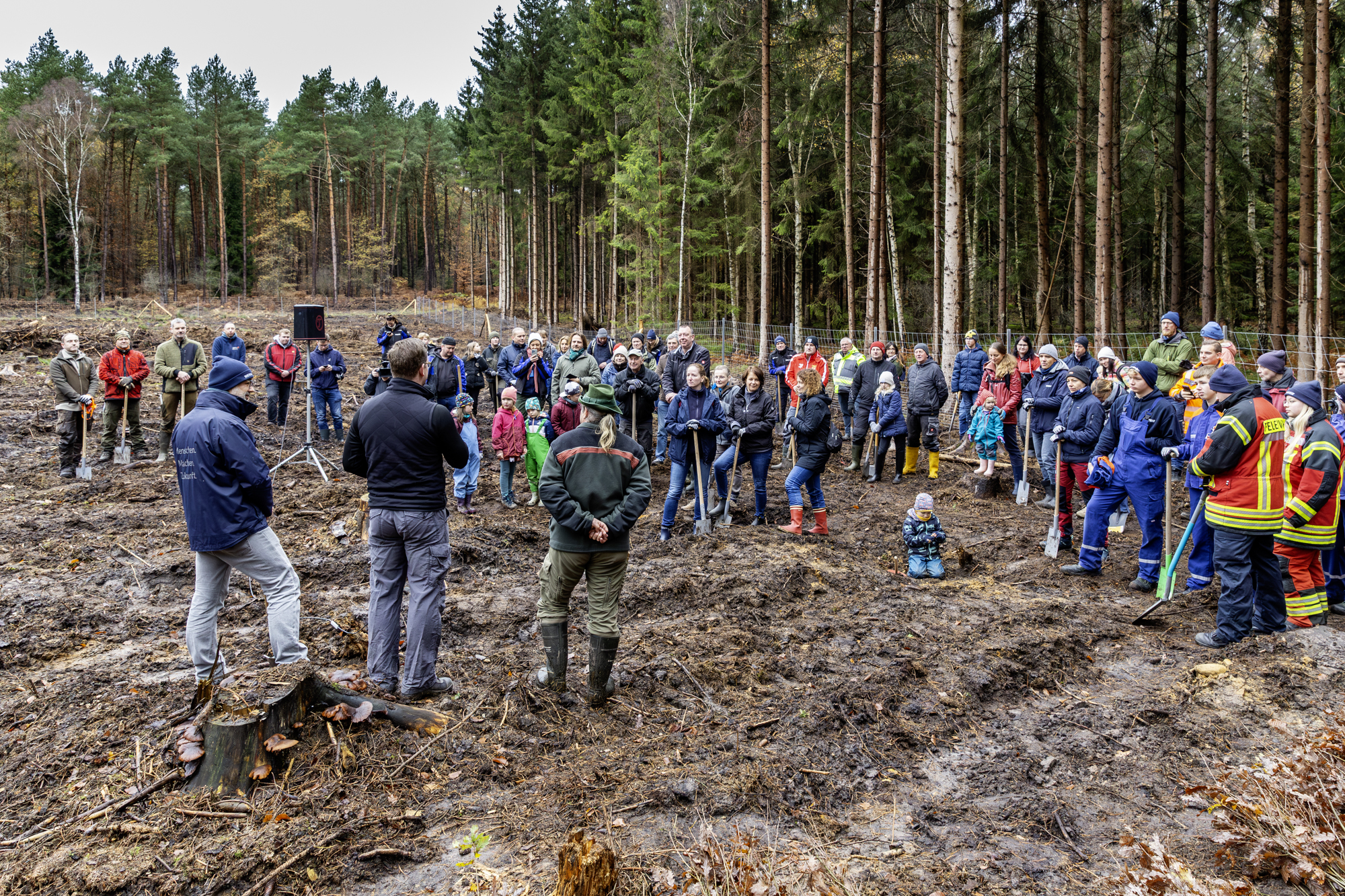 Martin Retzlaff, Geschäftsführer der WEMACOM Breitband GmbH, MdB Frank Junge, Christian Pegel, Minister für Energie, Infrastruktur und Digitalisierung, WEMAG-Vorstand Thomas Murche und Wolfgang Schmülling, 1. Stellvertreter des Landrates des Landkreises Ludwigslust-Parchim (v.l.), haben in Neuburg, Gemeinde Siggelkow, den symbolischen Spatenstich für den Breitbandausbau durchgeführt / Foto: WEMAG/Stephan Rudolph-Kramer