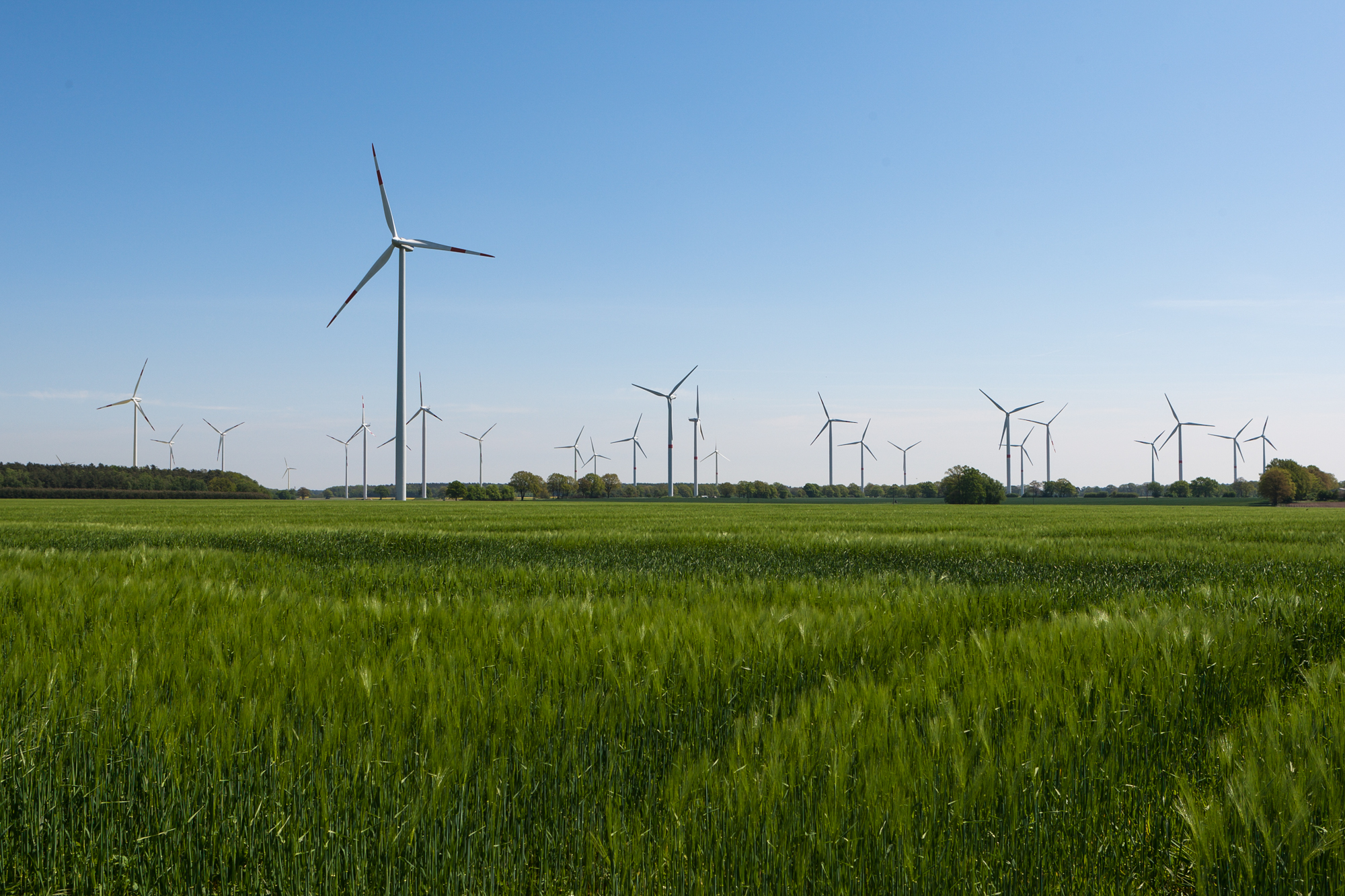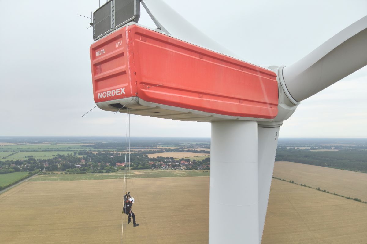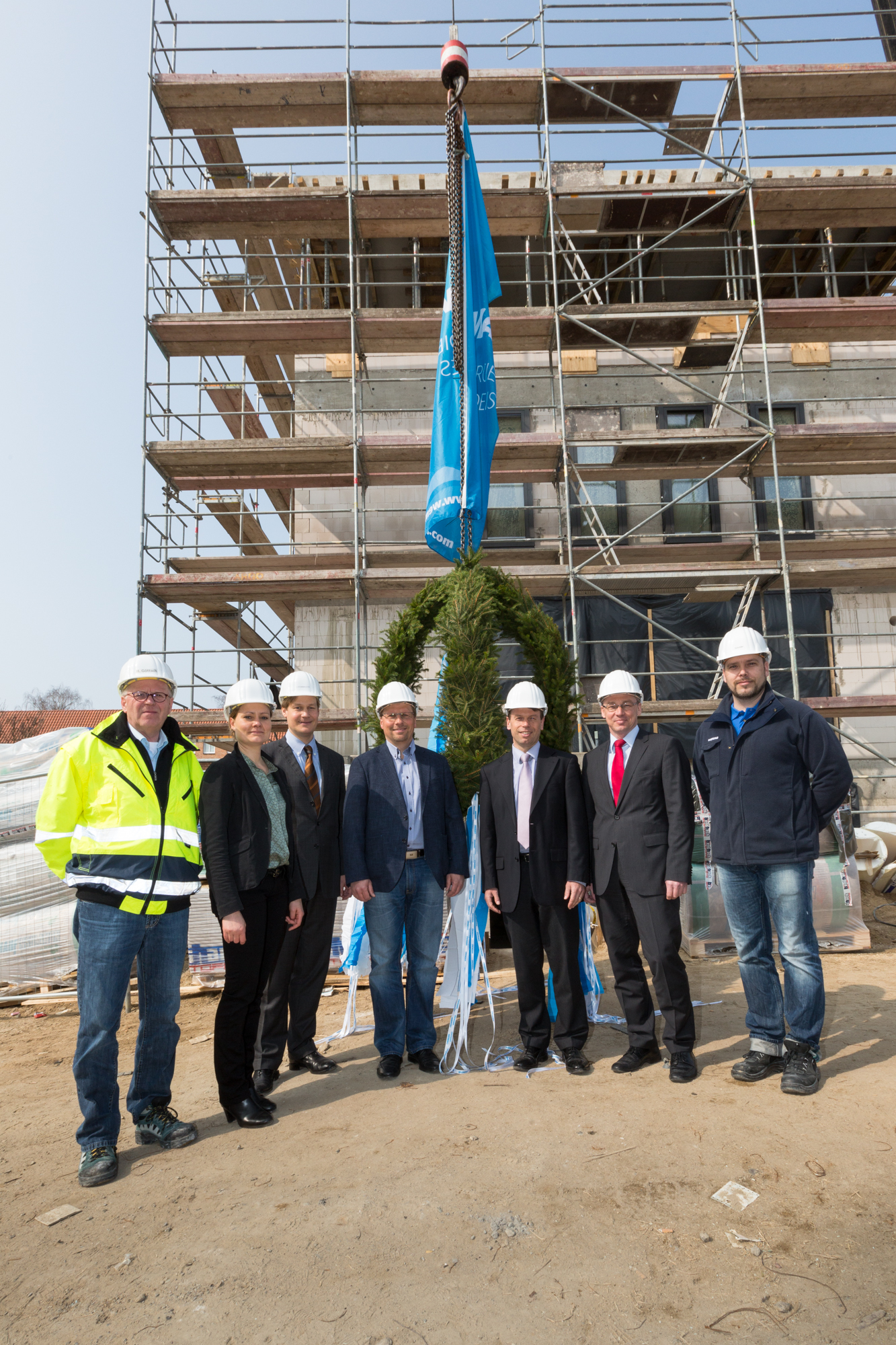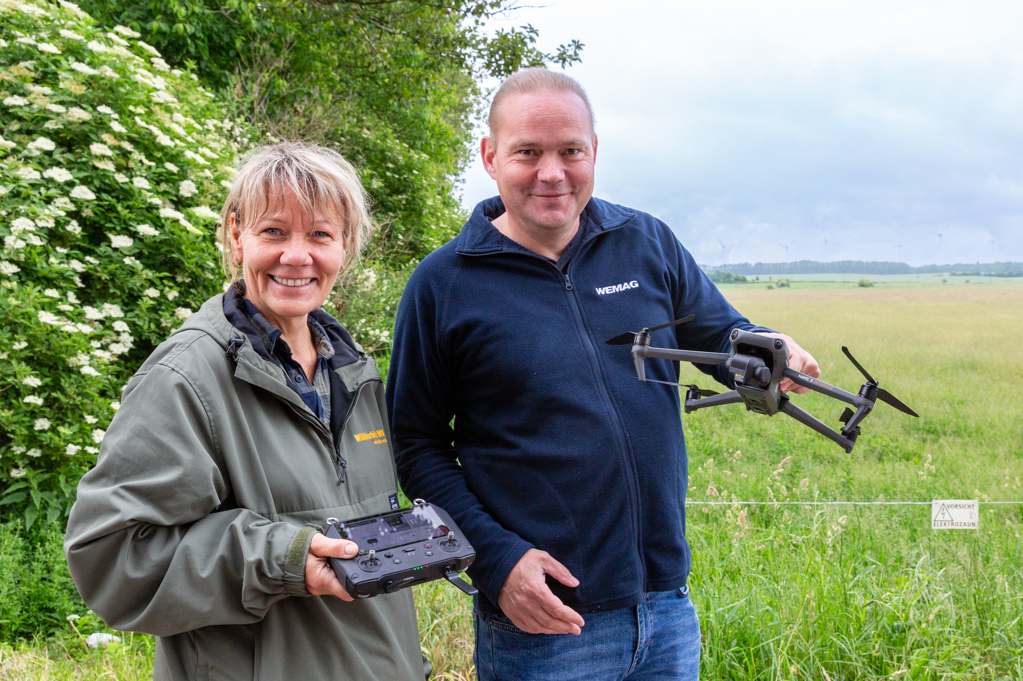 Eröffnen gemeinsam den Windpark Rieps (v. l.): Torsten Hinrichs, Geschäftsführer der mea und der mve, Dirk Fröhling, Bürgermeister der Gemeinde Rieps, Dr. Roland Ilper, Geschäftsführer der Energieverbund Nord und der mve, Caspar Baumgart, Vorstand der WEMAG, Ines Jesse, Staatssekretärin im Ministerium für Wirtschaft, Infrastruktur, Tourismus und Arbeit Mecklenburg-Vorpommern, und Stephan Sternberg, Aufsichtsrat Energieverbund Nord und Landrat des Landkreises Ludwigslust-Parchim.