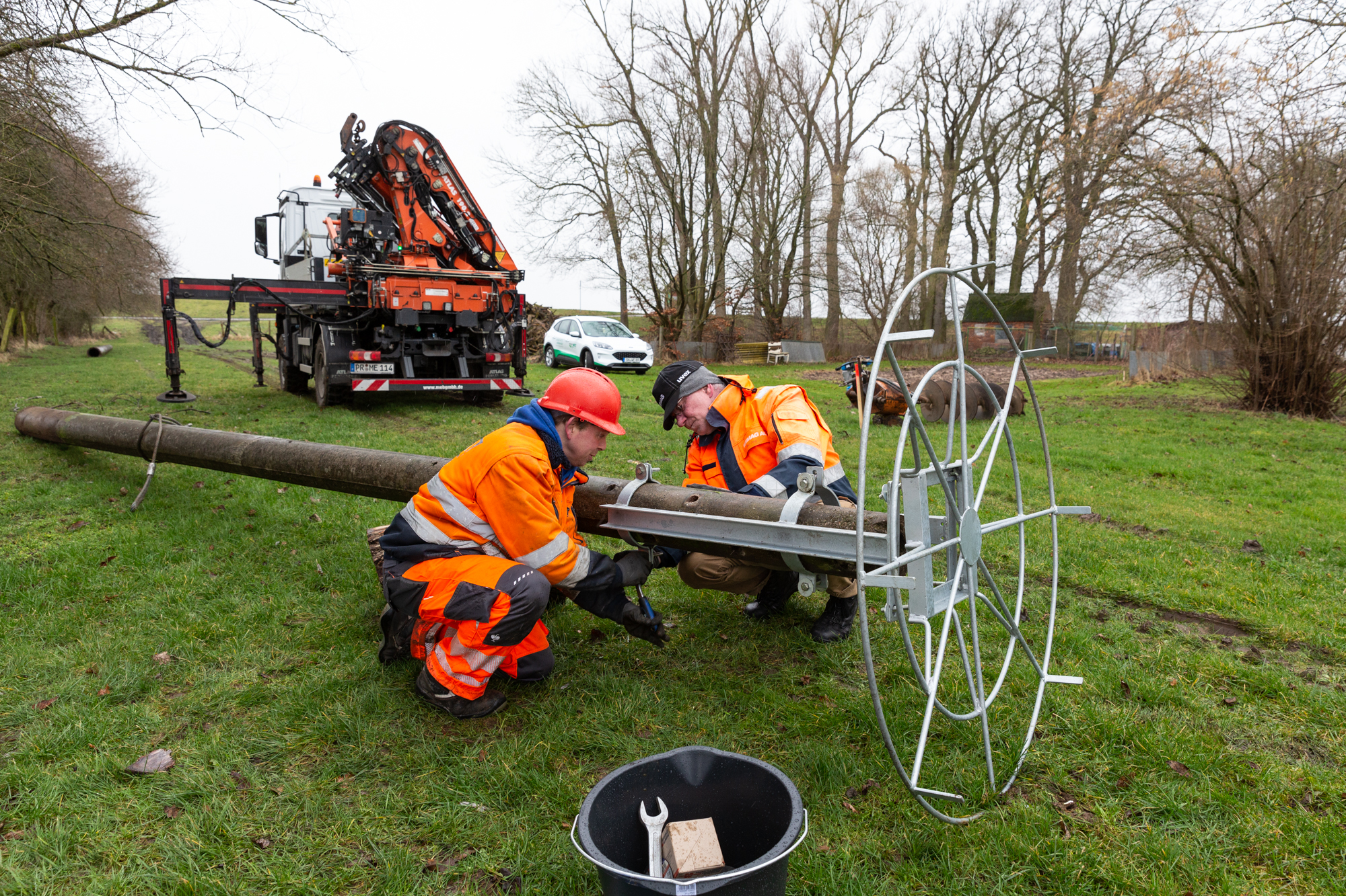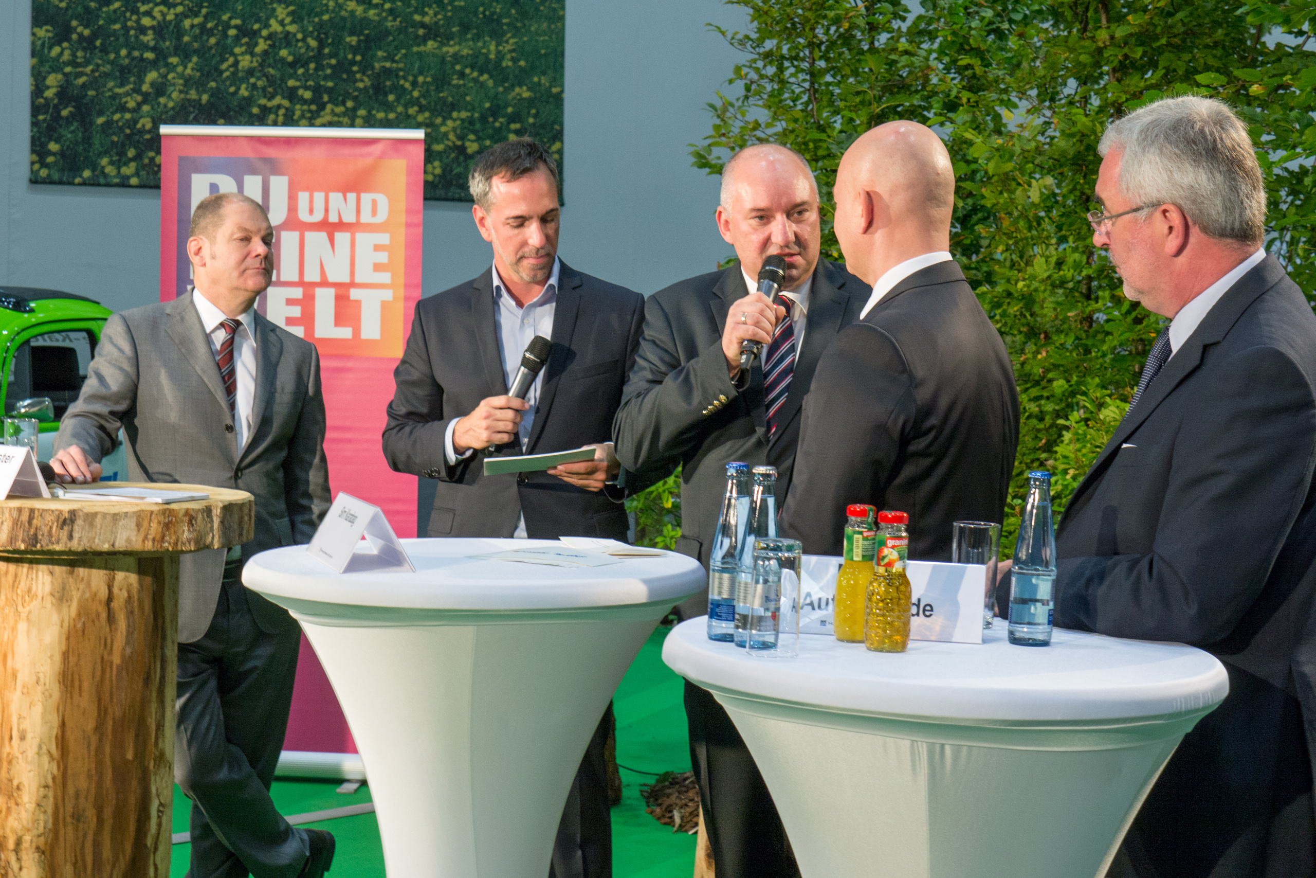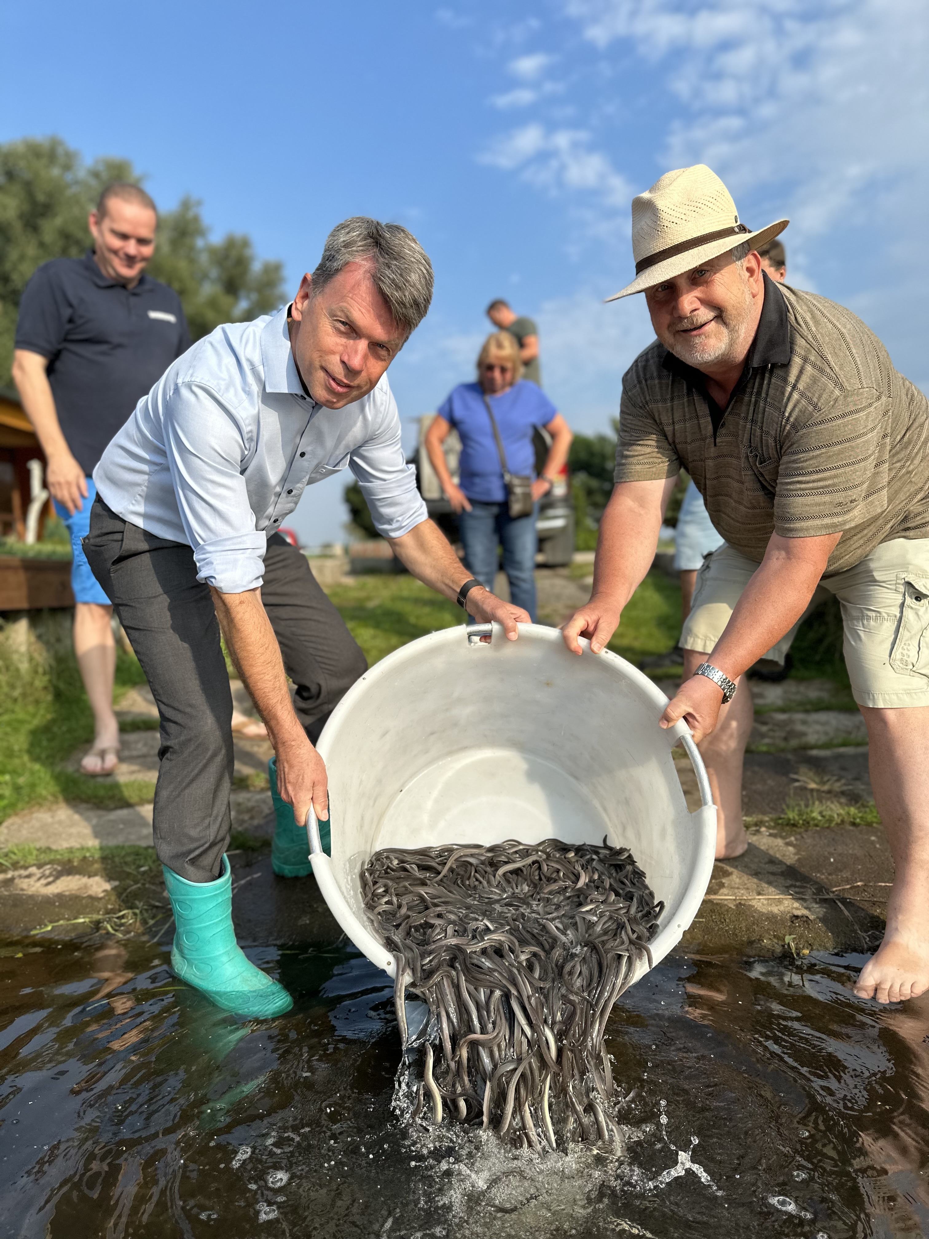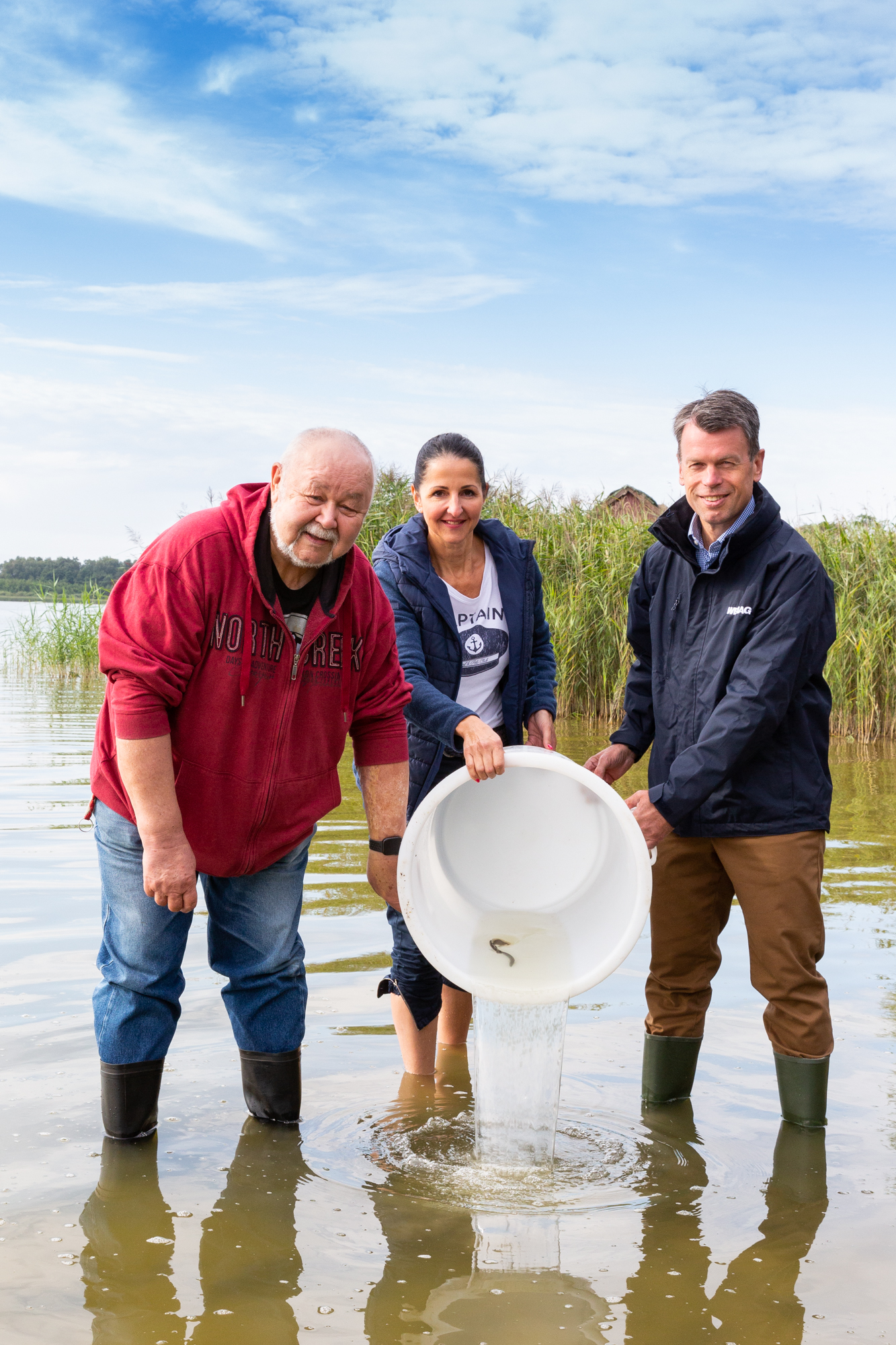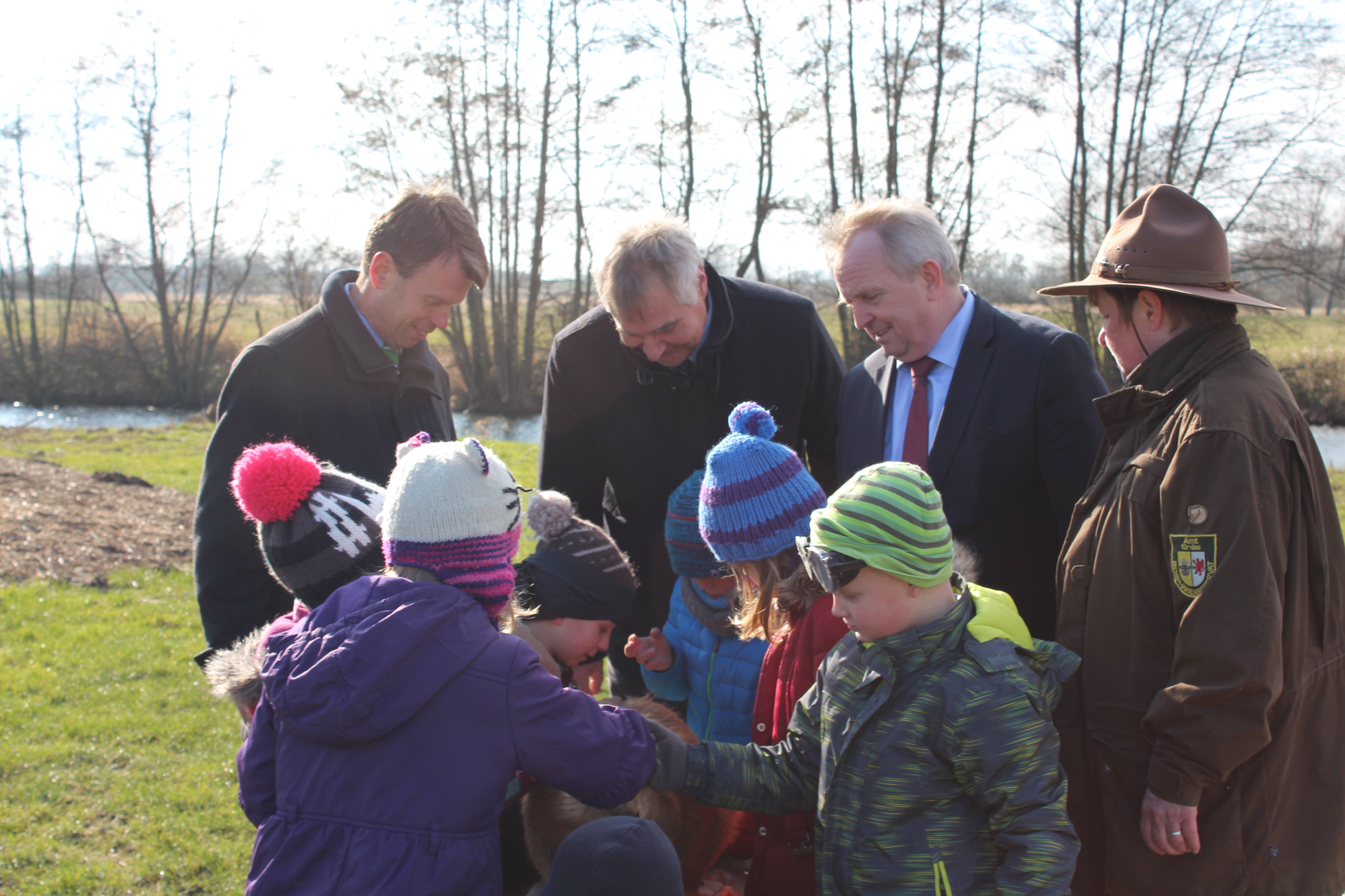 Eröffnen gemeinsam den Windpark Rieps (v. l.): Torsten Hinrichs, Geschäftsführer der mea und der mve, Dirk Fröhling, Bürgermeister der Gemeinde Rieps, Dr. Roland Ilper, Geschäftsführer der Energieverbund Nord und der mve, Caspar Baumgart, Vorstand der WEMAG, Ines Jesse, Staatssekretärin im Ministerium für Wirtschaft, Infrastruktur, Tourismus und Arbeit Mecklenburg-Vorpommern, und Stephan Sternberg, Aufsichtsrat Energieverbund Nord und Landrat des Landkreises Ludwigslust-Parchim.