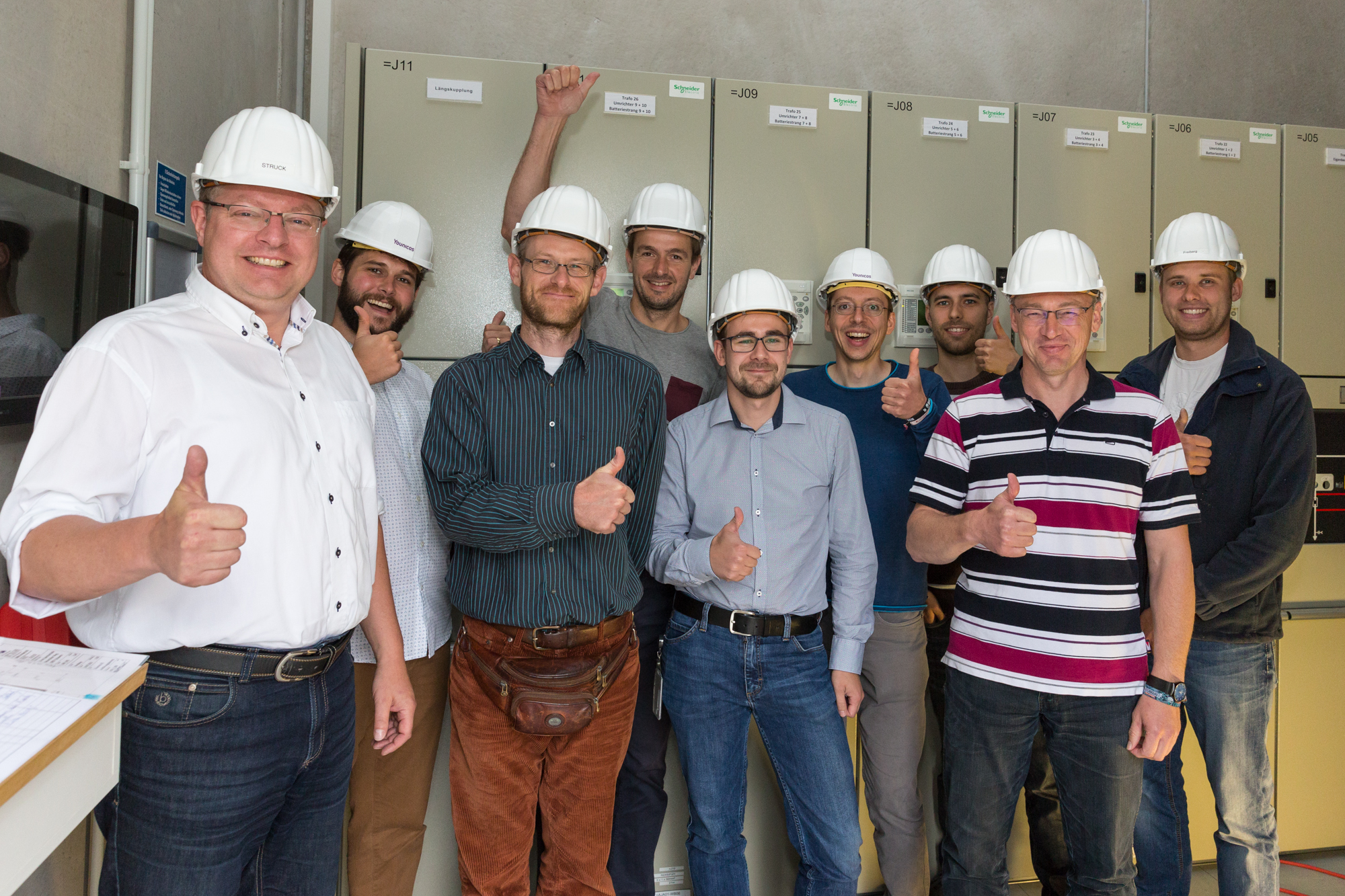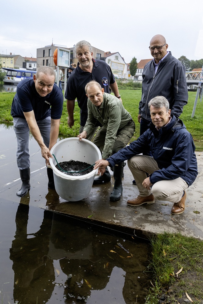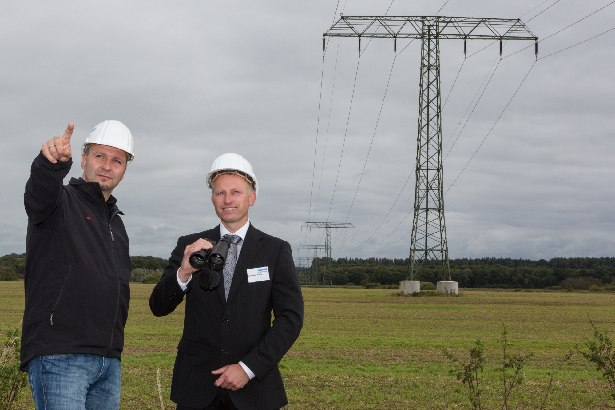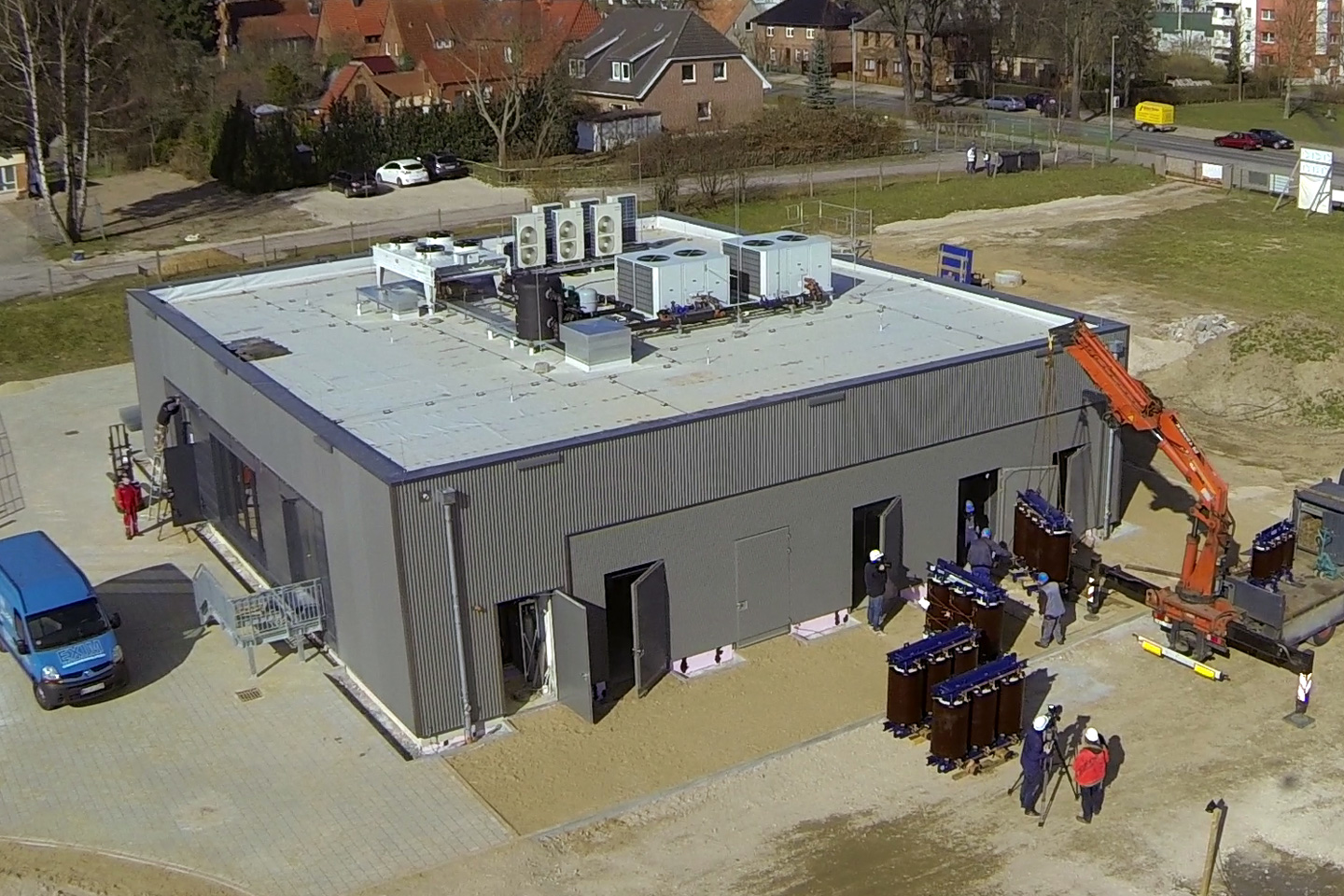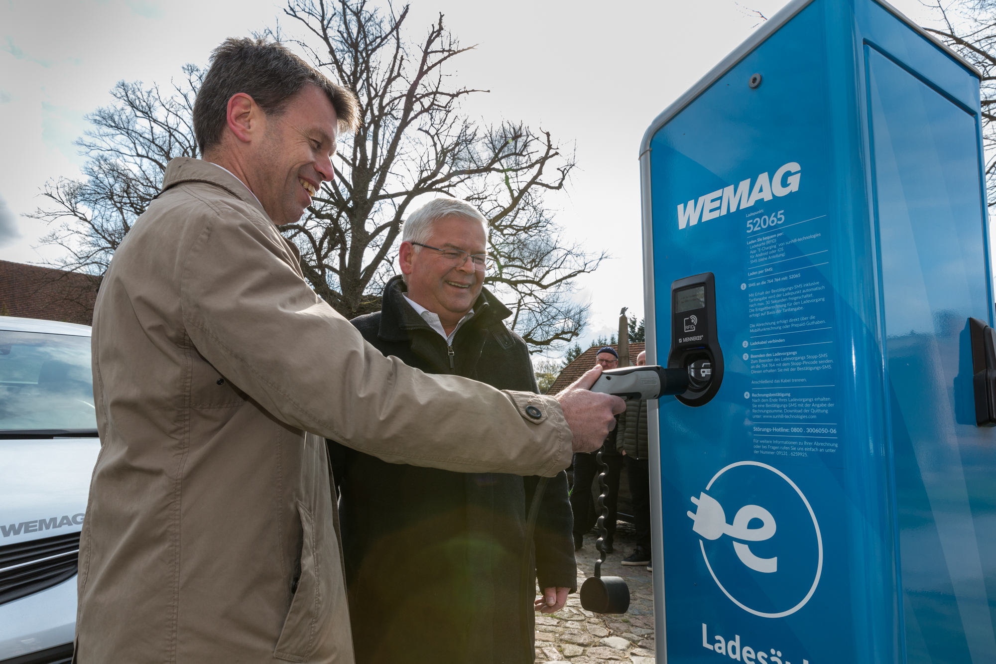 Offizielle Inbetriebnahme der Schaltstation in Kirch Jesar (v. l.): Frank Haacker, Siemens-Niederlassung Rostock, Christian Winkelmann, Transformare GmbH Wittenberge, Bernd Alvermann, Kuhlmann Leitungsbau GmbH, Anne Reimuck, WEMAG Projektentwicklung GmbH, Thomas Murche, WEMAG-Vorstand, Tim Stieger, WEMAG Netz GmbH. / Foto: WEMAG/Stephan Rudolph-Kramer