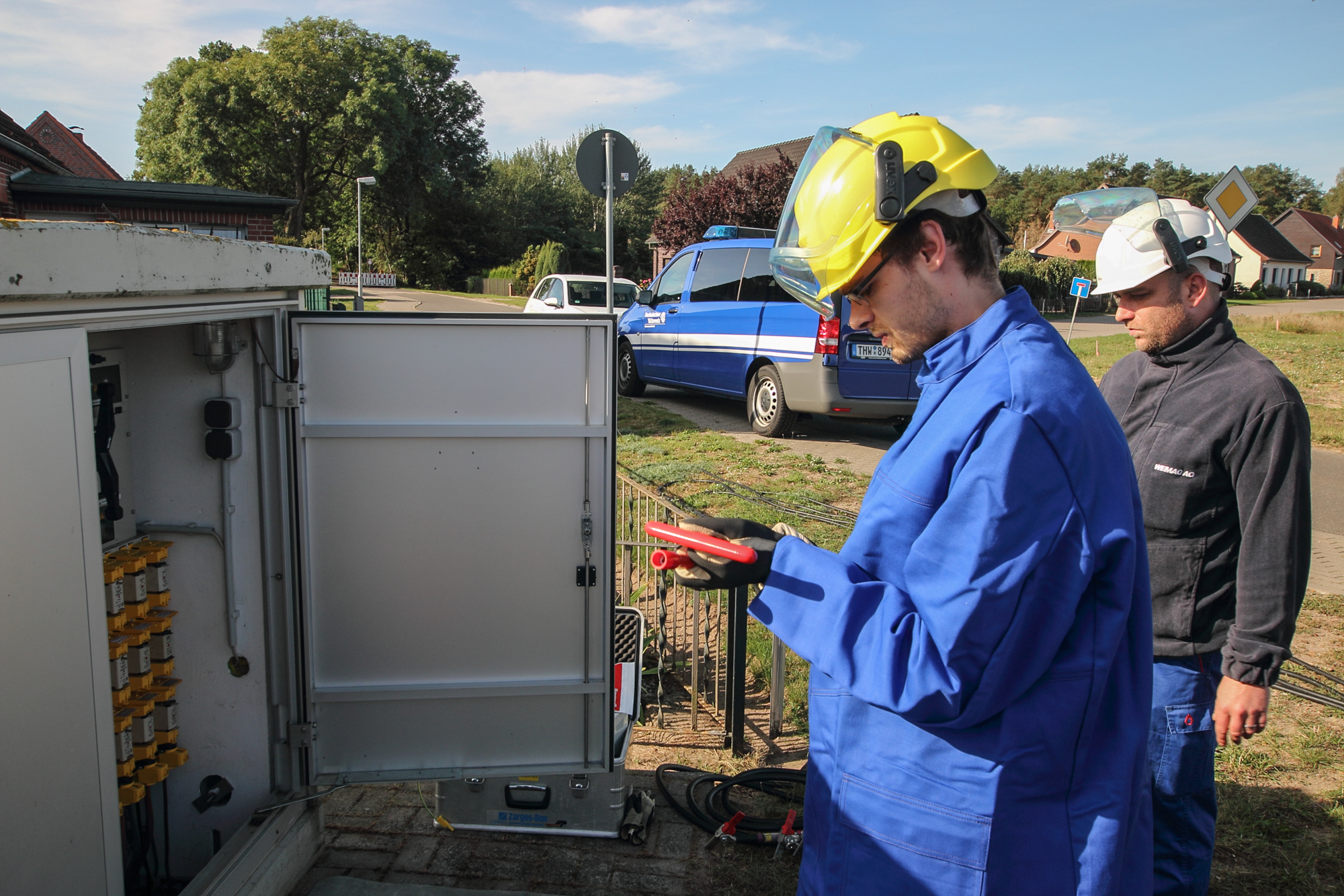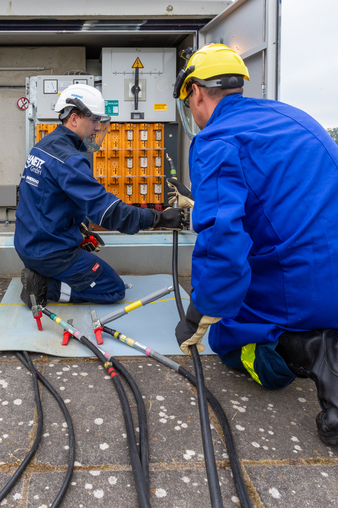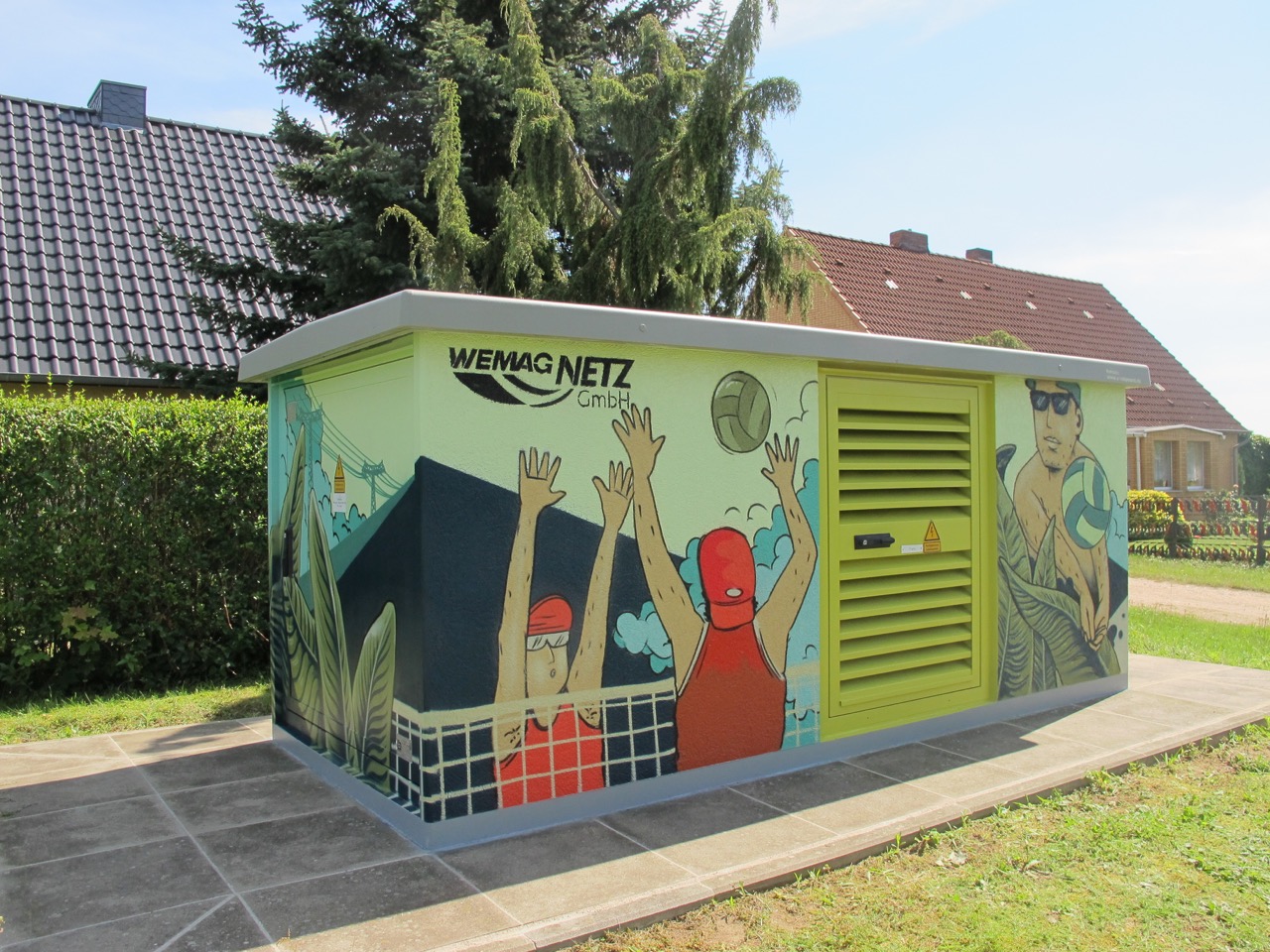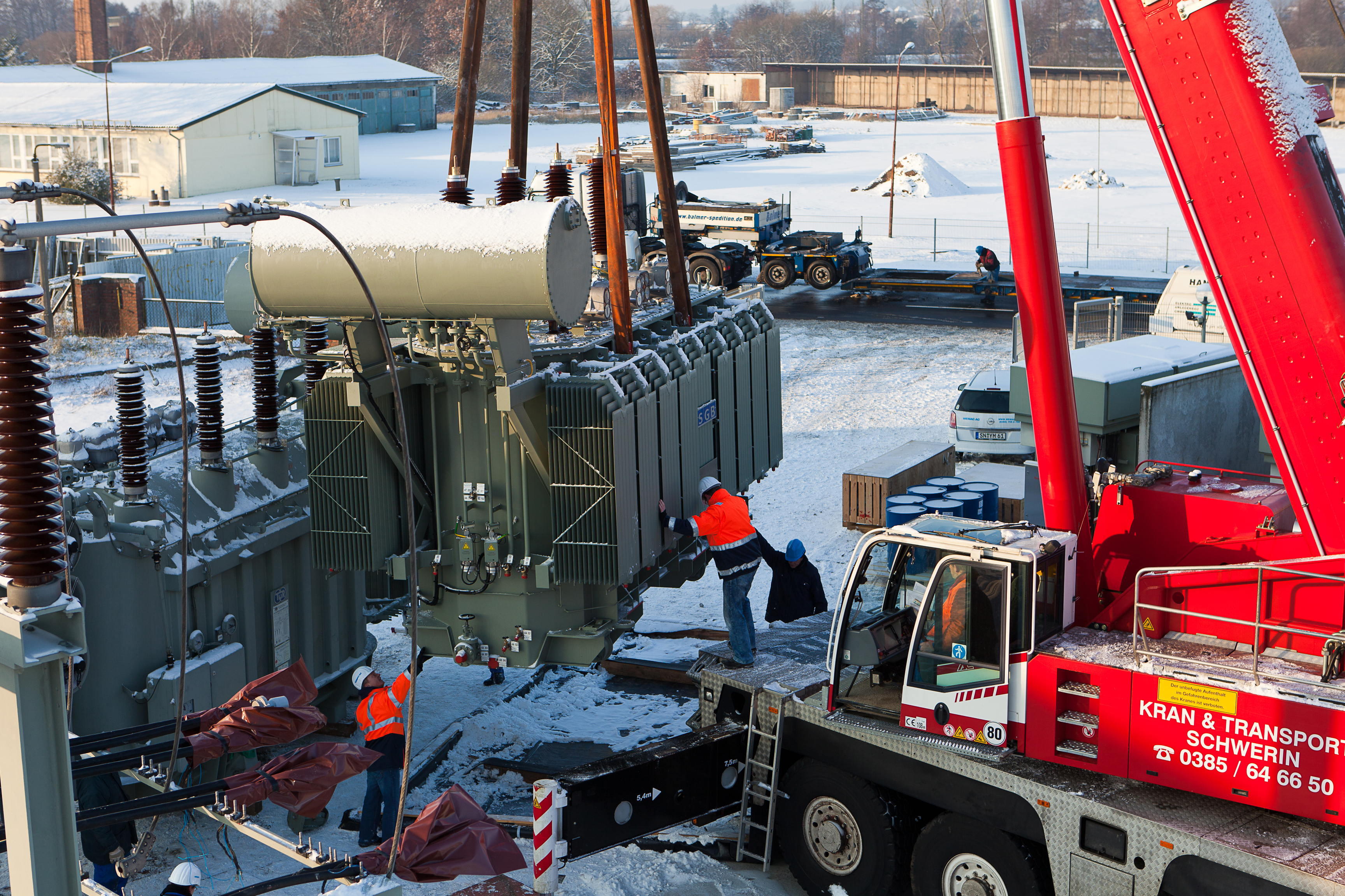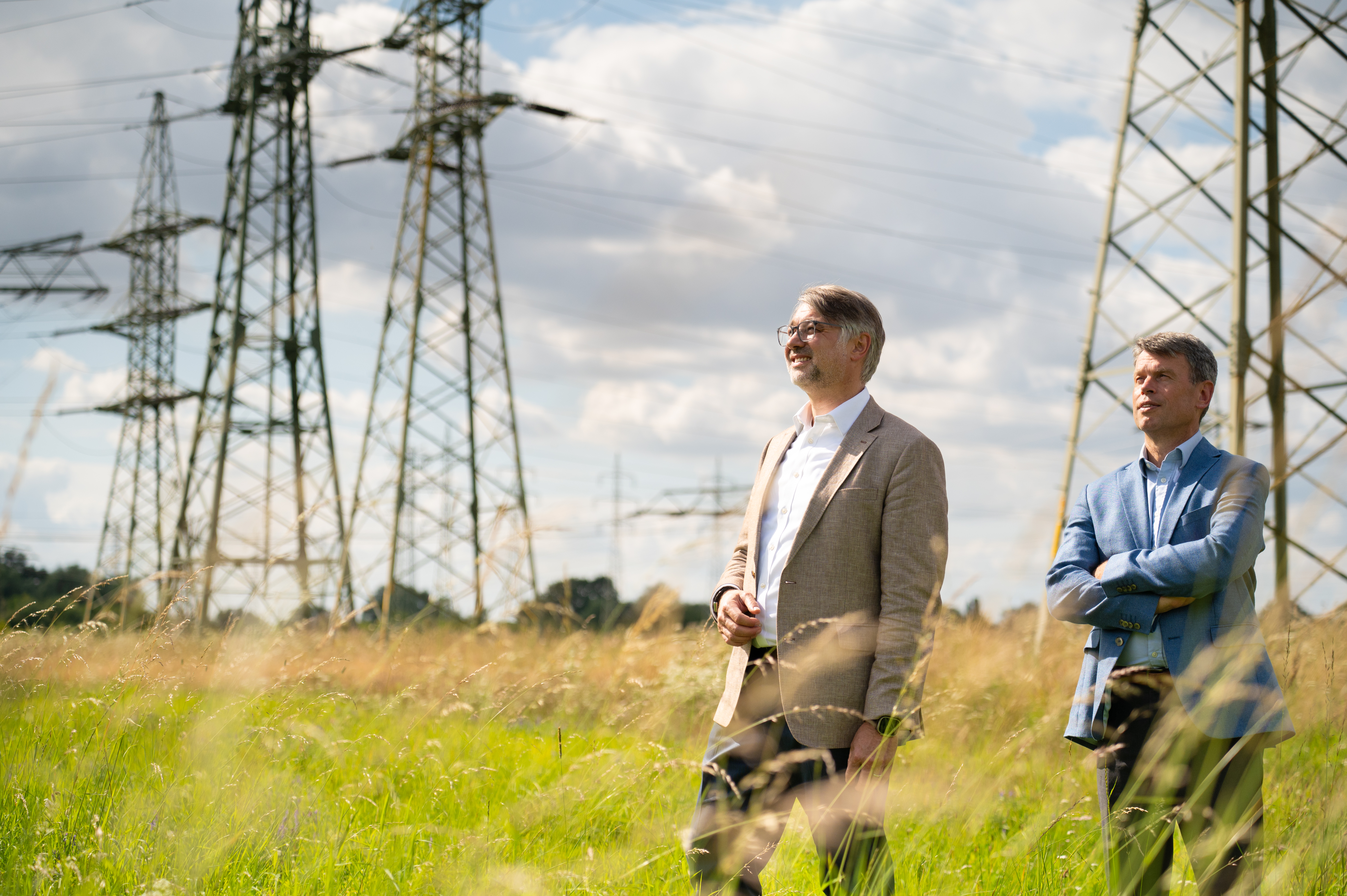 Offizielle Inbetriebnahme der Schaltstation in Kirch Jesar (v. l.): Frank Haacker, Siemens-Niederlassung Rostock, Christian Winkelmann, Transformare GmbH Wittenberge, Bernd Alvermann, Kuhlmann Leitungsbau GmbH, Anne Reimuck, WEMAG Projektentwicklung GmbH, Thomas Murche, WEMAG-Vorstand, Tim Stieger, WEMAG Netz GmbH. / Foto: WEMAG/Stephan Rudolph-Kramer