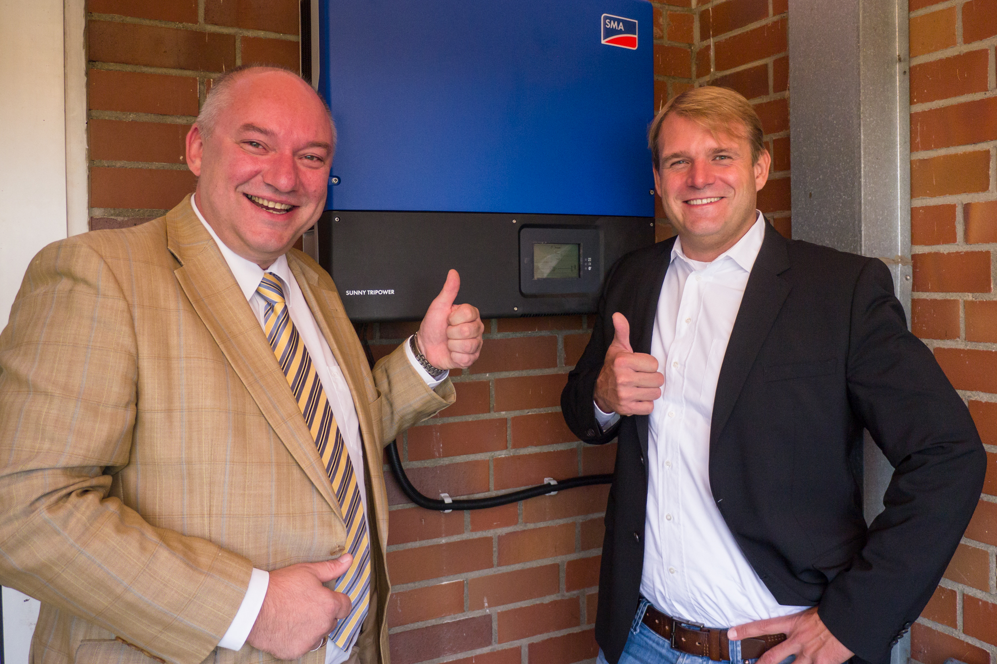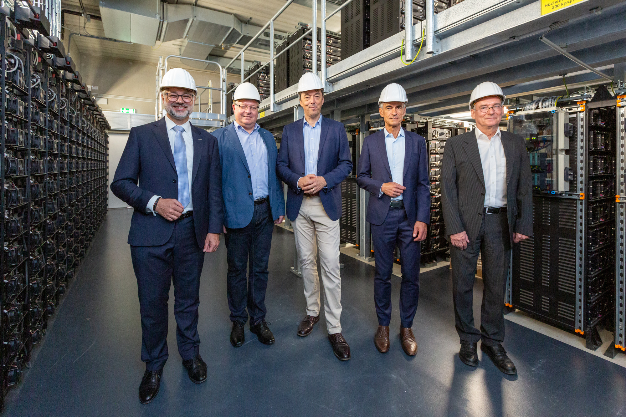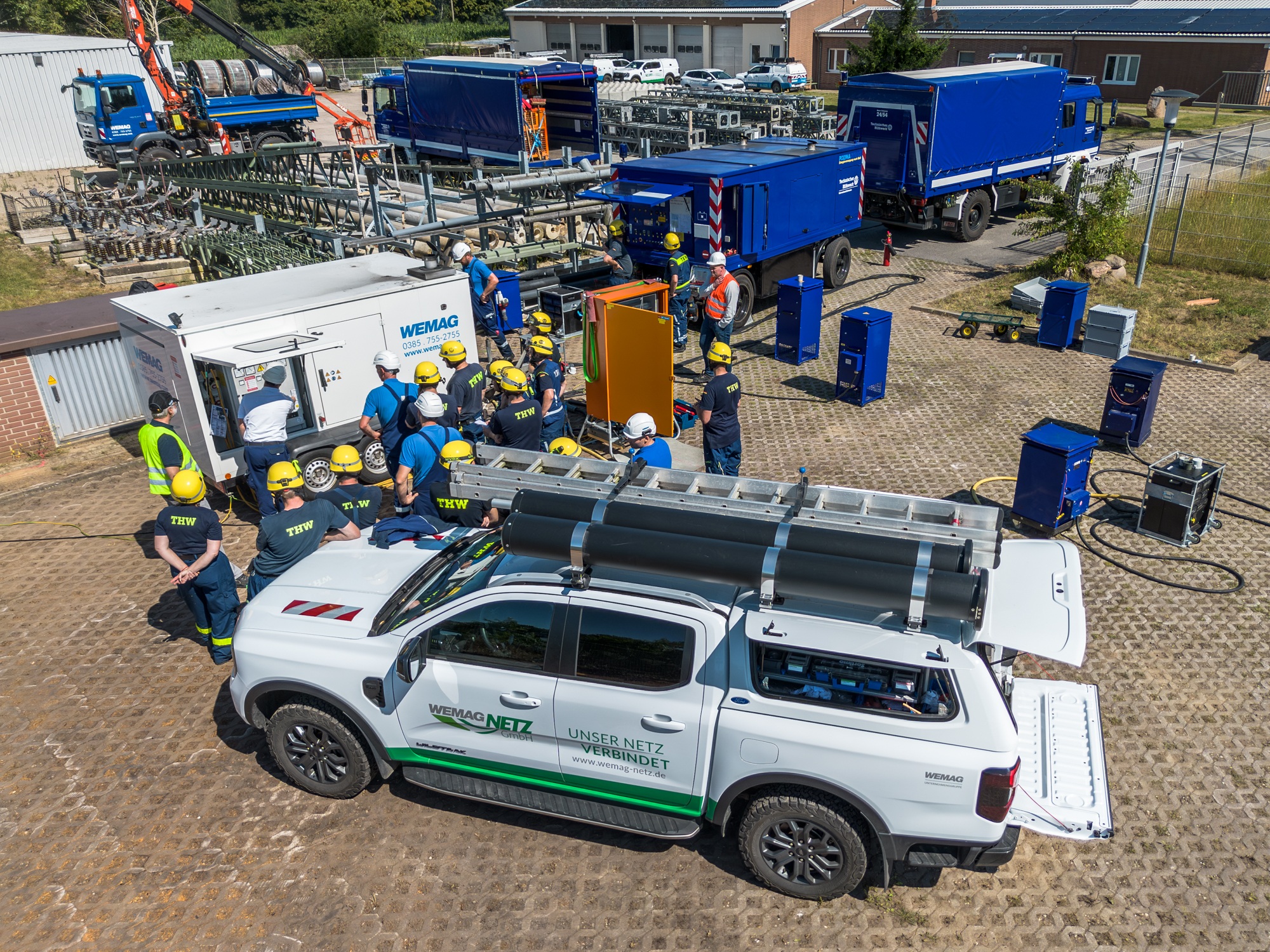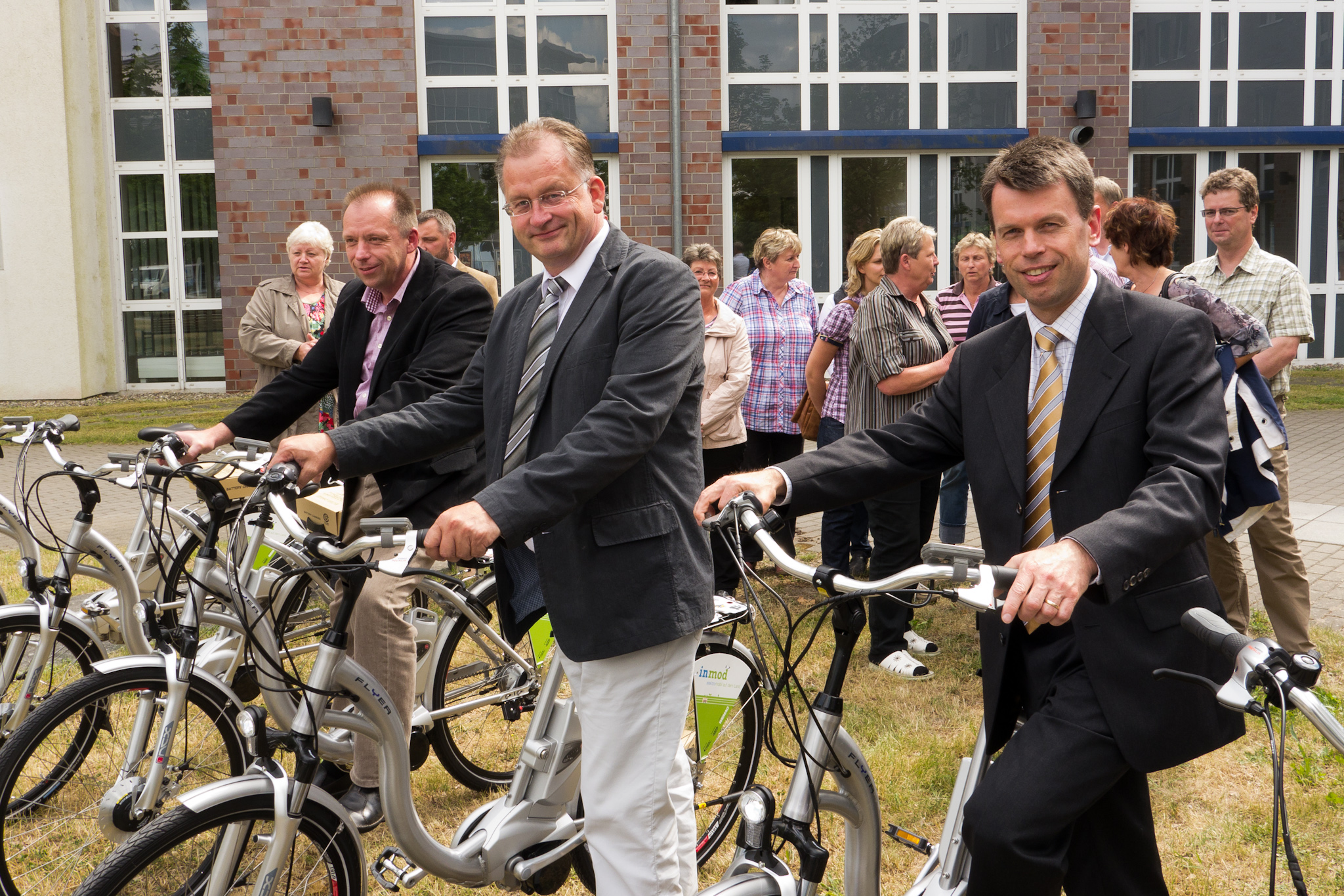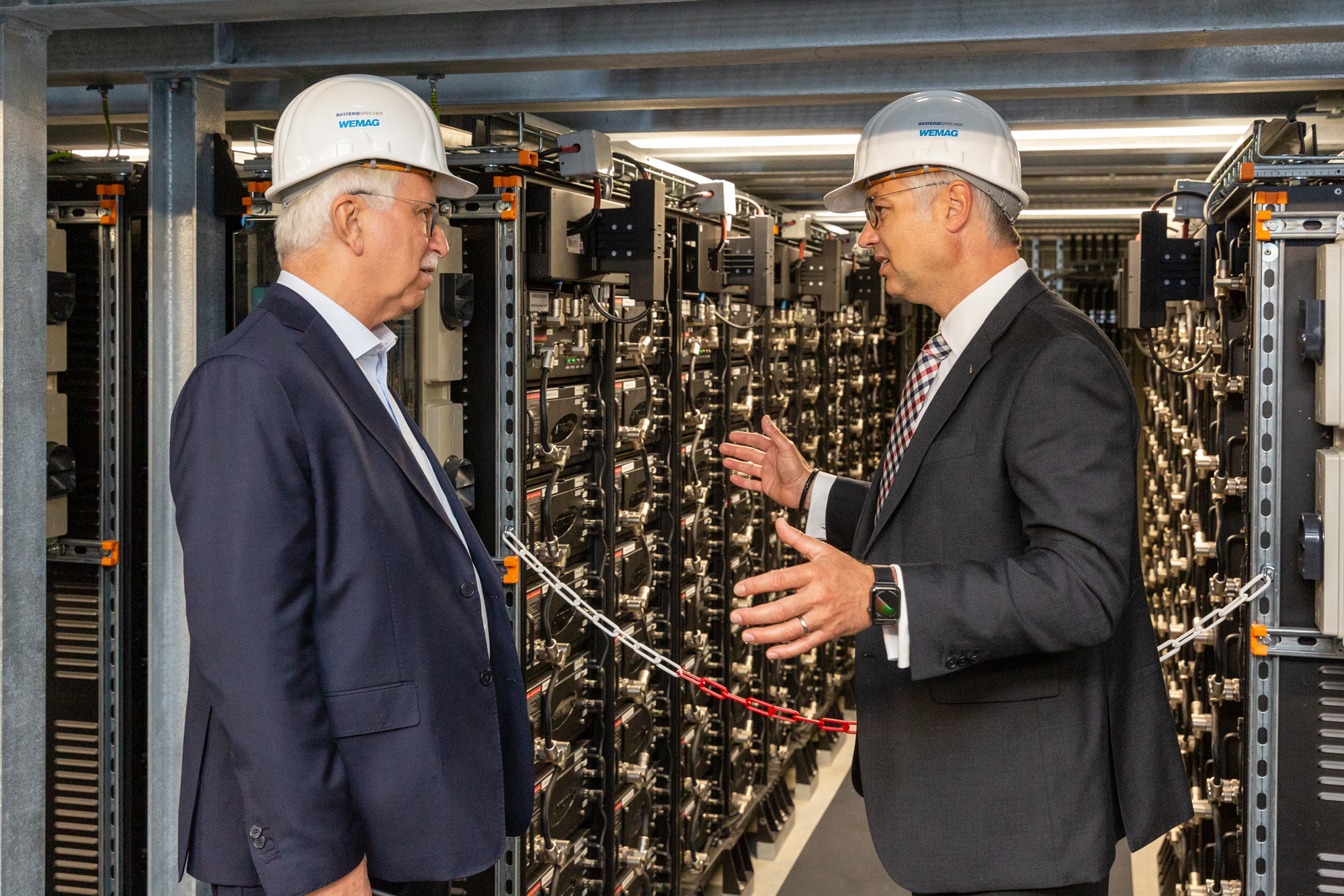Offizielle Inbetriebnahme der Schaltstation in Kirch Jesar (v. l.): Frank Haacker, Siemens-Niederlassung Rostock, Christian Winkelmann, Transformare GmbH Wittenberge, Bernd Alvermann, Kuhlmann Leitungsbau GmbH, Anne Reimuck, WEMAG Projektentwicklung GmbH, Thomas Murche, WEMAG-Vorstand, Tim Stieger, WEMAG Netz GmbH. / Foto: WEMAG/Stephan Rudolph-Kramer
