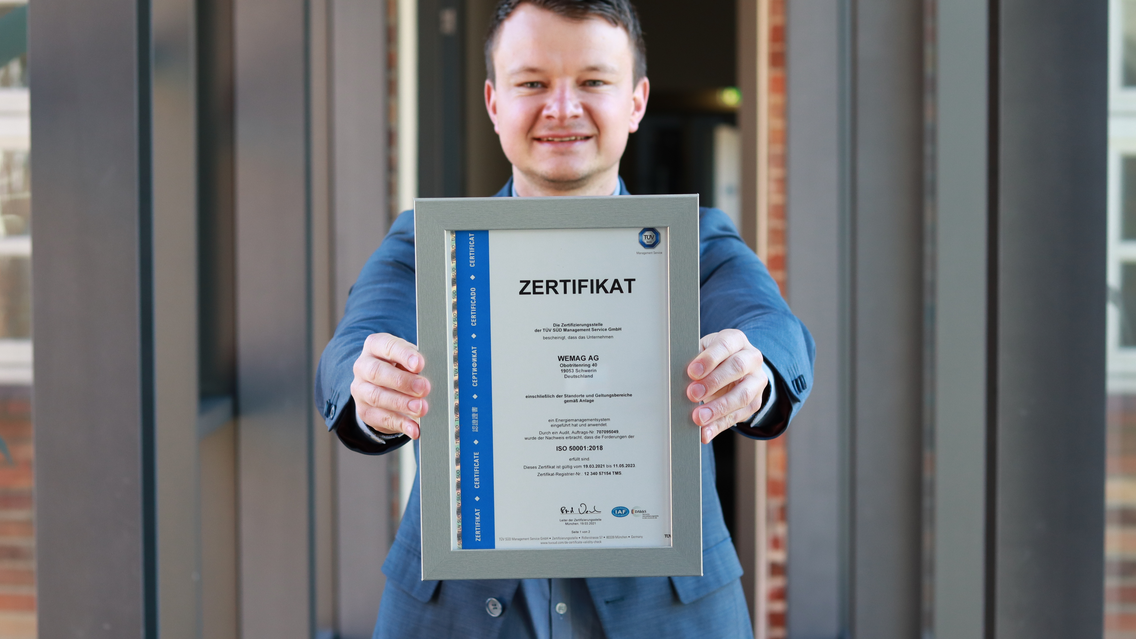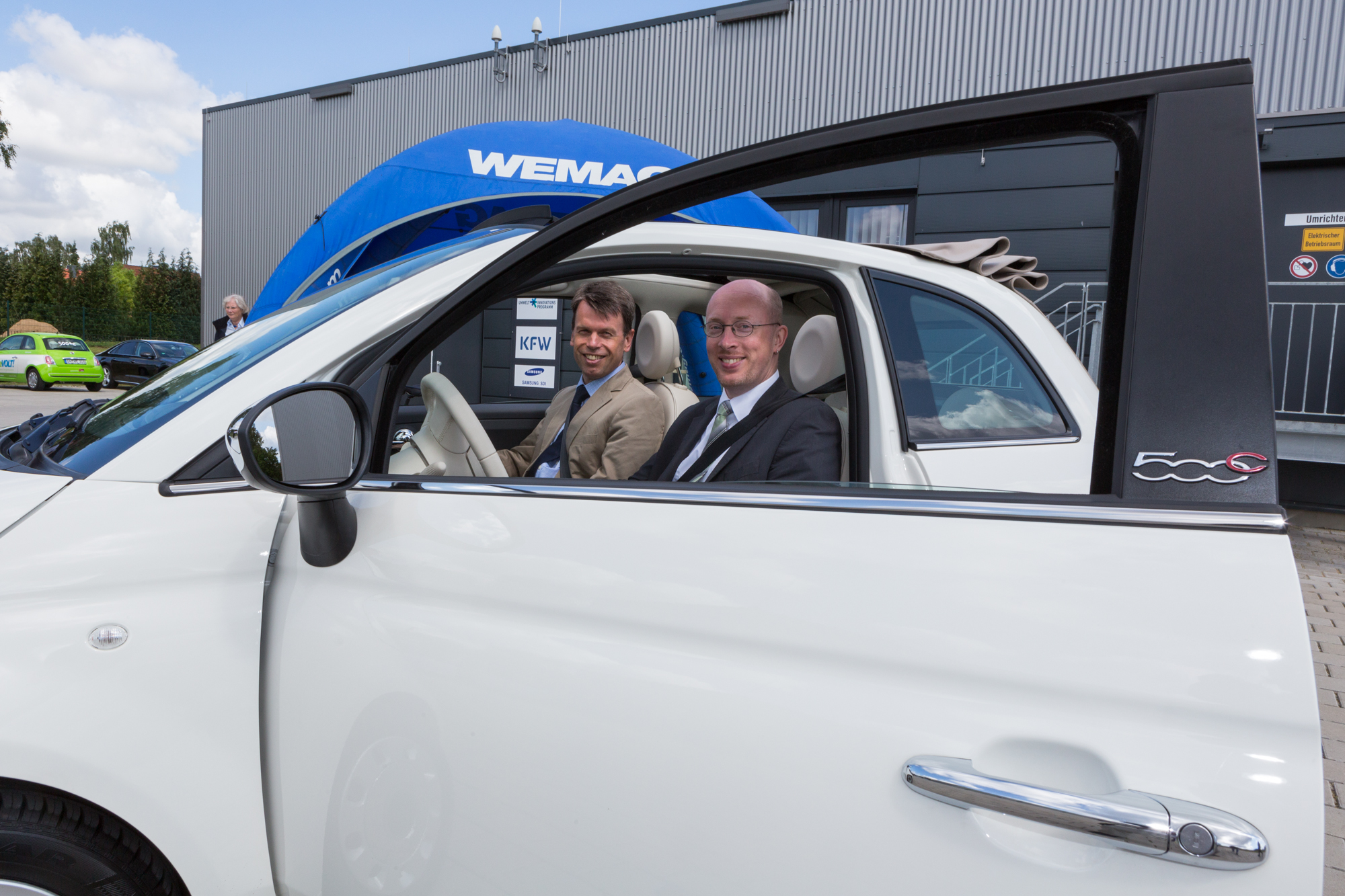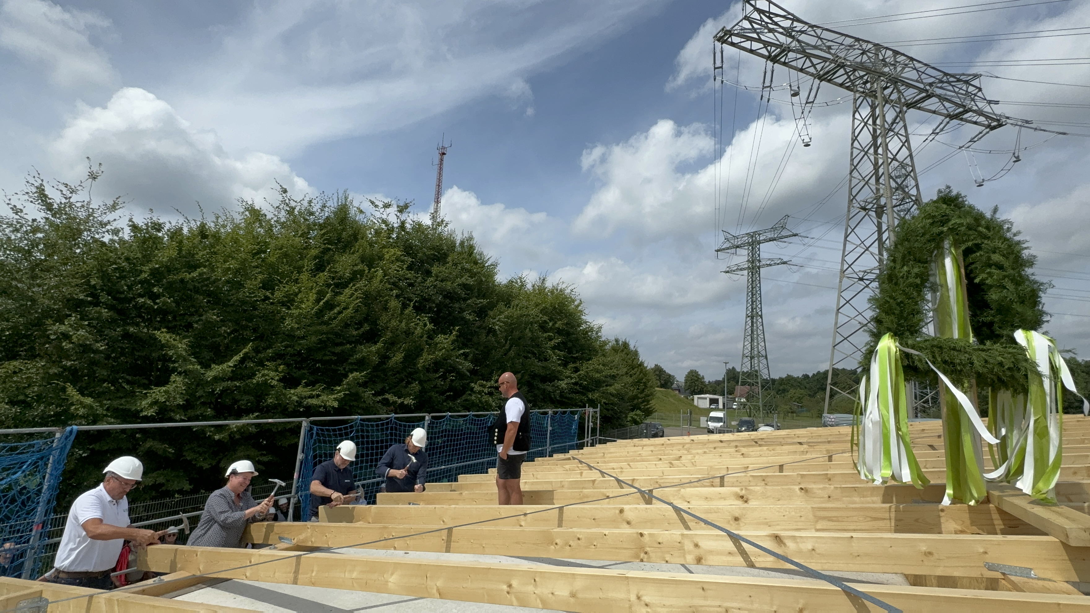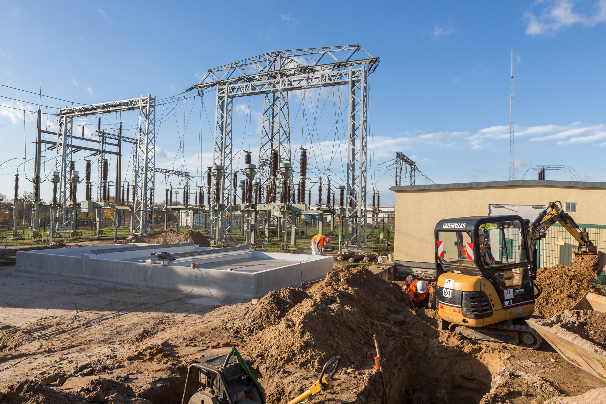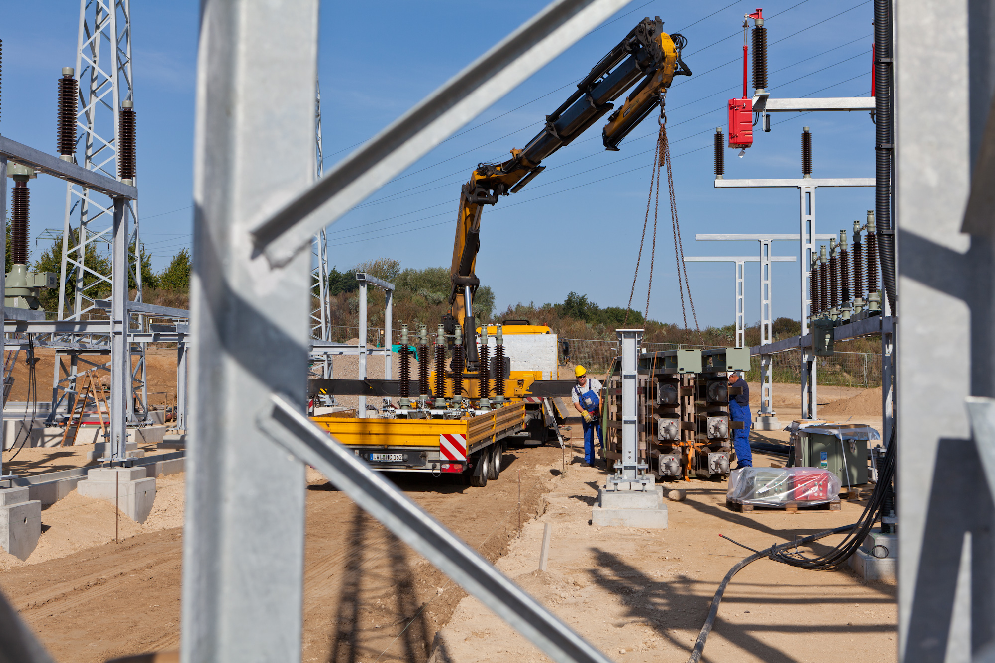 Offizielle Inbetriebnahme der Schaltstation in Kirch Jesar (v. l.): Frank Haacker, Siemens-Niederlassung Rostock, Christian Winkelmann, Transformare GmbH Wittenberge, Bernd Alvermann, Kuhlmann Leitungsbau GmbH, Anne Reimuck, WEMAG Projektentwicklung GmbH, Thomas Murche, WEMAG-Vorstand, Tim Stieger, WEMAG Netz GmbH. / Foto: WEMAG/Stephan Rudolph-Kramer