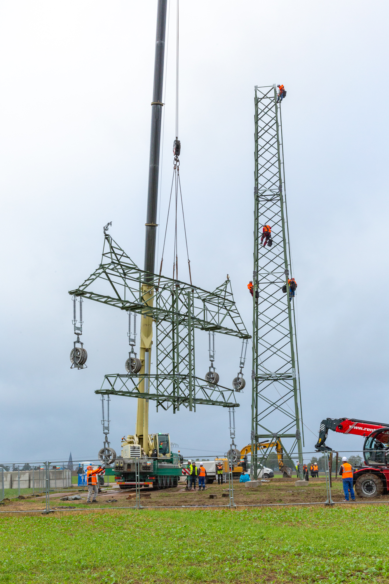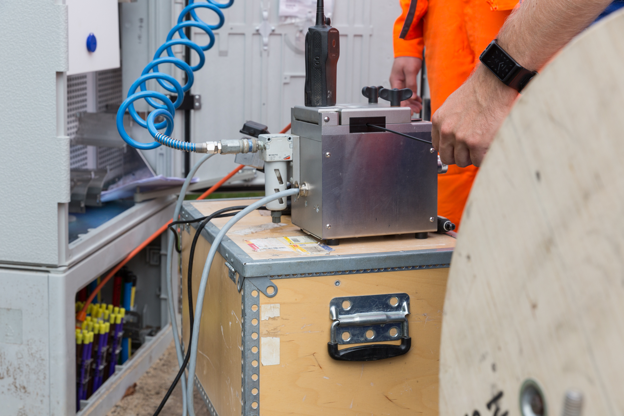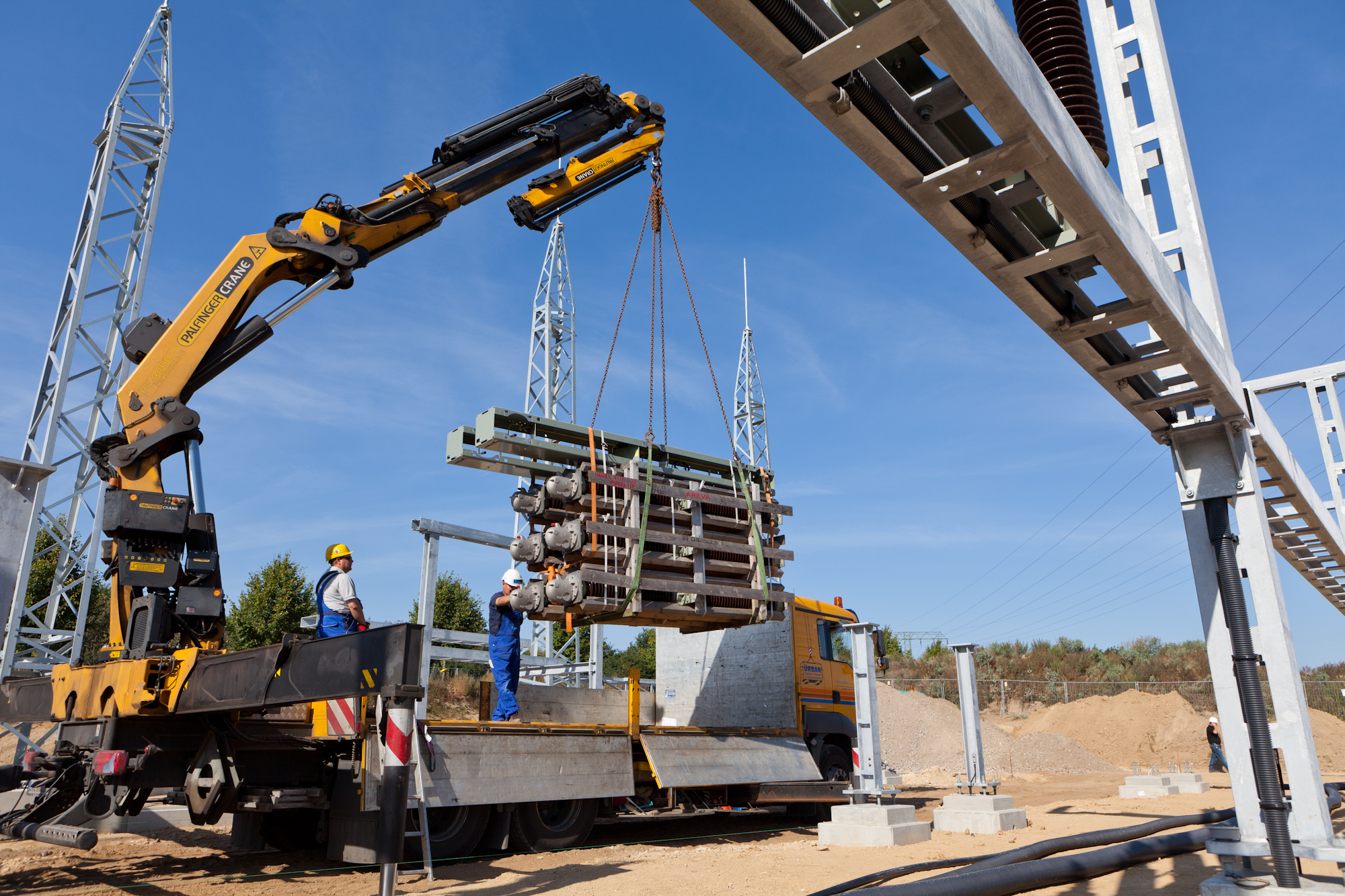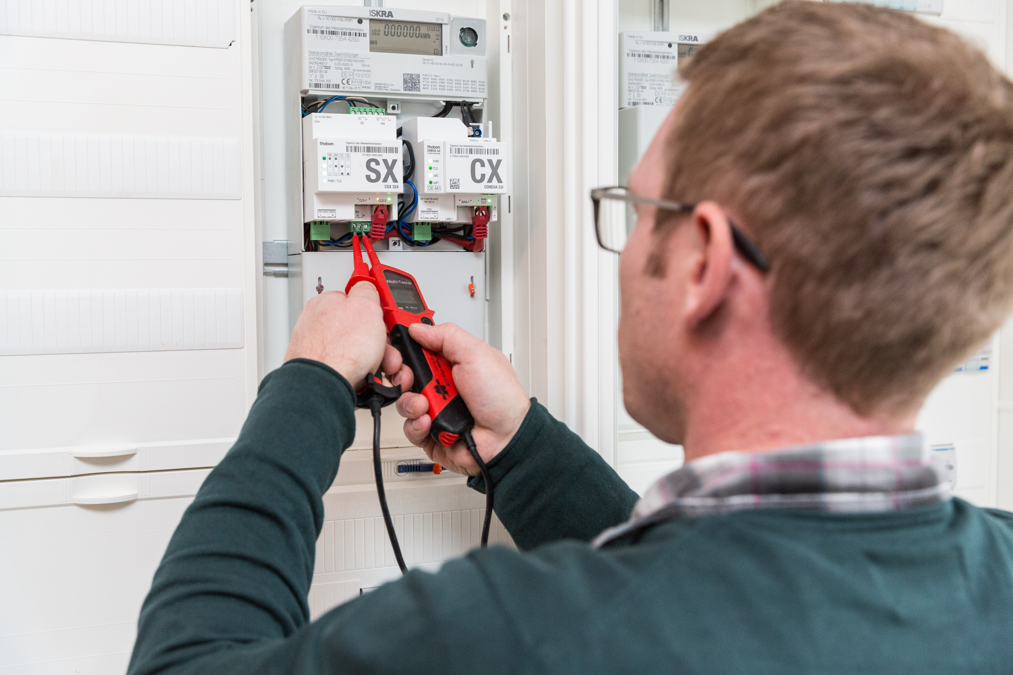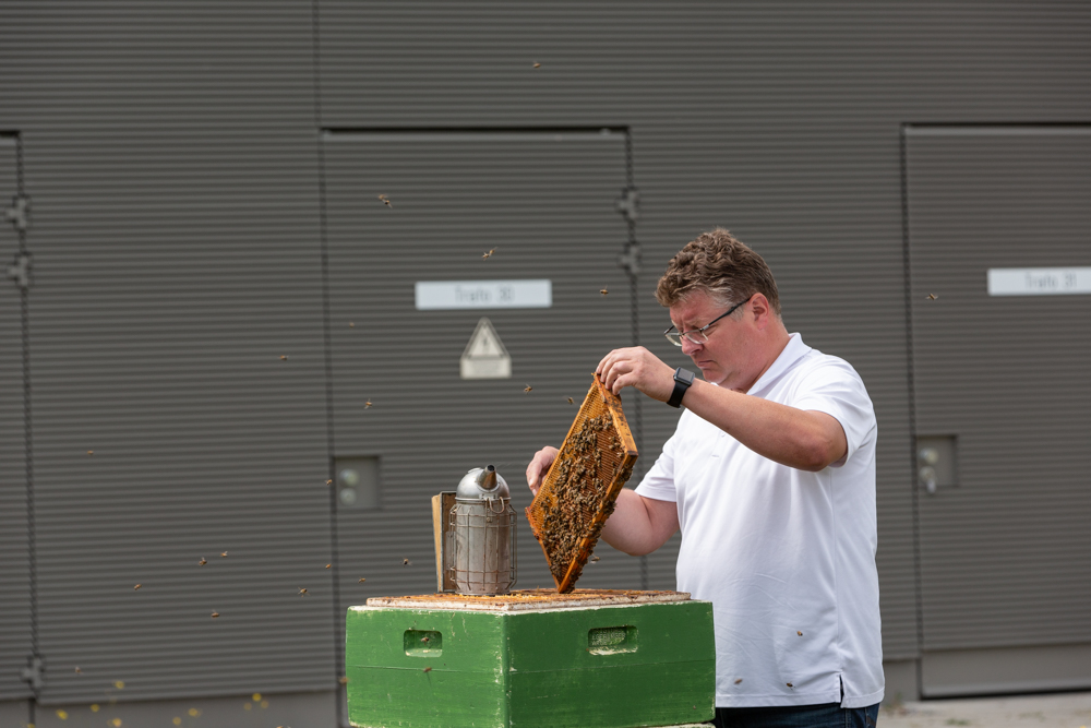 Offizielle Inbetriebnahme der Schaltstation in Kirch Jesar (v. l.): Frank Haacker, Siemens-Niederlassung Rostock, Christian Winkelmann, Transformare GmbH Wittenberge, Bernd Alvermann, Kuhlmann Leitungsbau GmbH, Anne Reimuck, WEMAG Projektentwicklung GmbH, Thomas Murche, WEMAG-Vorstand, Tim Stieger, WEMAG Netz GmbH. / Foto: WEMAG/Stephan Rudolph-Kramer