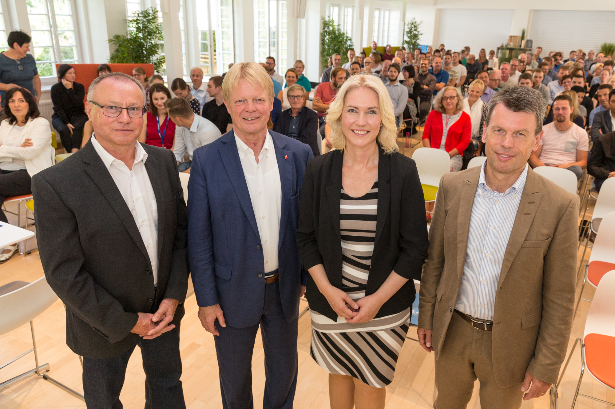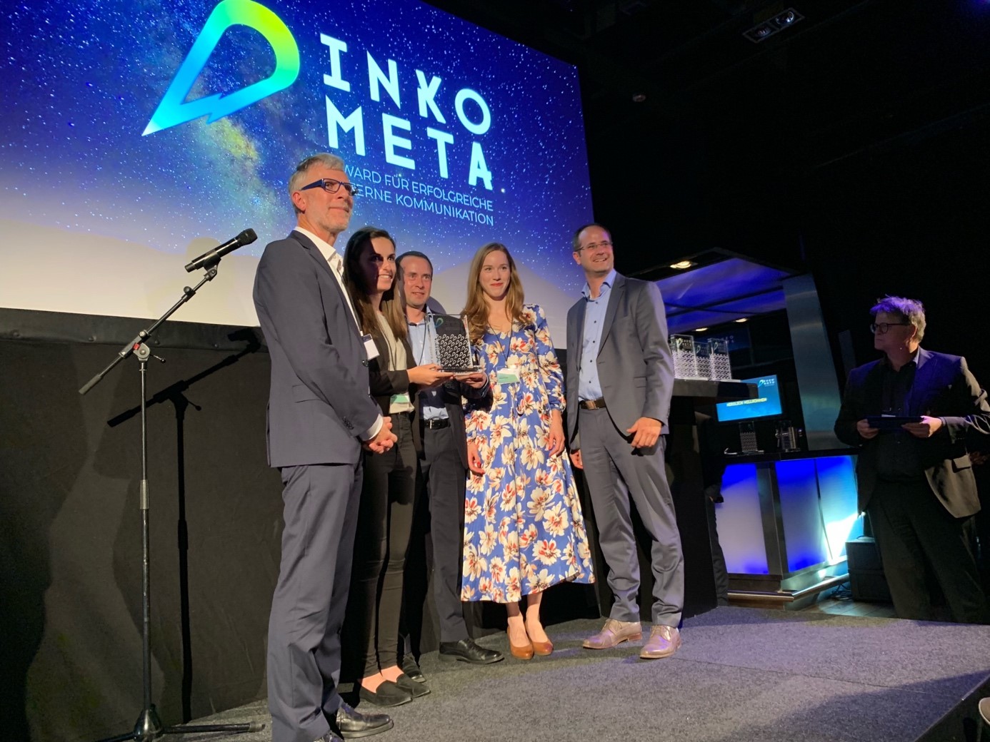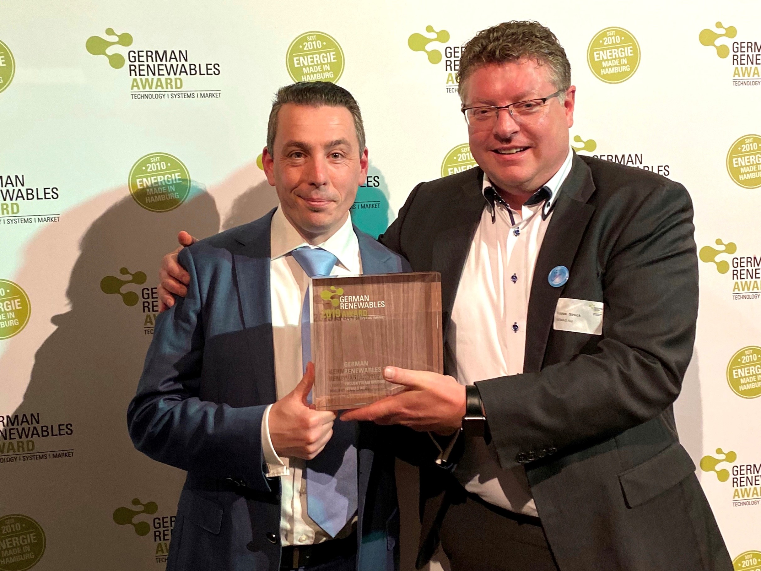Die Strom zu Gas-Projektpartner bei der VKU-Preisverleihung in Berlin v.l.n.r. Ivo Gönner (VKU), Elke Wanke (Thüga), Michael Riechel (Thüga), Ralf Schodlok (ESWE), Roland Moritzer (Stadtwerke Ansbach), Phil Doran (ITM Power), Uwe Berlinghoff (Mainova),Ingo Franke (Mainova),Dieter Sommerhalter (badenova Netz),Tobias Struck (WEMAG), Katharina Reiche (VKU). Foto: VKU