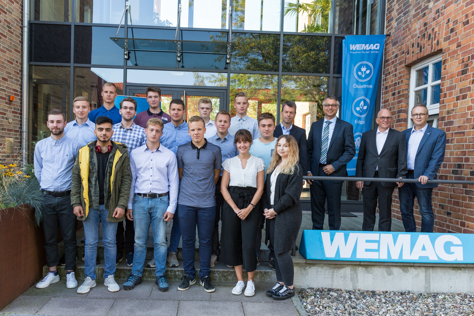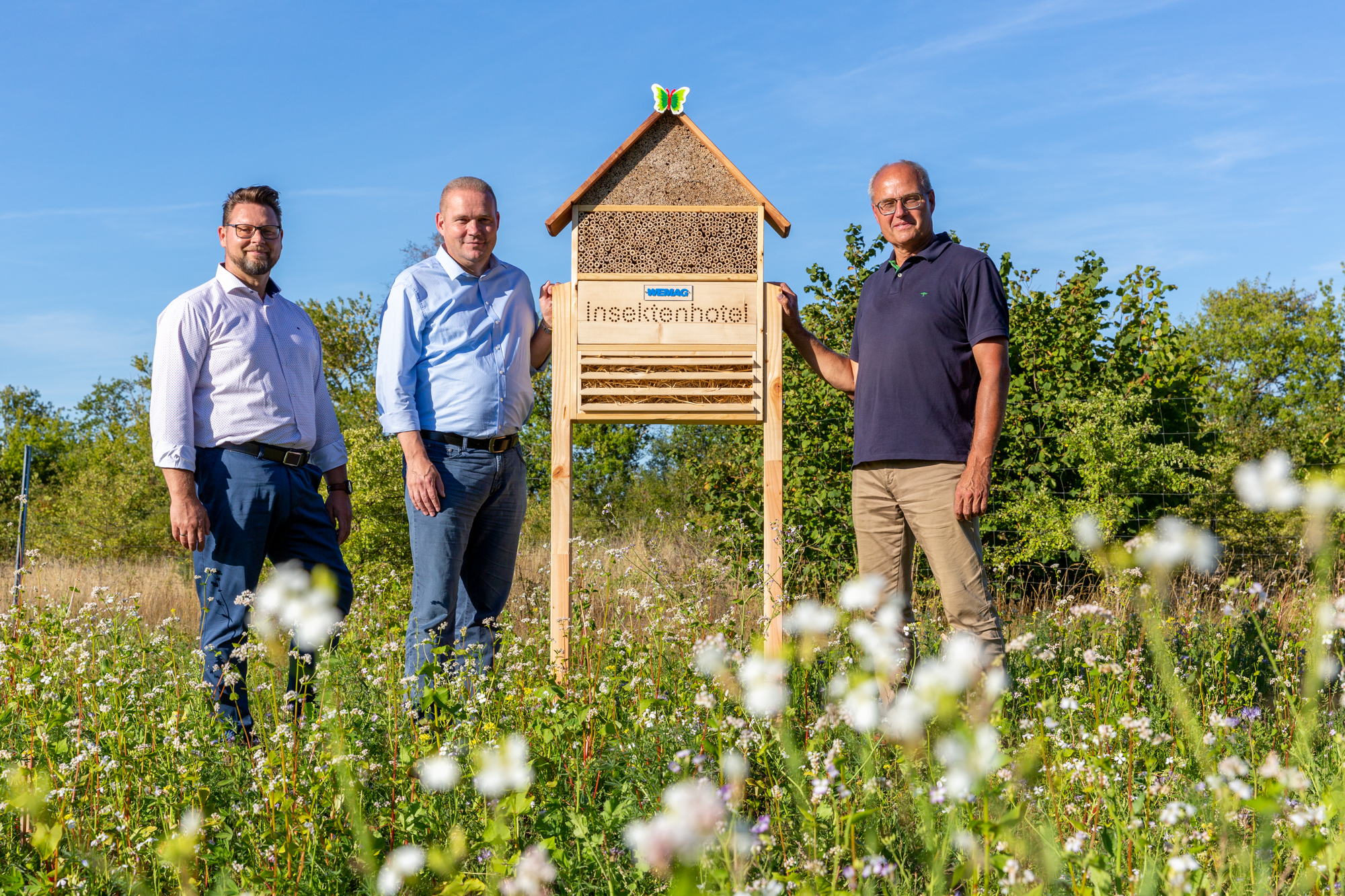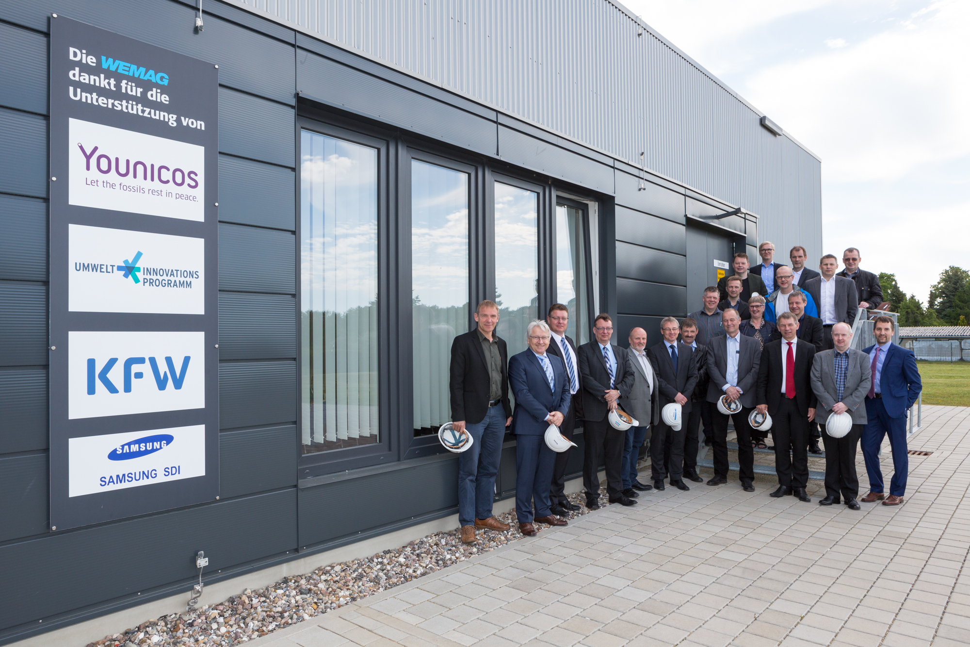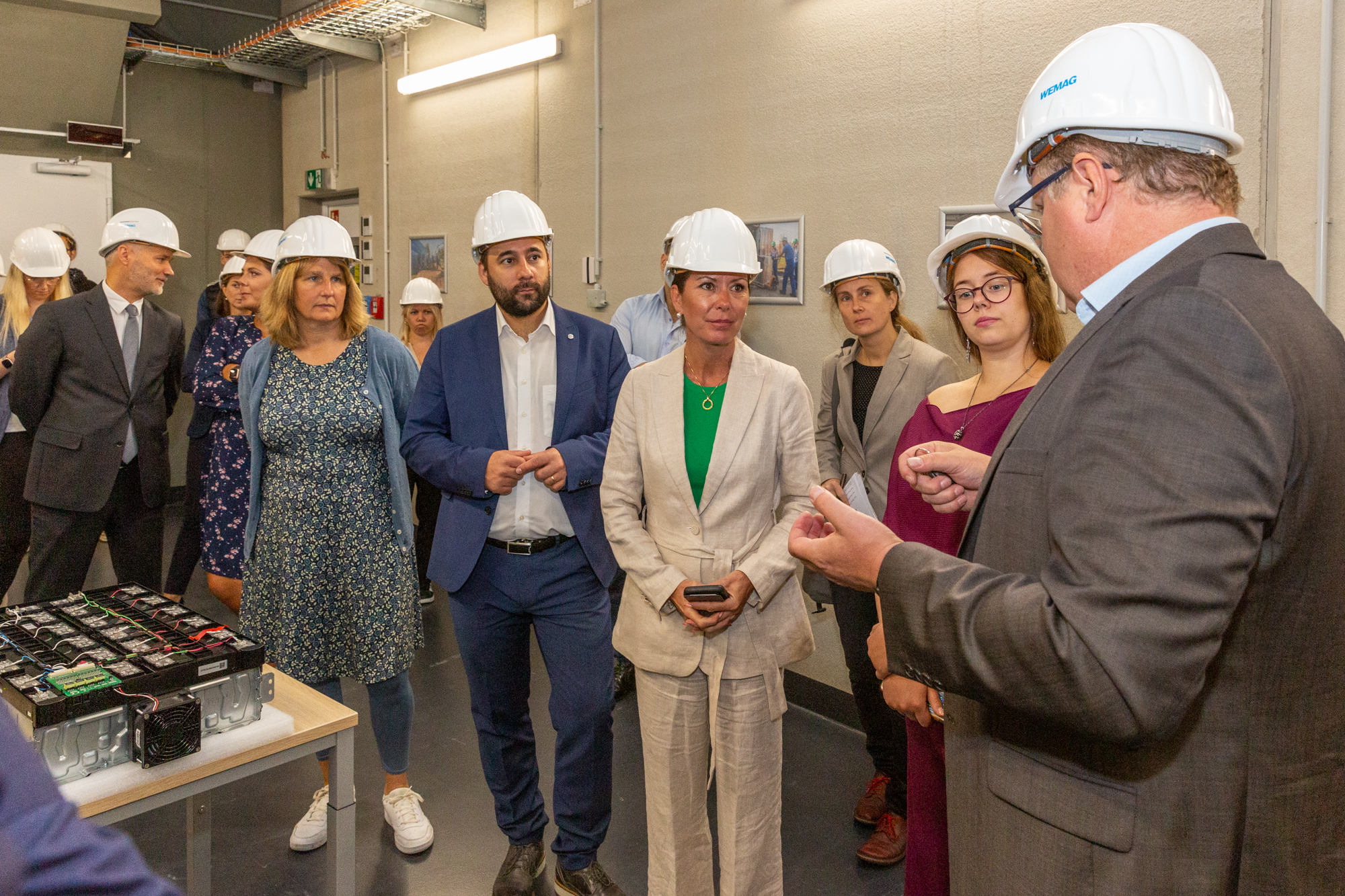 Christian Pegel, Energieminister der Landes Mecklenburg-Vorpommern, Thomas Murche, WEMAG-Vorstand, Sabine Foth, Synodalpräsidentin der Evangelischen Landeskirche, Dr. Martin Kastrup, Finanzdezernent der Evangelischen Landeskirche, Wilfried Baldermann, Bürgermeister der Gemeinde Dobbin-Linstow, Karl-Heinz Garbe, Geschäftsführer der MES – Moderne Energie Systeme GmbH, Jens Eckhoff, Güstrower Kies und Mörtel GmbH, Tobias Schüssler, Geschäftsführer der Goldbeck Solar GmbH, Oliver Sommer, Projektleiter Enertek Anlagenbau GmbH (v.l.) / Foto: Stephan Rudolph-Kramer