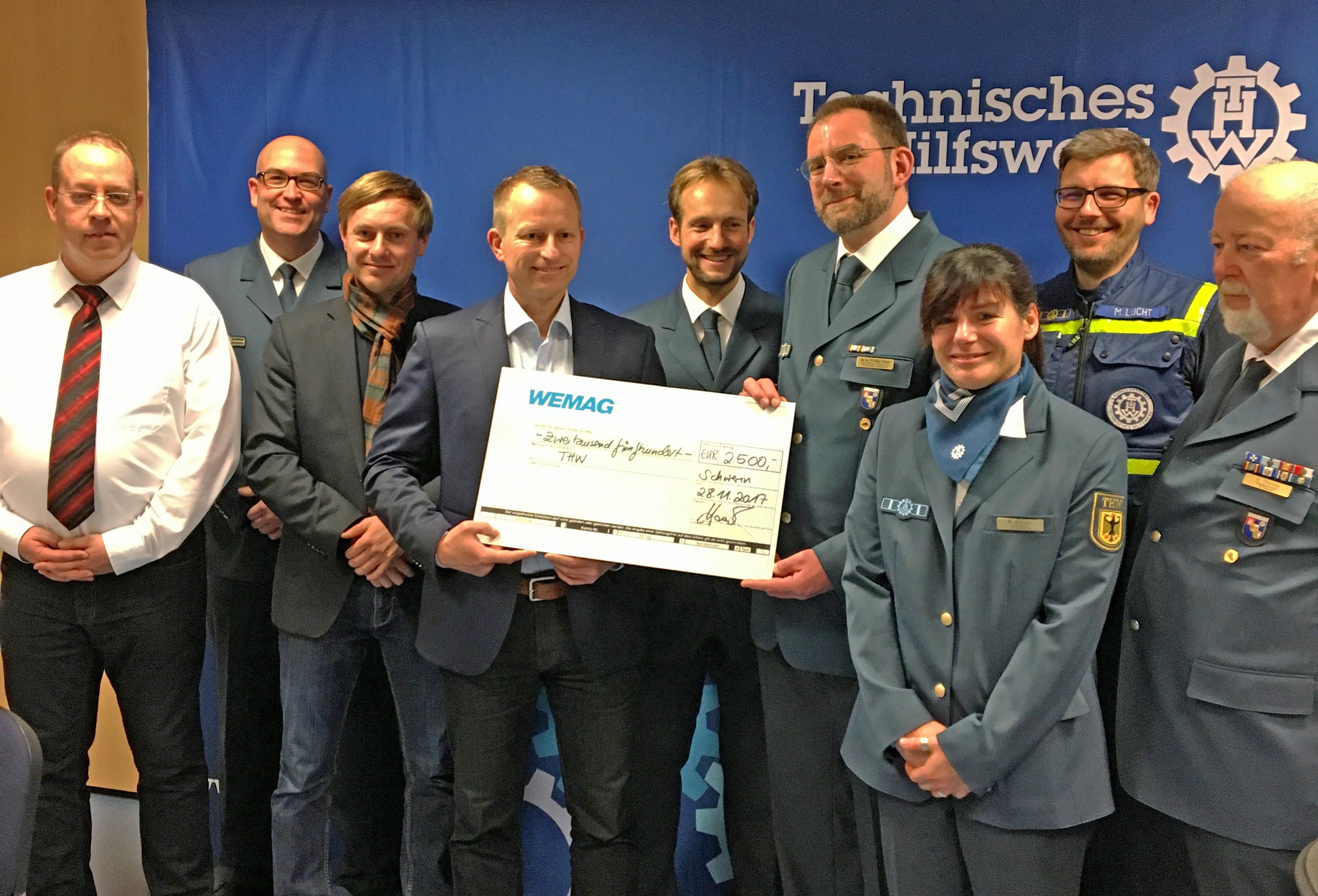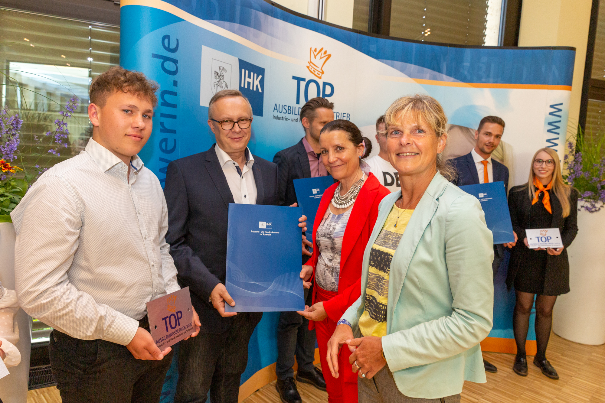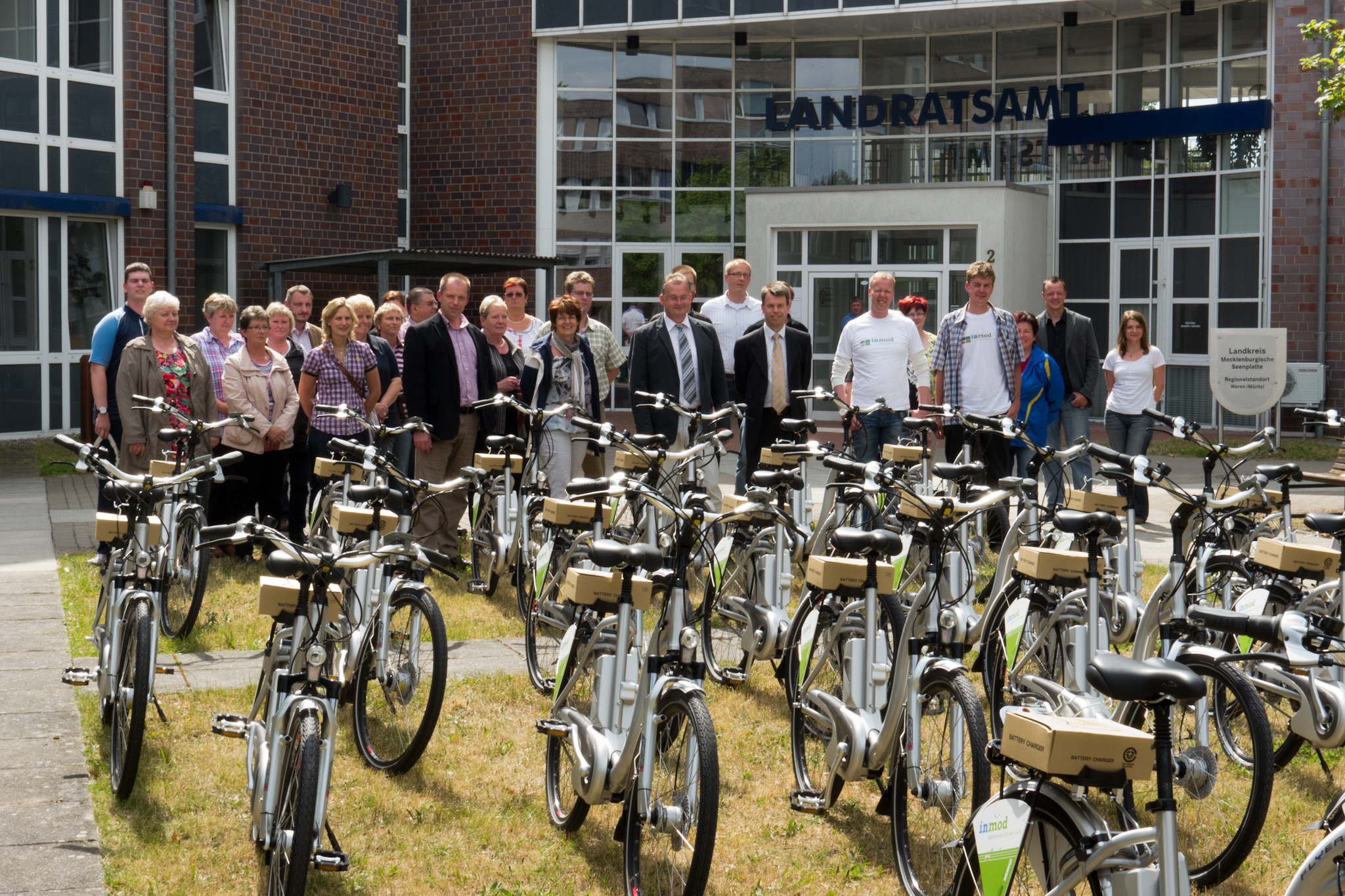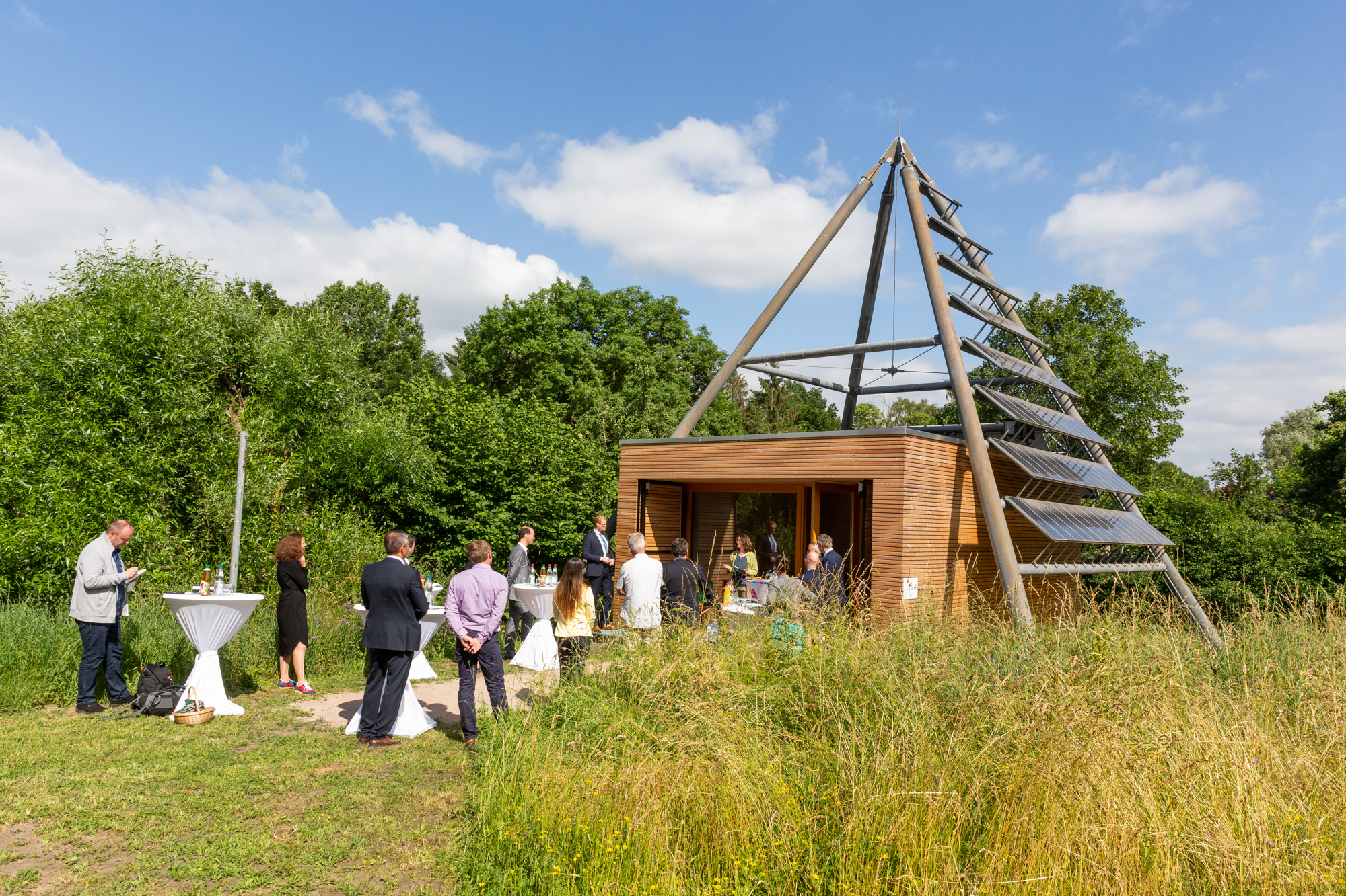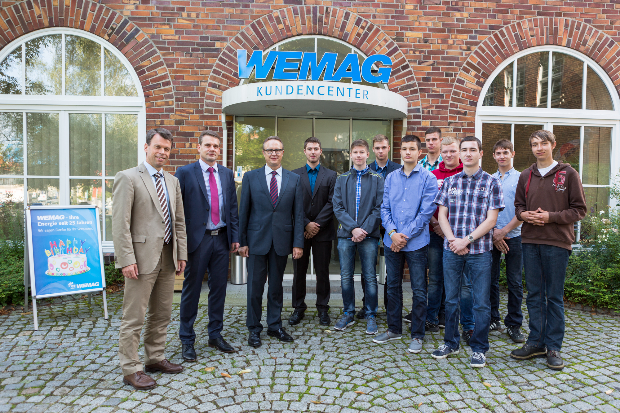 Christian Pegel, Energieminister der Landes Mecklenburg-Vorpommern, Thomas Murche, WEMAG-Vorstand, Sabine Foth, Synodalpräsidentin der Evangelischen Landeskirche, Dr. Martin Kastrup, Finanzdezernent der Evangelischen Landeskirche, Wilfried Baldermann, Bürgermeister der Gemeinde Dobbin-Linstow, Karl-Heinz Garbe, Geschäftsführer der MES – Moderne Energie Systeme GmbH, Jens Eckhoff, Güstrower Kies und Mörtel GmbH, Tobias Schüssler, Geschäftsführer der Goldbeck Solar GmbH, Oliver Sommer, Projektleiter Enertek Anlagenbau GmbH (v.l.) / Foto: Stephan Rudolph-Kramer