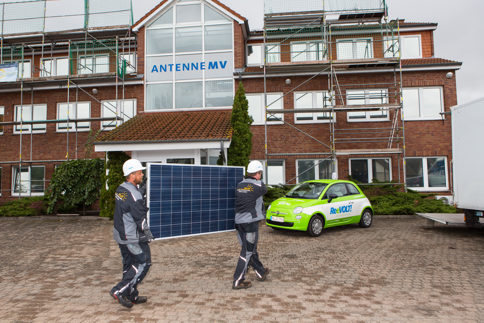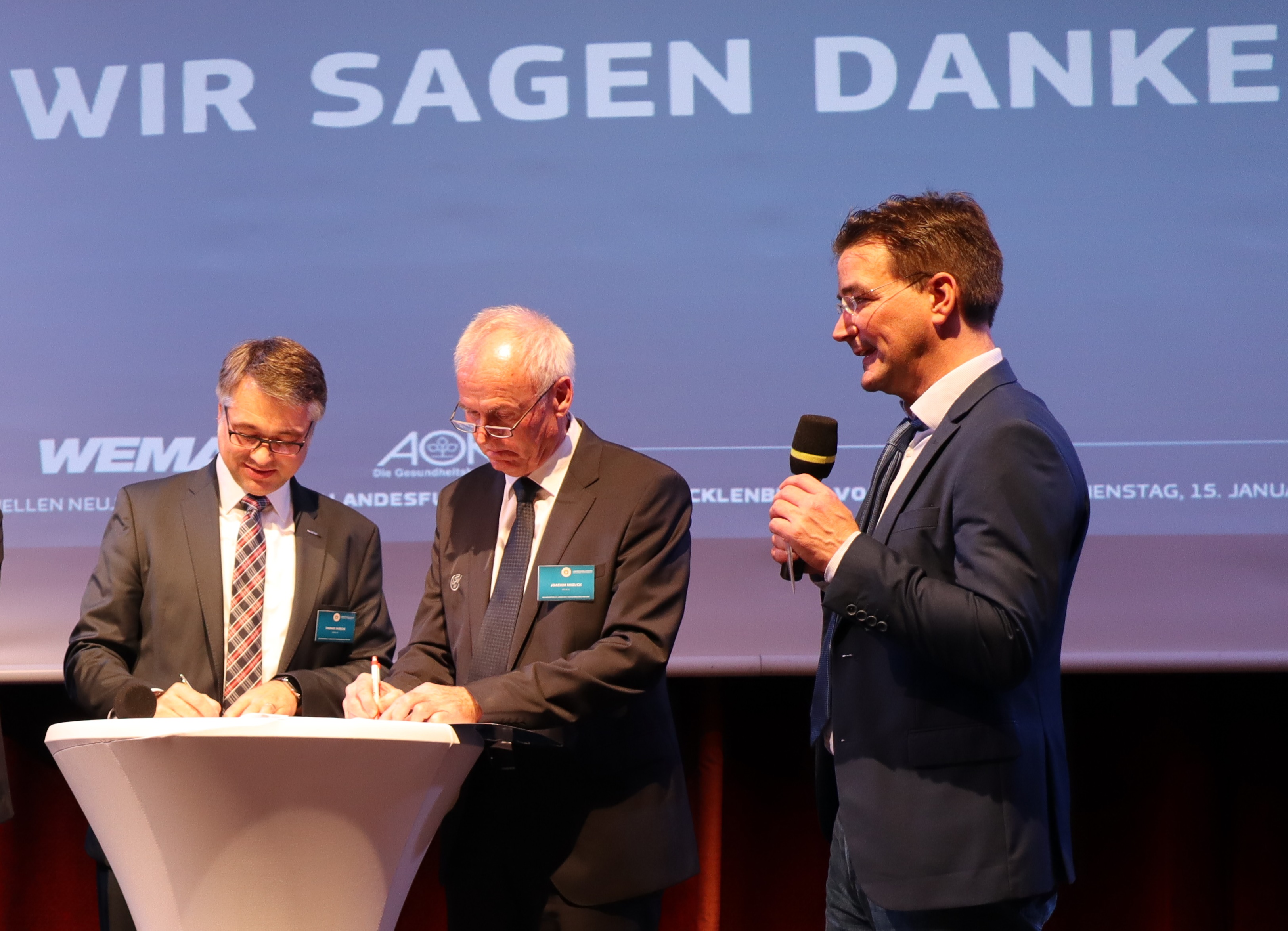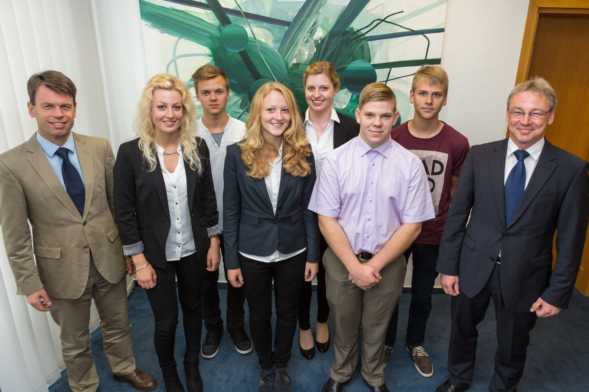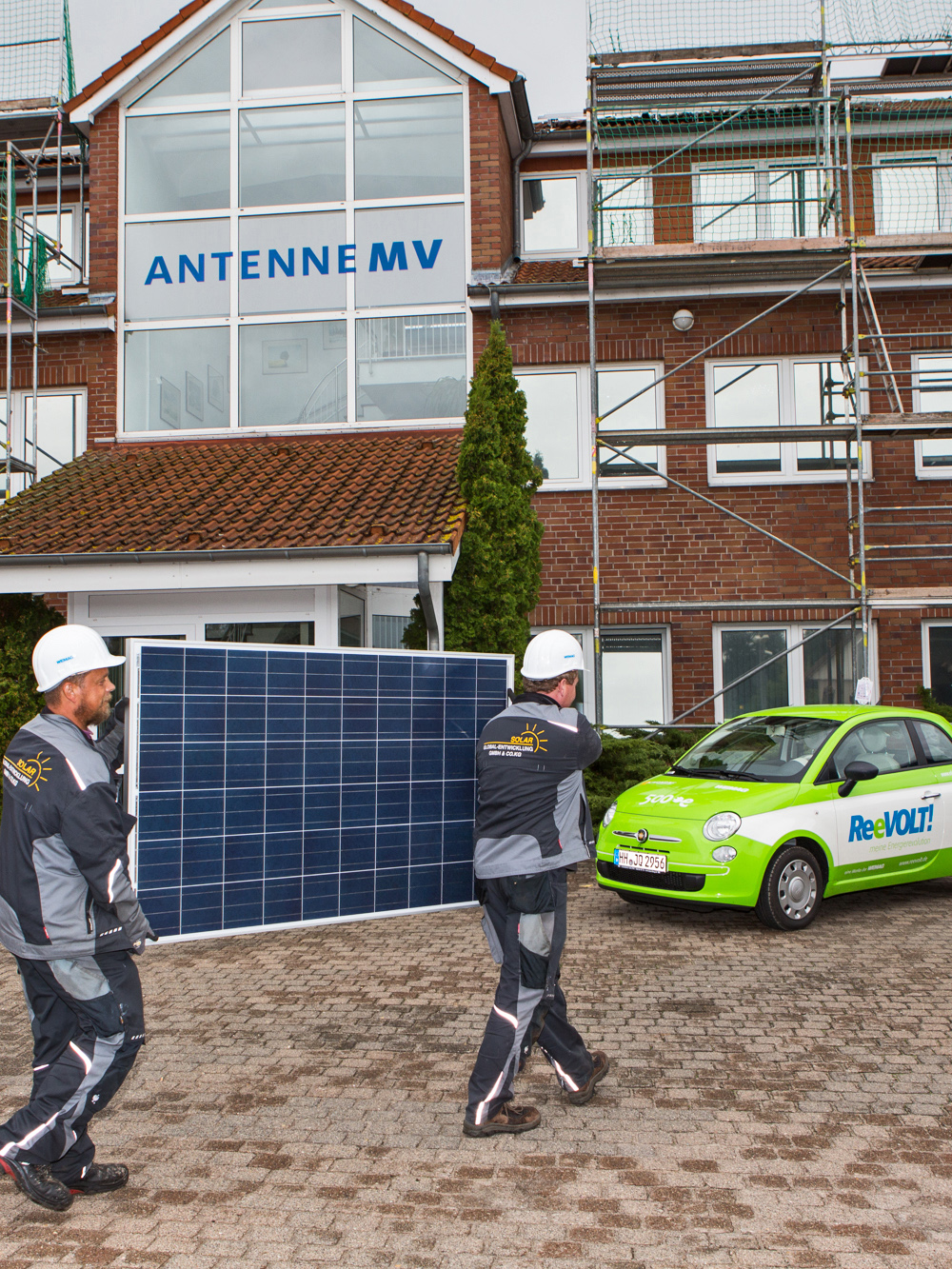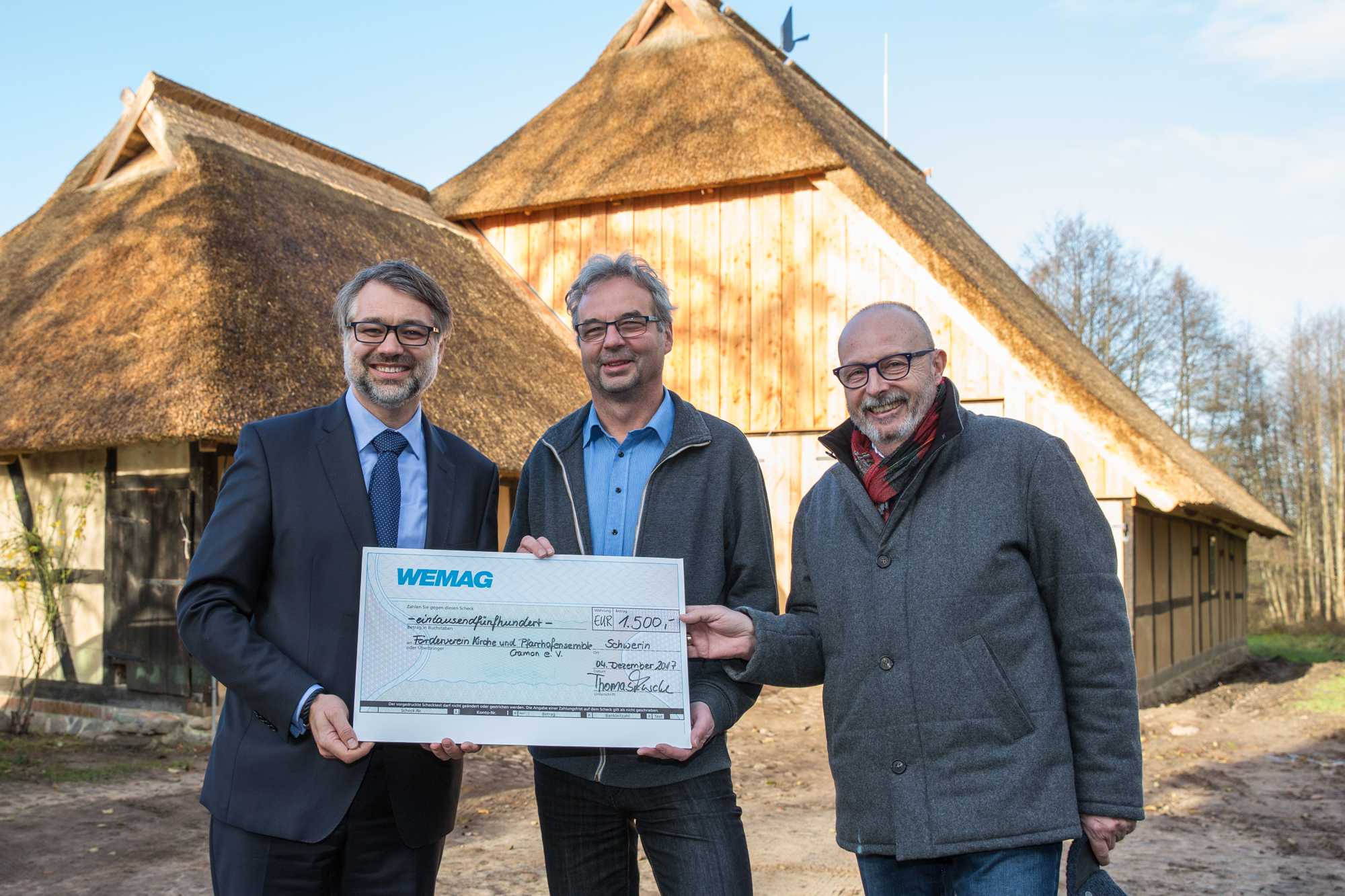Christian Pegel, Energieminister der Landes Mecklenburg-Vorpommern, Thomas Murche, WEMAG-Vorstand, Sabine Foth, Synodalpräsidentin der Evangelischen Landeskirche, Dr. Martin Kastrup, Finanzdezernent der Evangelischen Landeskirche, Wilfried Baldermann, Bürgermeister der Gemeinde Dobbin-Linstow, Karl-Heinz Garbe, Geschäftsführer der MES – Moderne Energie Systeme GmbH, Jens Eckhoff, Güstrower Kies und Mörtel GmbH, Tobias Schüssler, Geschäftsführer der Goldbeck Solar GmbH, Oliver Sommer, Projektleiter Enertek Anlagenbau GmbH (v.l.) / Foto: Stephan Rudolph-Kramer