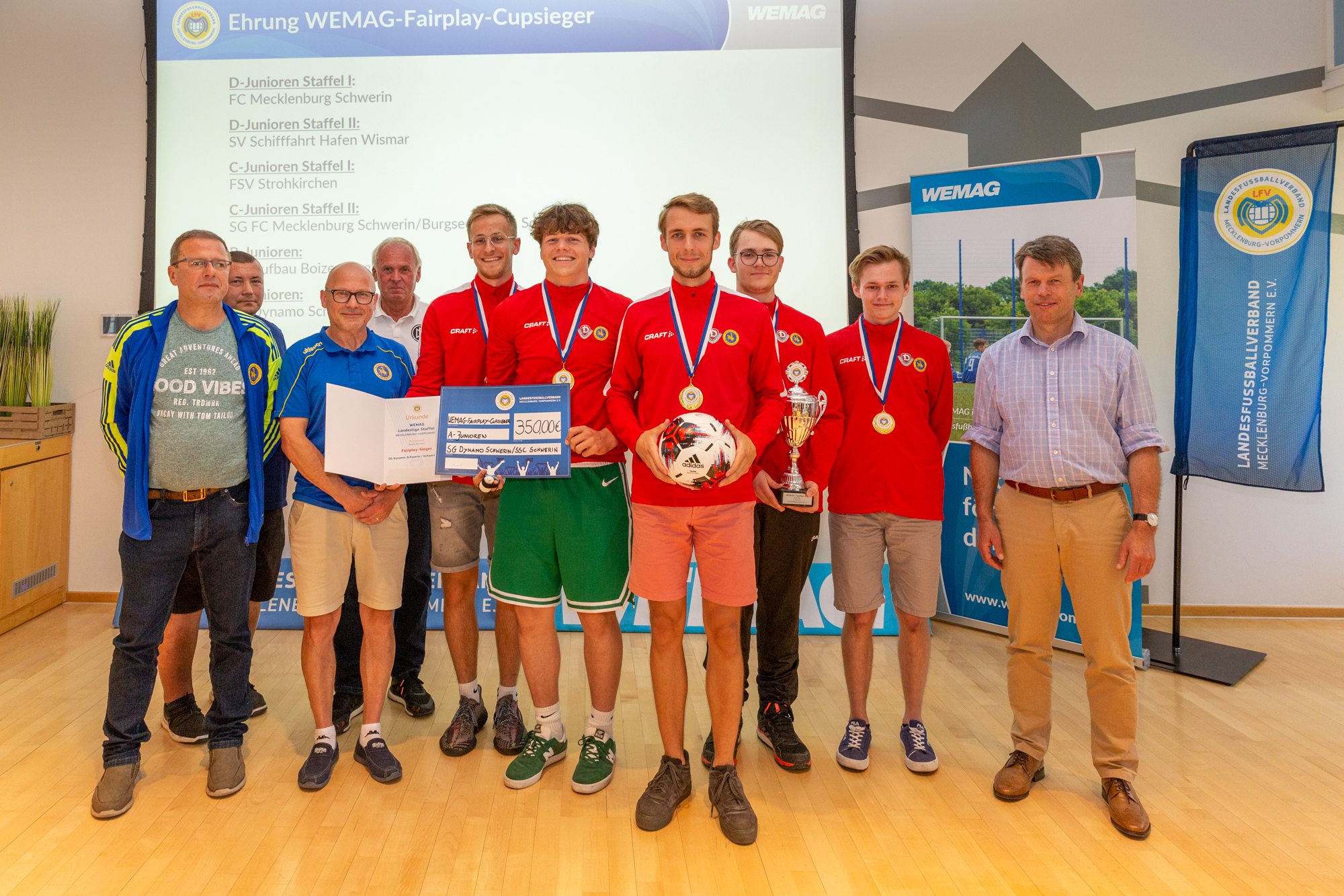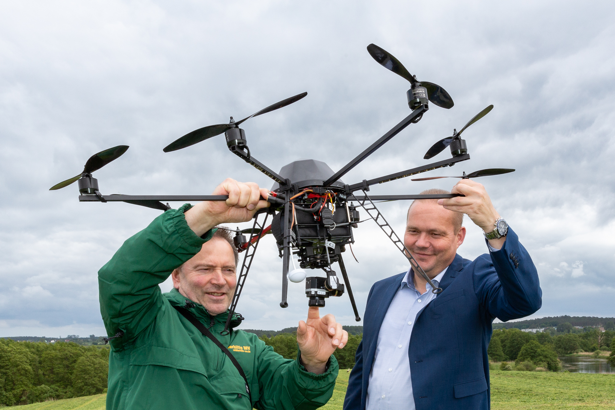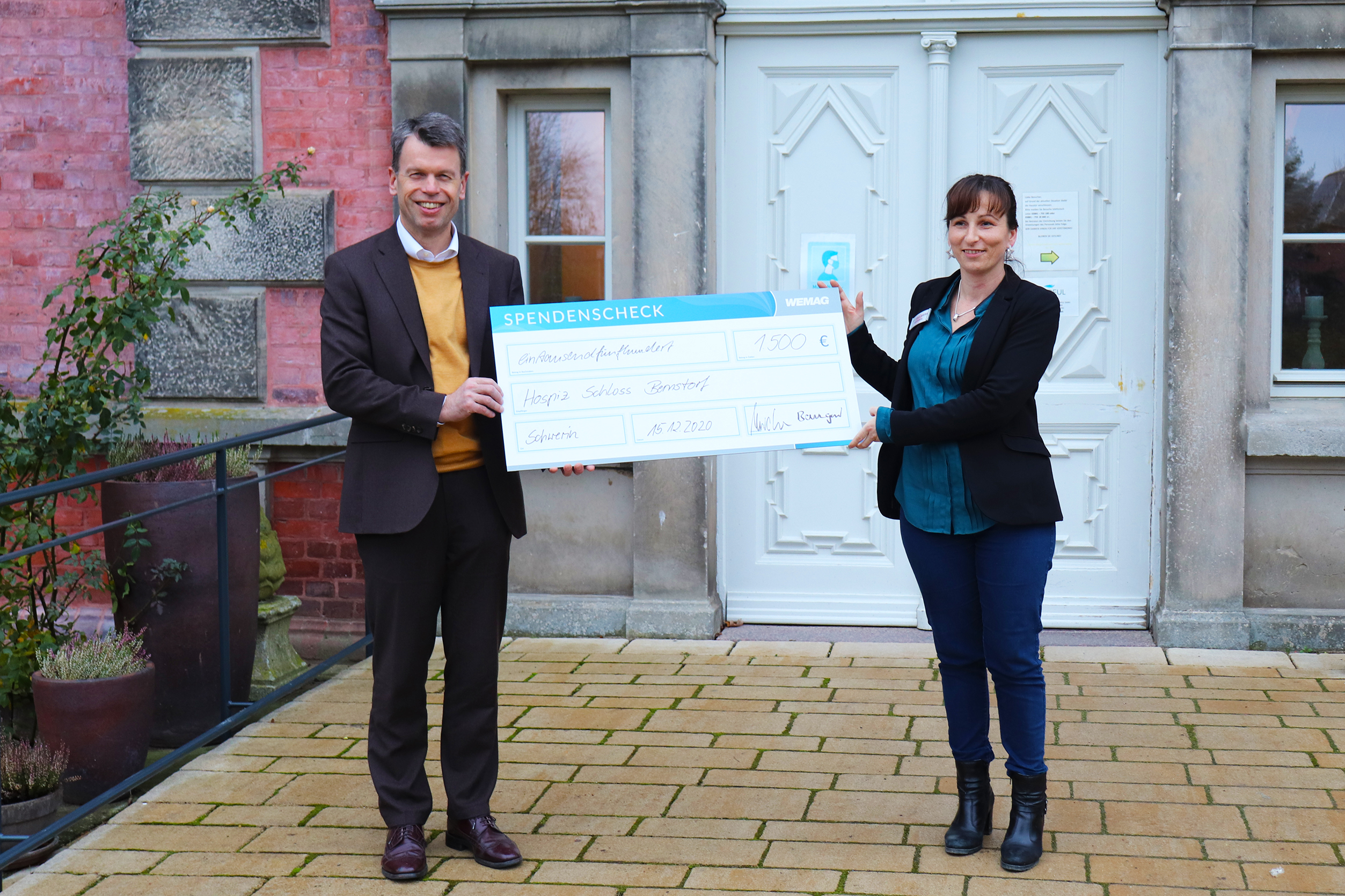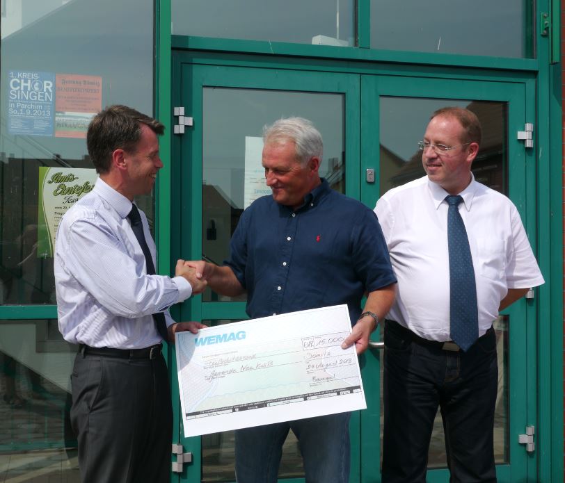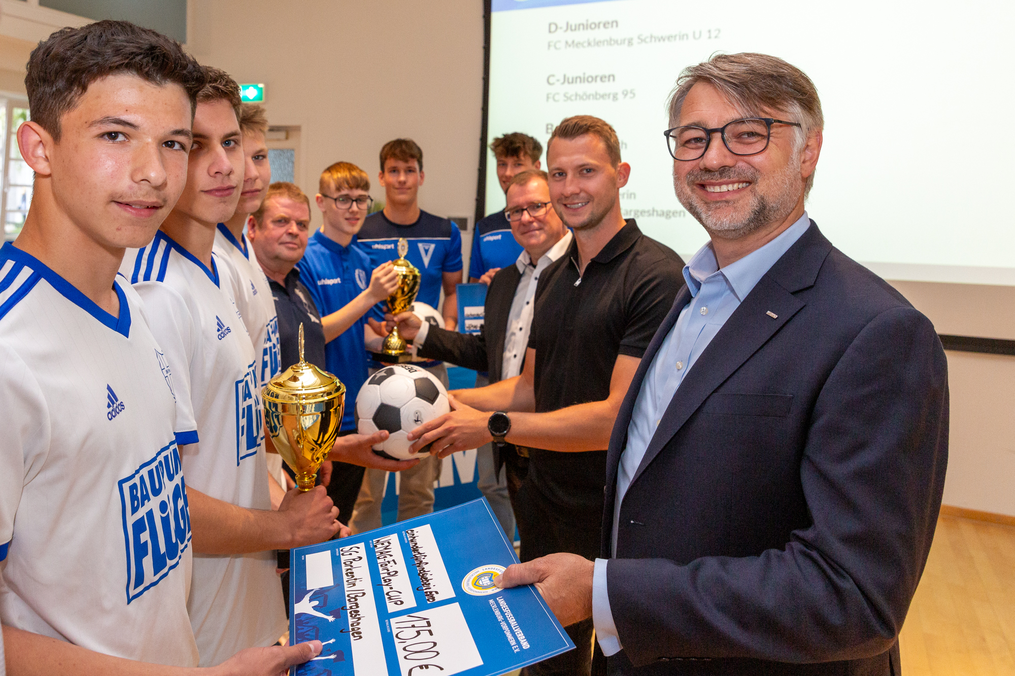 Christian Pegel, Energieminister der Landes Mecklenburg-Vorpommern, Thomas Murche, WEMAG-Vorstand, Sabine Foth, Synodalpräsidentin der Evangelischen Landeskirche, Dr. Martin Kastrup, Finanzdezernent der Evangelischen Landeskirche, Wilfried Baldermann, Bürgermeister der Gemeinde Dobbin-Linstow, Karl-Heinz Garbe, Geschäftsführer der MES – Moderne Energie Systeme GmbH, Jens Eckhoff, Güstrower Kies und Mörtel GmbH, Tobias Schüssler, Geschäftsführer der Goldbeck Solar GmbH, Oliver Sommer, Projektleiter Enertek Anlagenbau GmbH (v.l.) / Foto: Stephan Rudolph-Kramer