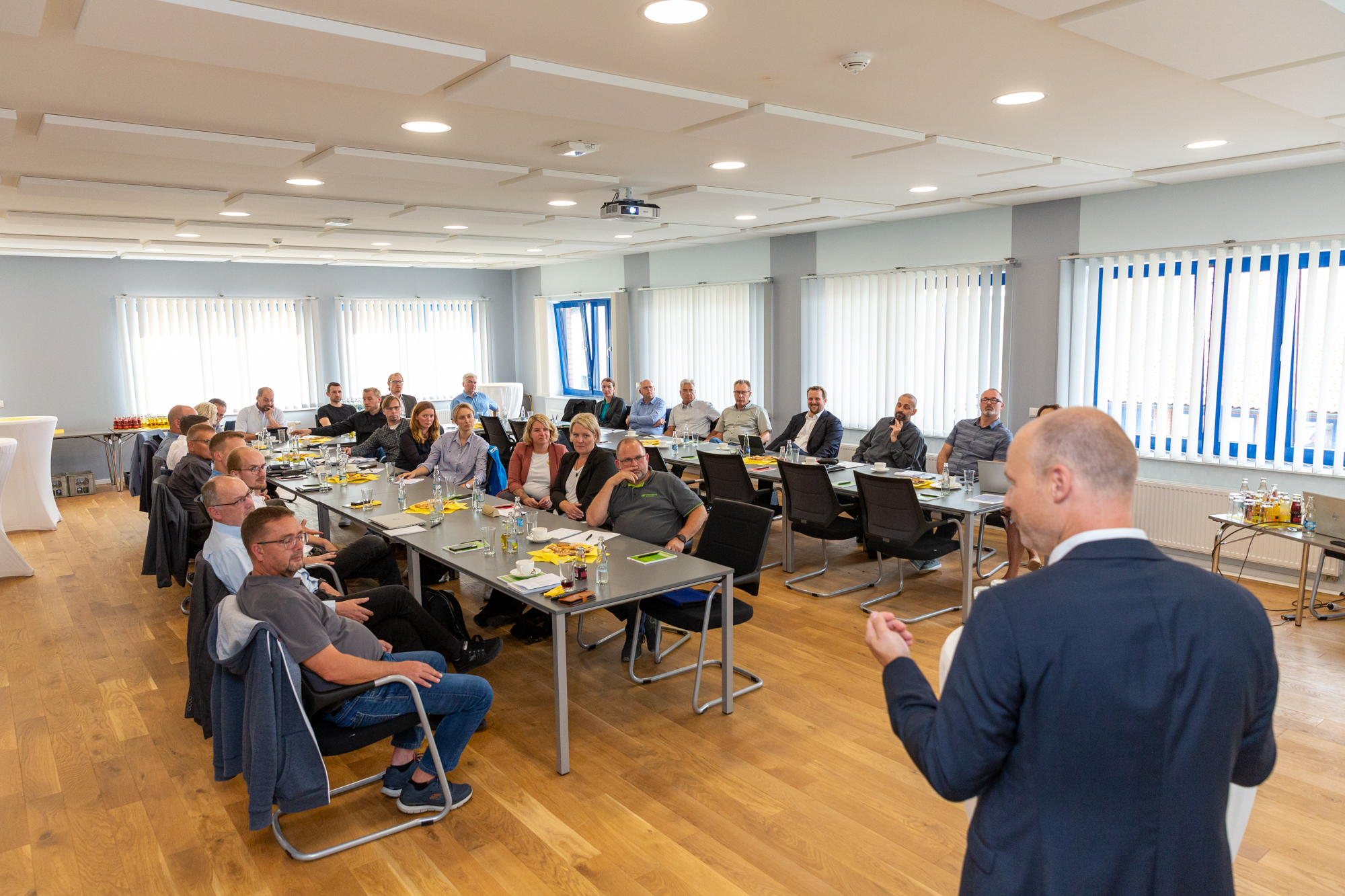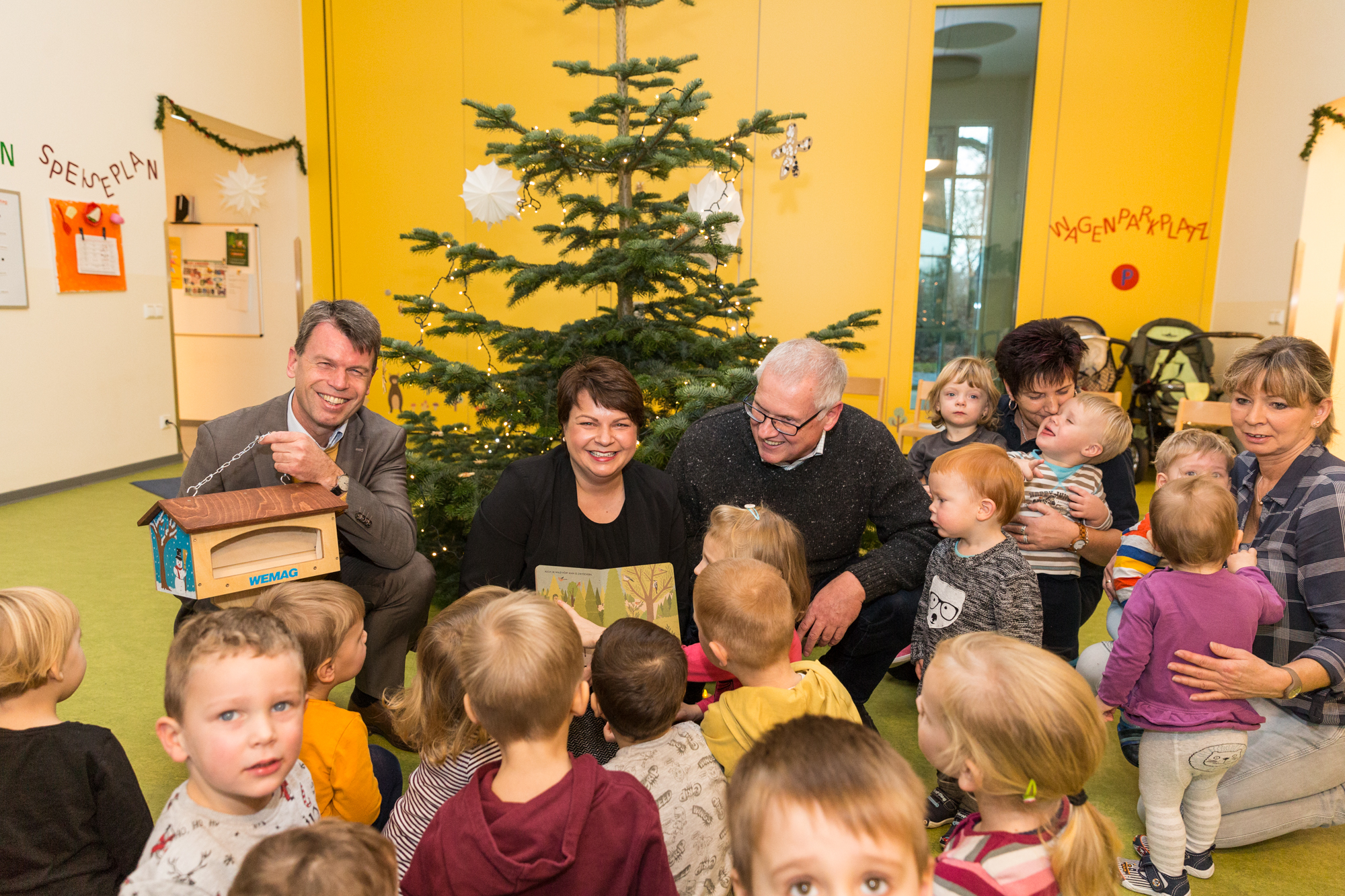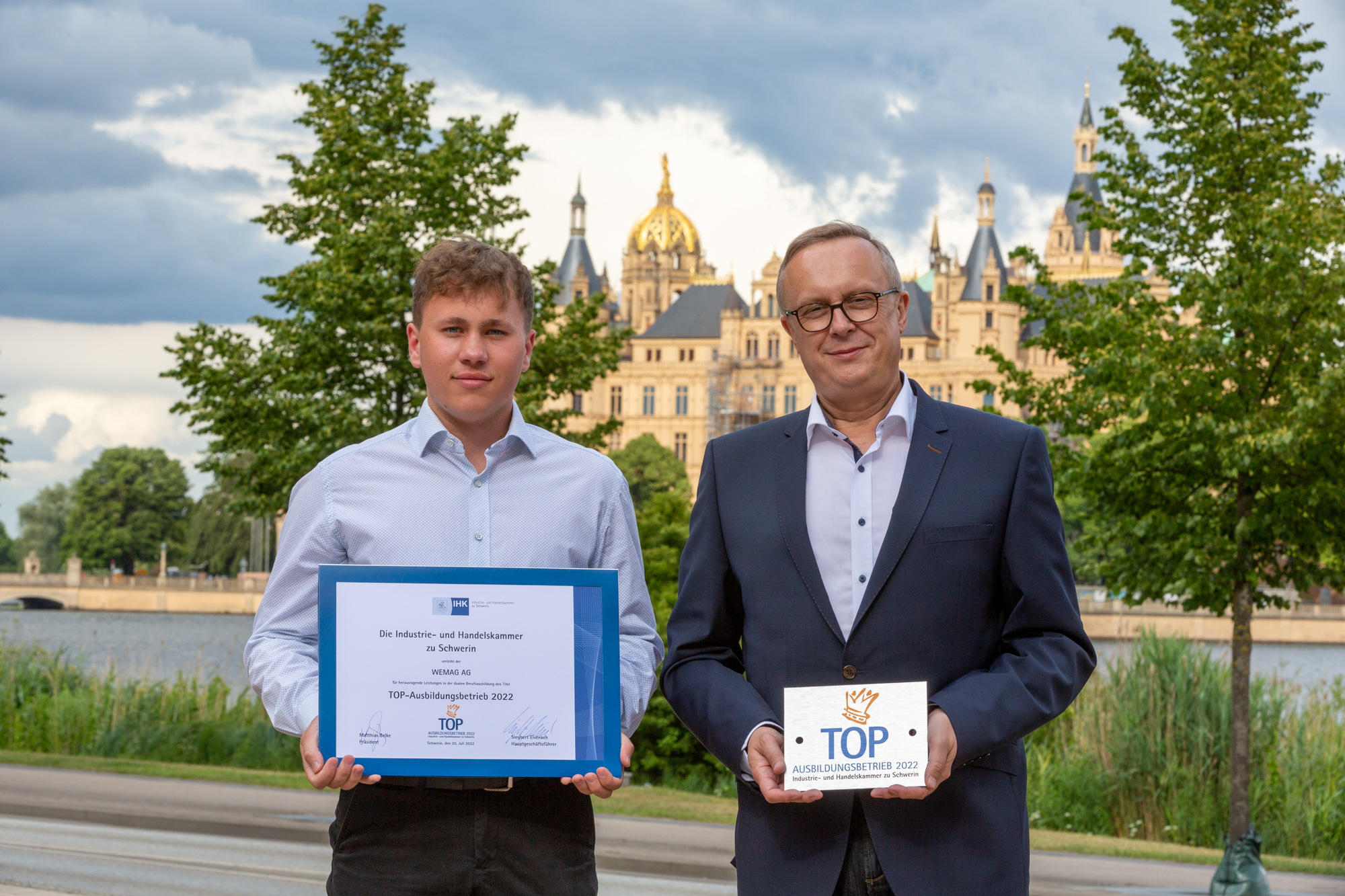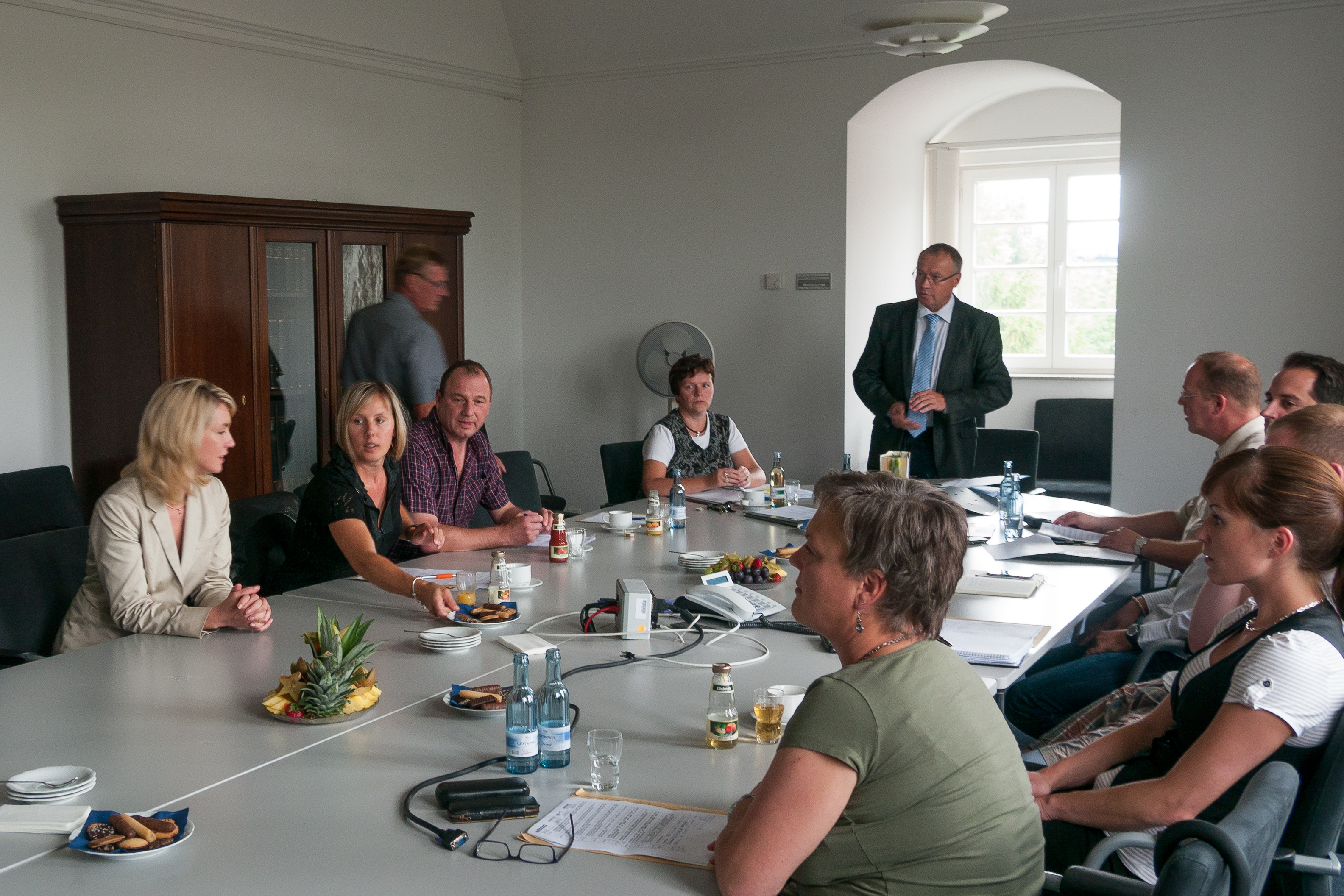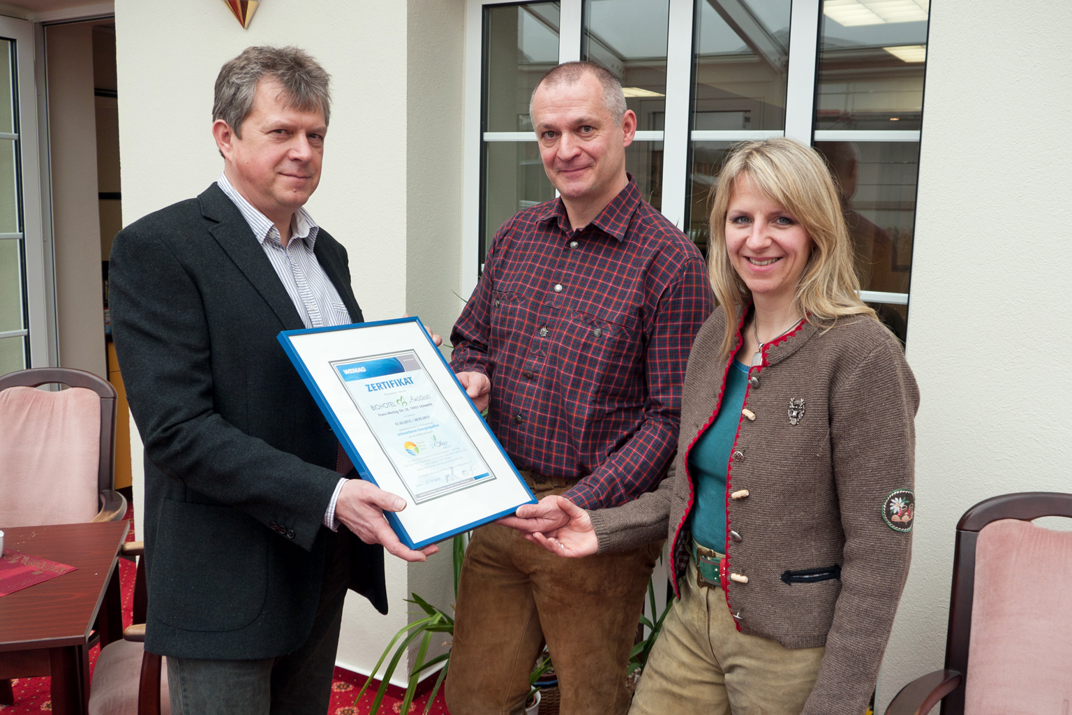 Christian Pegel, Energieminister der Landes Mecklenburg-Vorpommern, Thomas Murche, WEMAG-Vorstand, Sabine Foth, Synodalpräsidentin der Evangelischen Landeskirche, Dr. Martin Kastrup, Finanzdezernent der Evangelischen Landeskirche, Wilfried Baldermann, Bürgermeister der Gemeinde Dobbin-Linstow, Karl-Heinz Garbe, Geschäftsführer der MES – Moderne Energie Systeme GmbH, Jens Eckhoff, Güstrower Kies und Mörtel GmbH, Tobias Schüssler, Geschäftsführer der Goldbeck Solar GmbH, Oliver Sommer, Projektleiter Enertek Anlagenbau GmbH (v.l.) / Foto: Stephan Rudolph-Kramer