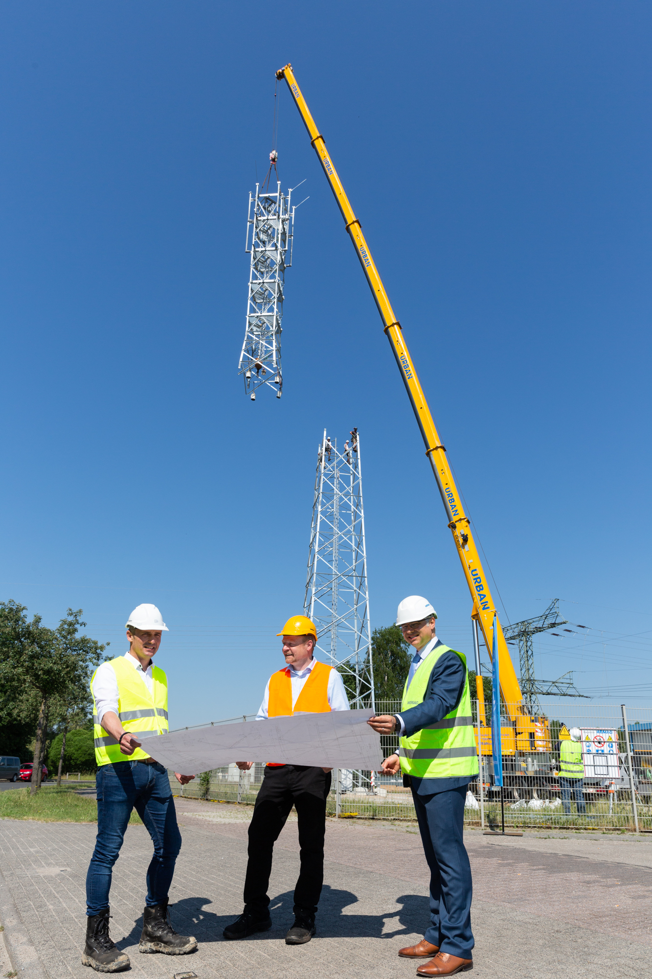 Am Umspannwerk der WEMAG Netz GmbH in Zarrentin wird derzeit der neunte von insgesamt 34 Funkmasten im Netzgebiet der WNG errichtet. Generalauftragnehmer ist die Cteam Consulting und Anlagenbau GmbH. „Der Stahlgittermast wird etwa 40 Meter hoch. Er besteht aus vier Segmenten, die am Boden vormontiert und mit einem Kran aufgesetzt werden. Nach Fertigstellung des Mastes, inklusive aller Plattformen, Antennenhalterungen, Steigleitern und Kabelwege, werden die restlichen Arbeiten im Außenbereich der Anlage durchgeführt, sodass die schlüsselfertige Übergabe an den Kunden erfolgen kann. Die Montage der Funktechnik ist zu einem späteren Zeitpunkt vorgesehen“, erklärt Michael Hammes, Bereichsleiter Mobilfunkmastbau bei Cteam. Das Unternehmen plant und baut Mobilfunkmaste in ganz Deutschland und bedient für Kunden das komplette Spektrum im Mobilfunksektor.