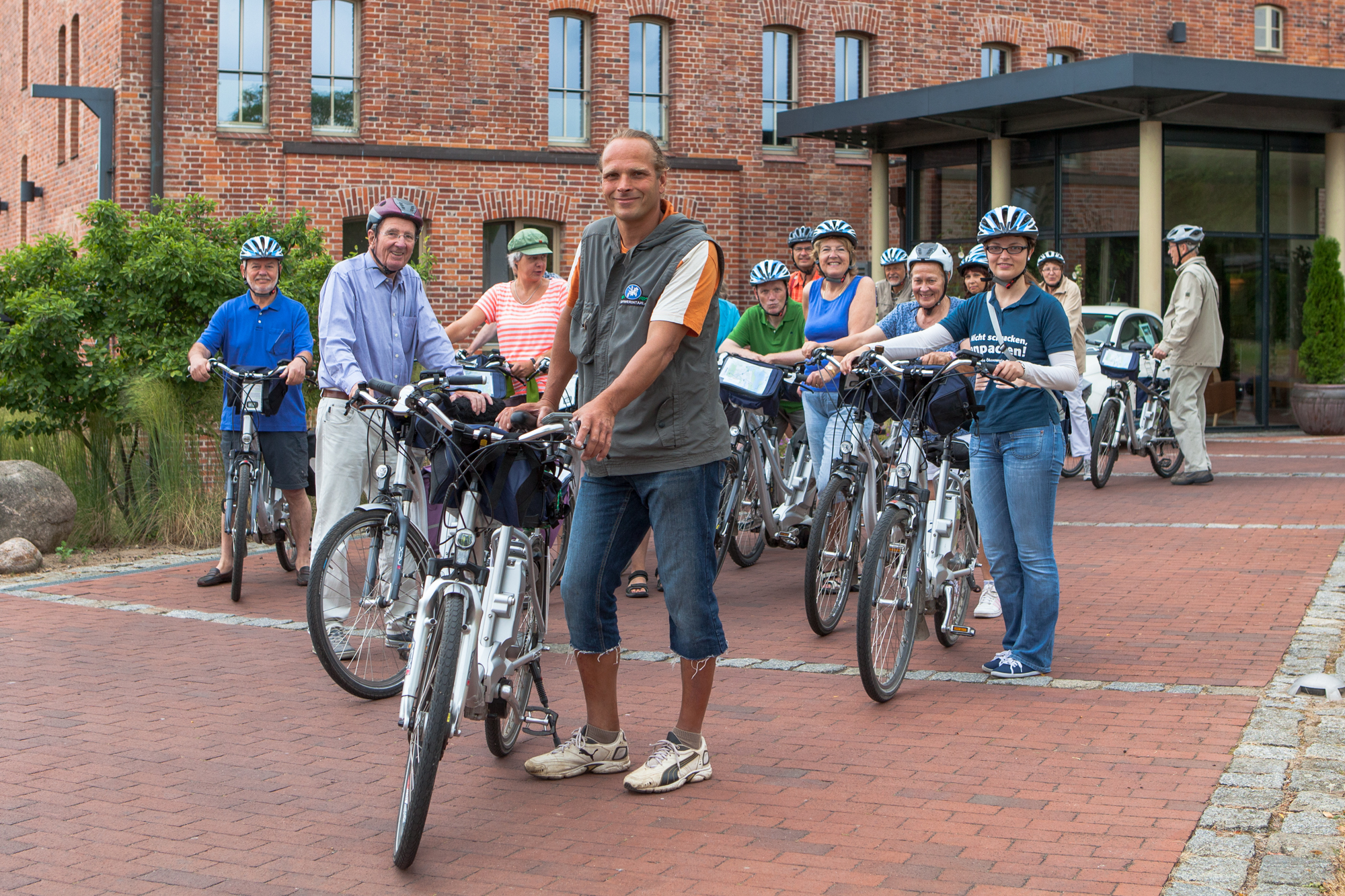 Nach der Übernachtung im Hotel Speicher am Ziegelsee übernahm Claas Baumann die Führung für diesen Tag. "Unsere erste Zwischenstation war am Ramper Moor", erläuterte Baumann, der sonst in Schwerin einen Rikscha-Service betreibt. Zusammen mit Heidrun Lohse hatte er die Strecke konzipiert und darauf geachtet, dass möglichst viele landschaftlich reizvolle Gegenden und Sehenswürdigkeiten angefahren werden. So besuchten sie unter anderem das Waldglasmuseum in Langen Brütz, die Mammutbäume bei Weberin und den Schulzenhof in Gneven, wo das Team auch seine Mittagspause einlegte. Der Weg zurück nach Schwerin führte zum Gestütswärterhäuschen in Raben Steinfeld, am Schweriner See entlang und durch den Schlossgarten. Besonderer Höhepunkt war die im Rahmen der Tour von der WEMAG angebotene Probefahrt mit einem elektrischen Fiat 500 oder dem Opel Ampera.