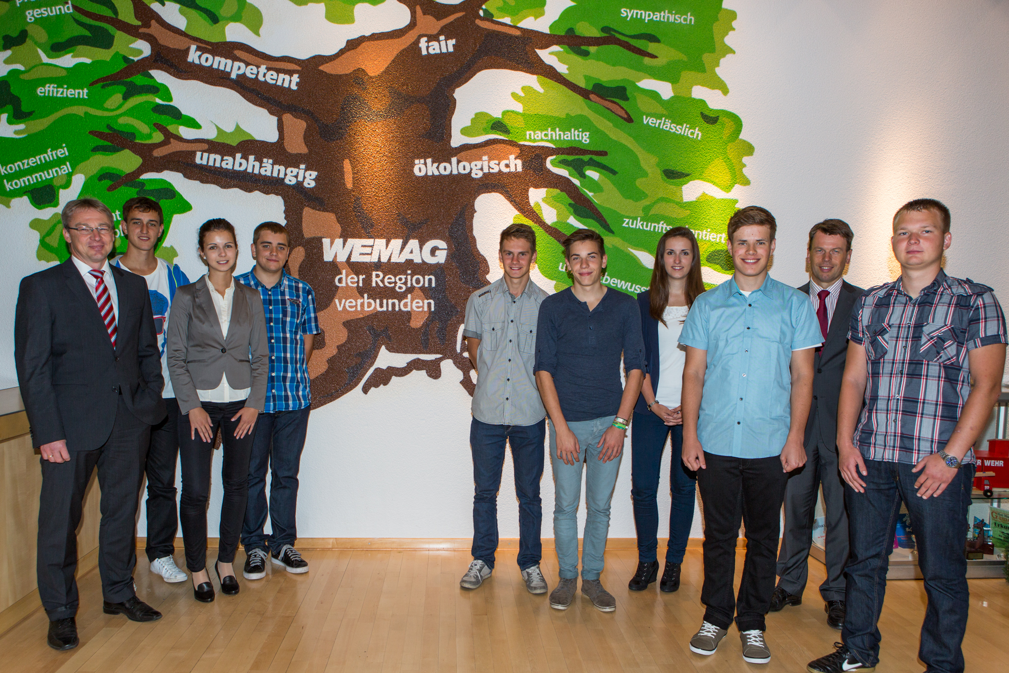 Die Azubis und Studenten wurden vom WEMAG-Vorstand Caspar Baumgart und Thomas Pätzold sowie Personalleiter Michael Enigk begrüßt. Der technische Vorstand Thomas Pätzold ermunterte die Jugendlichen, sich schon während der Ausbildung zu engagieren: "Bei guten und sehr guten Leistungen übernehmen wir unsere Auszubildenden und Studenten in ein Beschäftigungsverhältnis. Ihnen stehen dann vielfältige Karrieremöglichkeiten offen." Pätzold selbst hatte 1994 als Trainee bei der WEMAG angefangen und ist seit 2010 Mitglied des WEMAG-Vorstands.