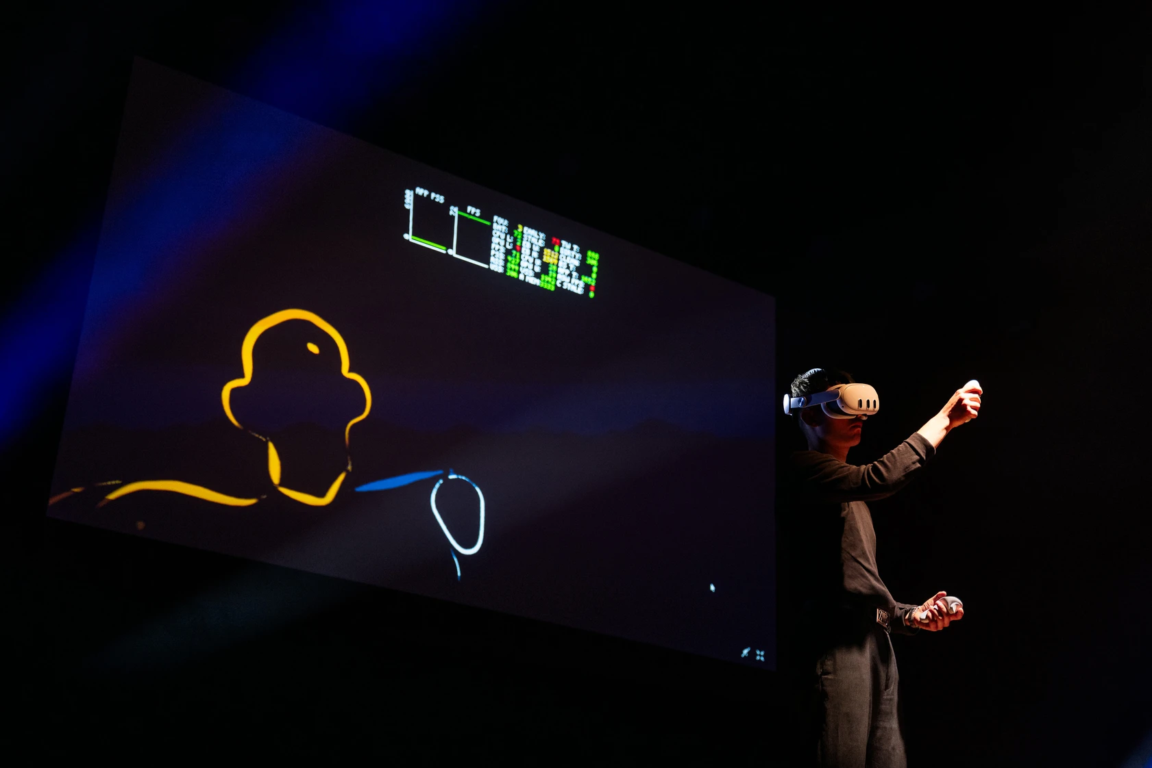Virtual Reality Artist Marvin Junker stimmte das Publikum mit seiner digitalen Kunstperformance beeindruckend auf den Abend ein. Unter dem Titel „Die digitale Transformation des Menschen – auf dem Weg zum Cyborg?“ entführte Dr. Kramer das Publikum in die Welt körperinterner Technologien, bioelektronischer Schnittstellen und sensorischer Selbstoptimierung. Was nach Science-Fiction klingt, ist für viele Menschen bereits Realität: Implantierte Mikrochips, smarte Sensoren oder magnetische Implantate werden längst nicht mehr nur in Forschungslaboren getestet – sie sind im Alltag angekommen.
