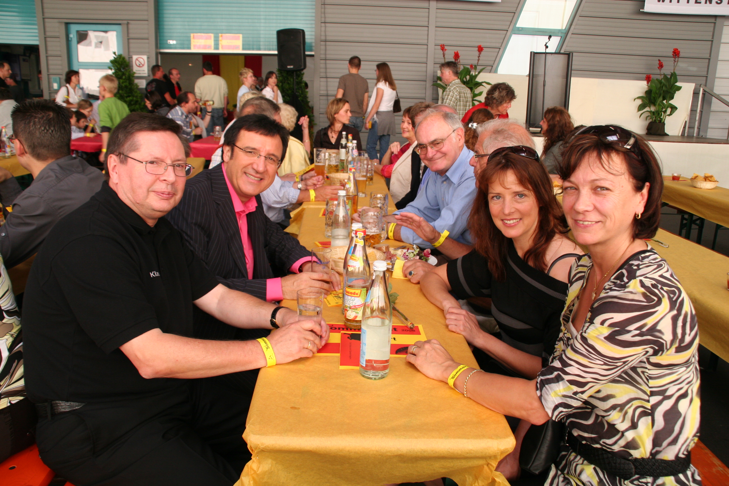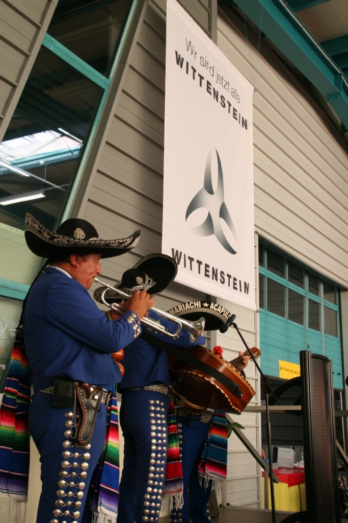 "Wir sind alle getrieben von Antriebstechnik und Mechatronik"; betonte Dr. Manfred Wittenstein in seiner kurzen Ansprache am frühen Samstagabend auf der in eine spanische "Plaza de la familia" umgebauten Fläche, auf der an normalen Werktagen eigentlich die Lastwagen der Speditionen unerlässlich Ware anliefern oder abholen. Zu Wittensteins Zuhörern gehörten neben einem Großteil der fast 1.300 Mitarbeiterinnen und Mitarbeitern der WITTENSTEIN AG auch Prof. Dr. Wolfgang Reinhart, MdL, Minister für Bundes- und Europaangelegenheiten und für den Geschäftsbereich des Staatsministeriums in Baden-Württemberg sowie Igersheims Bürgermeister Frank Menikheim.