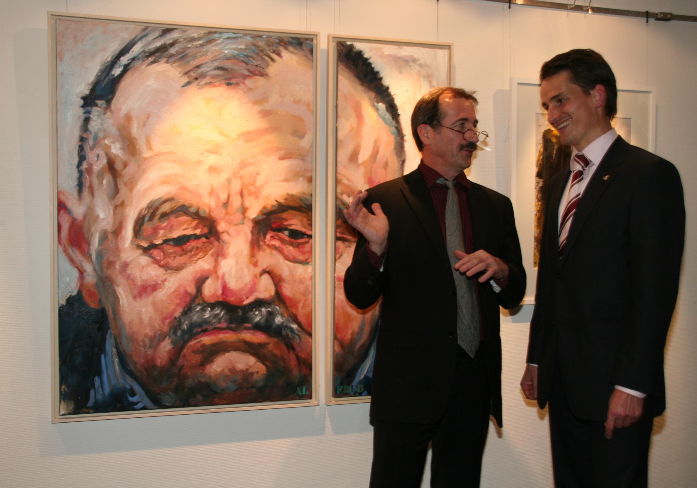 (pressebox) (Igersheim, 18.11.2008) Durchaus ungewöhnliche Prominenz "mischte" sich am vergangenen Freitagabend unübersehbar unter die mehr als 200 Gäste der 41. Vernissage bei der WITTENSTEIN AG: der Bildhauer Alfred Hrdlicka, der Schauspieler Dustin Hoffman, die Sängerin Tracy Chapman oder Rebecca Miller, Tochter des amerikanischen Schriftstellers Arthur Miller. Deren überdimensionale Gesichter in Öl sind unübersehbare Bestandteile der "Ansichten" von Gunter Schmidt. "Ansichten" - so auch der Namen der aktuellen Ausstellung im Atrium des Maschinen-bauunternehmens. In Igersheim-Harthausen die nun bis Mitte Februar 2009 (nach tel. Voranmeldung unter 07931/493-10463) besucht werden kann.
