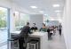 Lernen an der frischen Luft ermöglicht eine großzügige Terrasse, die auch den Pausenbereich je nach Wetterlage erweitert. Die Innenarchitektur des Gebäudes schafft fließende Übergänge von Werkstatt zu Kommunikations- und Pausenbereichen. In letzteren stehen in einer Teeküche Getränke- und Snack-Automaten, freies WLAN, Tischkicker, Tischtennisplatte und Basketballkorb zur Verfügung. Und wer in Fahrgemeinschaften zur Ausbildung fährt und so die Umwelt schont, kann die direkt am Gebäude dafür reservierten Parkplätze nutzen.