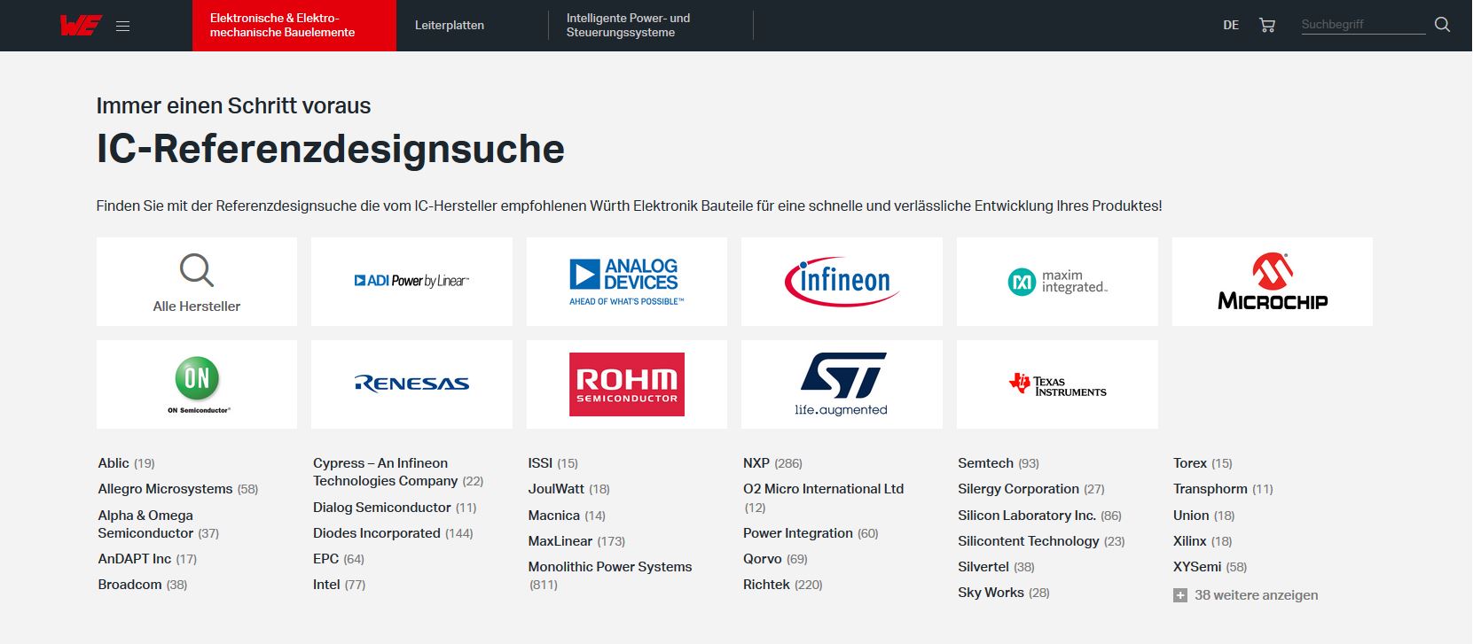 Mit wenigen Klicks finden Entwickler die vom IC-Hersteller empfohlenen Würth-Elektronik-Bauteile für eine schnelle und verlässliche Entwicklung ihres Produktes und können sofort kostenlose Muster bestellen oder beliebige Stückzahlen anfragen. Insgesamt sind jetzt über 25 000 Würth Elektronik-Bauteile hier referenziert.