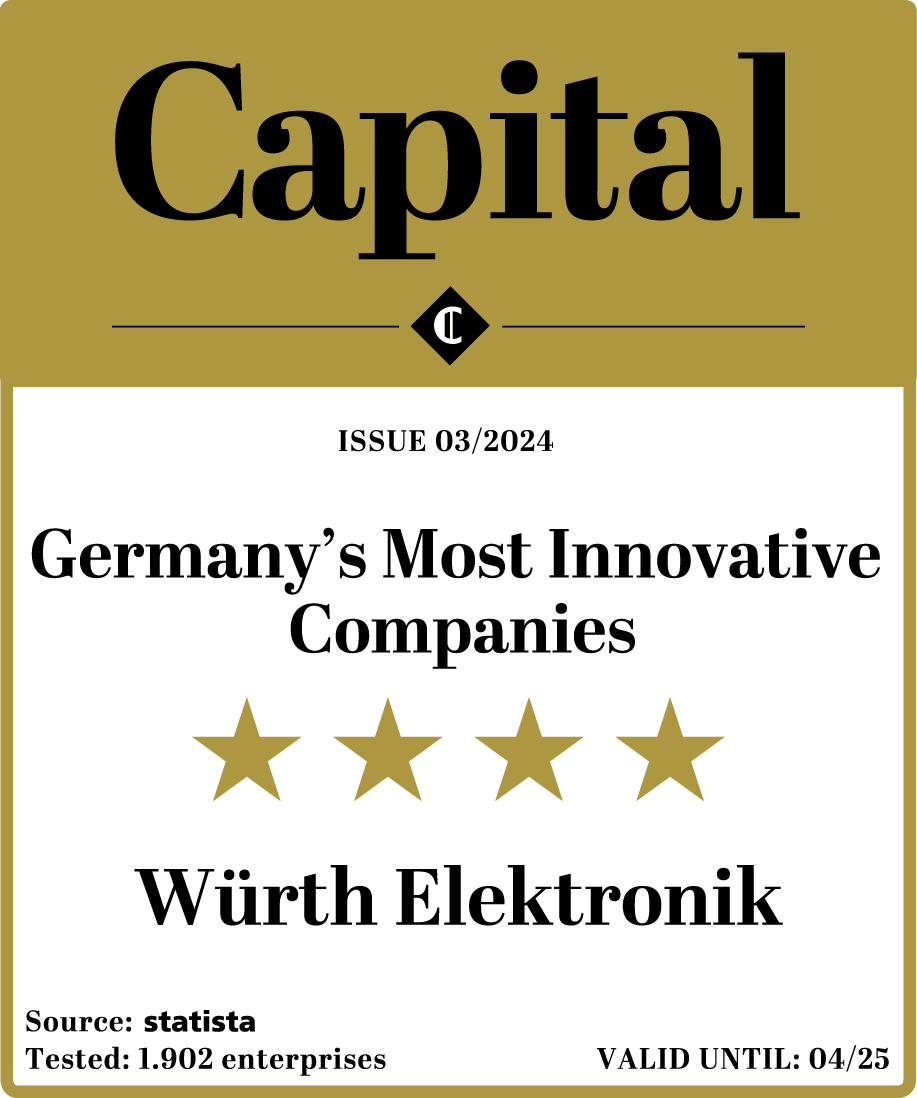 In der Umfrage konnten 3 566 Innovationsfachleute aus insgesamt 1 902 Kandidaten die führenden Unternehmen ihrer Branchen auswählen. Unter den als besonders innovativ geltenden 465 Organisationen ist Würth Elektronik auch in diesem Jahr vertreten. Der Hersteller erreichte vier Sterne.
