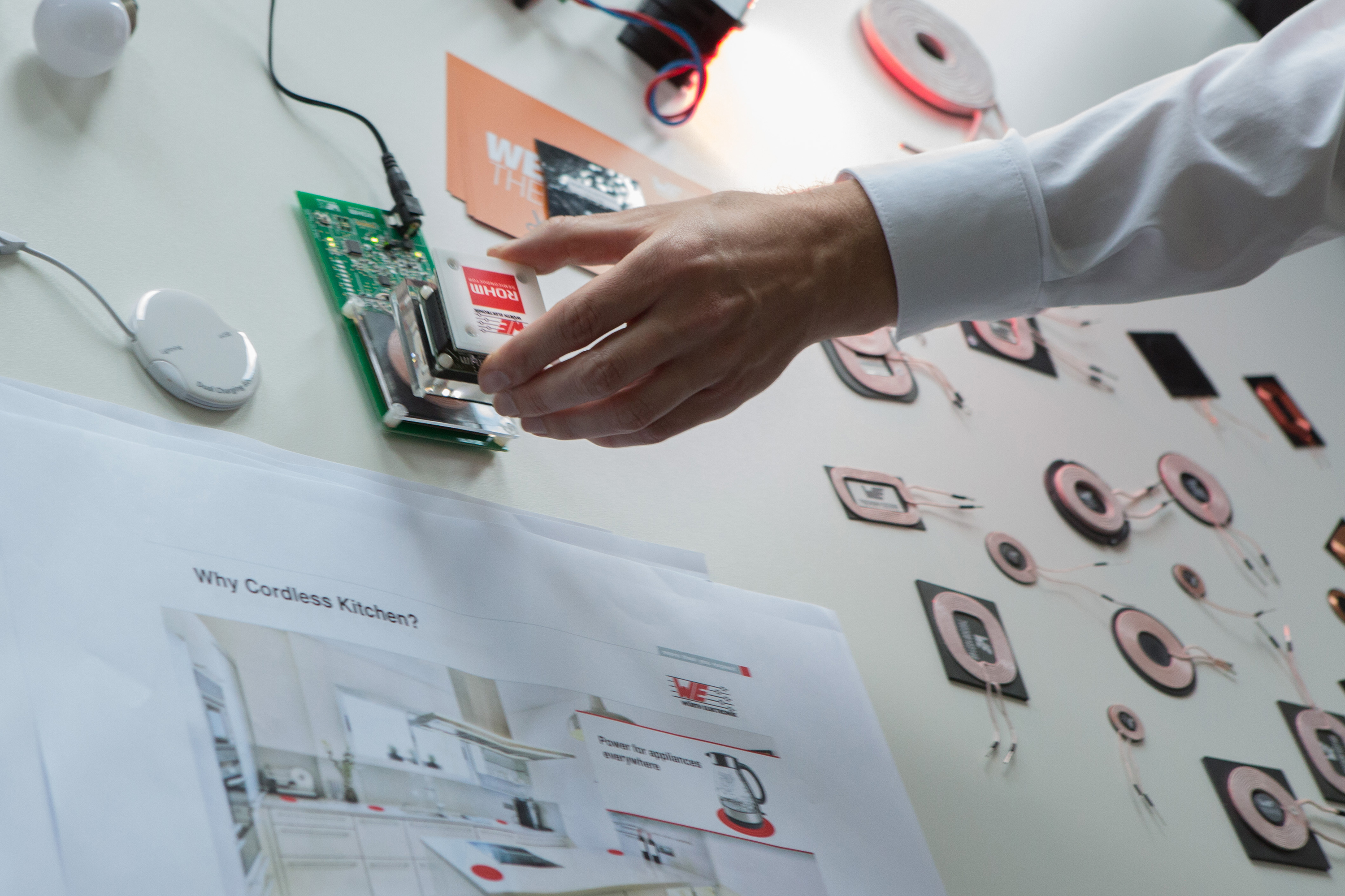 Wo sonst Unternehmen Unterstützung in der Anwendungsentwicklung bekommen, tummelten sich am Mittwochabend Besucher jeden Alters. Sie lauschten den spannenden Einführungen in neue Technologien, wie beispielsweise der kabellosen Energieübertragung oder dem „Ernten“ von Energie aus Vibrationen und Temperaturunterschieden. Mit den allgemein verständlichen Präsentationen zu produktbezogenen Themen war vor der „Nacht der Industrie“ bereits ein „Nachmittag der Elektronik“ gestaltet worden: Schülerinnen und Schüler der Freien Schule Anne-Sophie Berlin in Trägerschaft der Stiftung Würth kamen bereits am Nachmittag in den Genuss einer exklusiven Vorpremiere dessen, was die rund 100 Besucher am Abend interessiert aufnahmen: überraschende Einsichten zu elektronischen Komponenten, die uns ständig begegnen, ohne dass wir sie beachten – angefangen bei Steckverbindern über Bauteile zur Speicherung und Filterung, Kondensatoren, Trafo- und Schaltungsschutz, LEDs, Wireless Power bis hin zu Energy Harvesting.