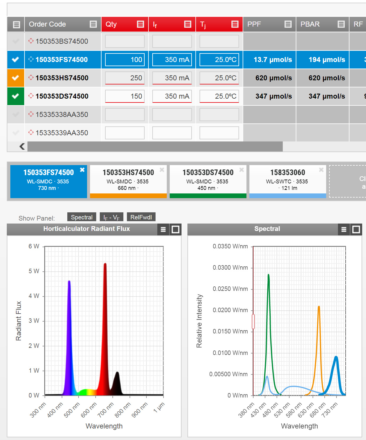 Mit REDEXPERT nimmt Würth Elektronik eiSos Entwicklern viel Arbeit bei der Qualifizierung von Bauteilen ab. So liegen zum Beispiel für DC-Folienkondensatoren alle Diagramme bereit, die für eine leistungsfähige Designanalyse benötigt werden – basierend auf den Messdaten ∆CvsF, ZvsF, ESRvsF. Der neu integrierte „Horticulator" ermöglicht die Gestaltung individueller Lichtrezepte für den Einsatz von Horticulture-LEDs. Aus Angaben zur Anzahl der verwendeten LEDs, des Eingangsstroms und der Eingangsverbindungstemperatur können unter anderem Vollspektren, fotosynthetischer Photonenfluss (PPF) und Wellenlängen-Farbverhältnisse berechnet werden.