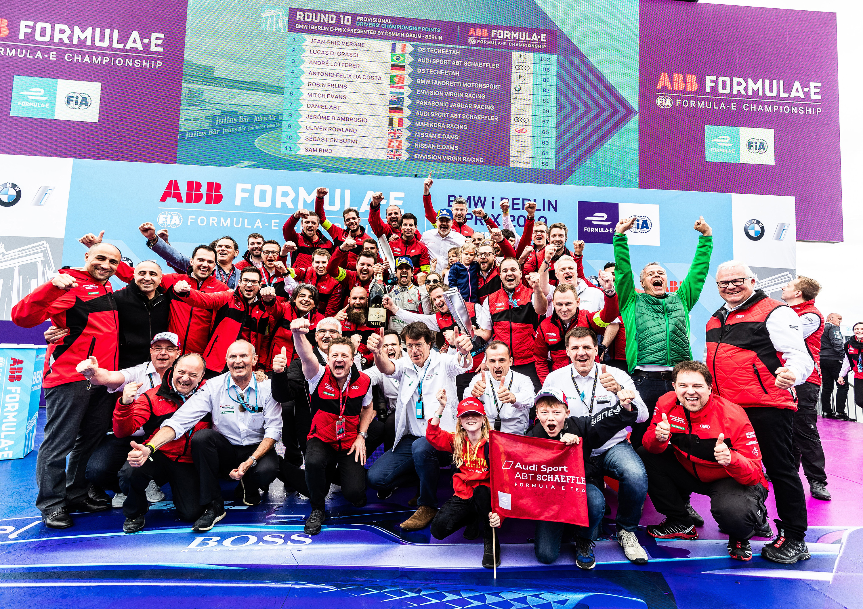 Das deutsche Heimrennen läutete für das Rennteam Audi Sport ABT Schaeffler die heiße Endphase der diesjährigen Saison ein. Am Ende fiel der Sieg unter den 11 Teams eindeutig aus: Lucas di Grassi gewann das Rennen in Berlin. Daniel Abt fuhr als Sechster durch das Ziel. Somit belegt das Team nach dem 10. von 13 Rennen dieser Saison in der aktuellen Gesamtwertung Platz 2 der Konstrukteurs-Teamweltmeisterschaft. Es folgen ein Rennen in Bern (22.06.2019) sowie ein Doppelrennen in New York (13./14.07.2019). Alexander Gerfer, CTO der Würth Elektronik eiSos Gruppe, freut sich über das positive Rennergebnis in Berlin: „Es war wieder unglaublich spannend, das Rennen aus nächster Nähe zu verfolgen. Als Technologiepartner von Audi Sport ABT Schaeffler sind wir natürlich besonders stolz auf diese absolute Spitzenleistung.“ Oliver Konz, Geschäftsbereichsleiter der Würth Gruppe, fügt hinzu: „Einmal mehr hat das Team gezeigt, was in ihm steckt. Sein Erfolg beweist uns, dass wir gemeinsam auf dem richtigen Weg sind. Es war für uns alle ein mehr als erfreulicher Tag.“