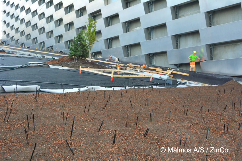 Planung und Umsetzung dieser phantastischen Vision der Architekten vollzog sich innerhalb der letzten neun Jahre Schritt für Schritt. Dank enger Zusammenarbeit der Projektbeteiligten von Anbeginn gelang es, die anspruchsvollen Herausforderungen einer in dieser Form noch nie dagewesenen multifunktionalen Anlage zu meistern. In Bezug auf die Dachgestaltung waren es vor allem die Landschaftsarchitekten von SLA, der Garten- und Landschaftsbaubetrieb Malmos A/S sowie der Dachbegrünungsspezialist ZinCo, für dessen Ingenieure ein Projekt dieser Extraklasse genauso neu war. Und ihr Credo „Alles ist möglich auf Dächern“ verwirklichte sich.