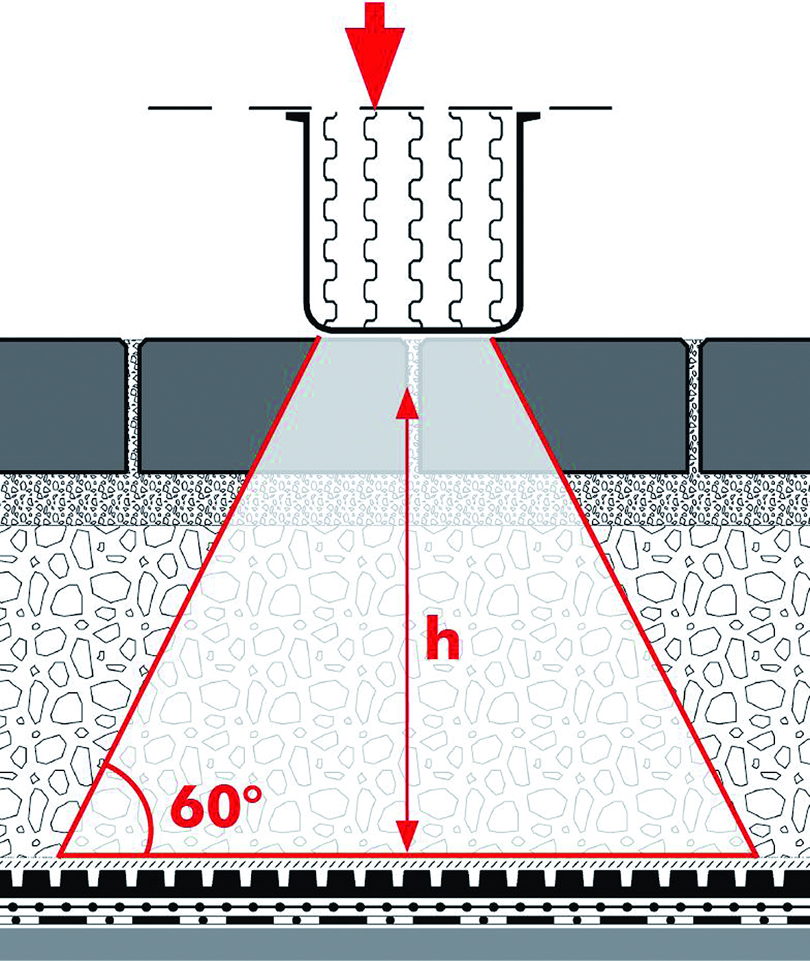 Werden Tiefgaragendecken von Schwerlastverkehr wie Liefer-, Feuerwehr- oder Müllfahrzeugen befahren, sind druckverteilende Schottertragschichten mit Aufbauhöhen von 30 - 35 cm nötig, bei reiner PKW-Nutzung genügen 15 cm.