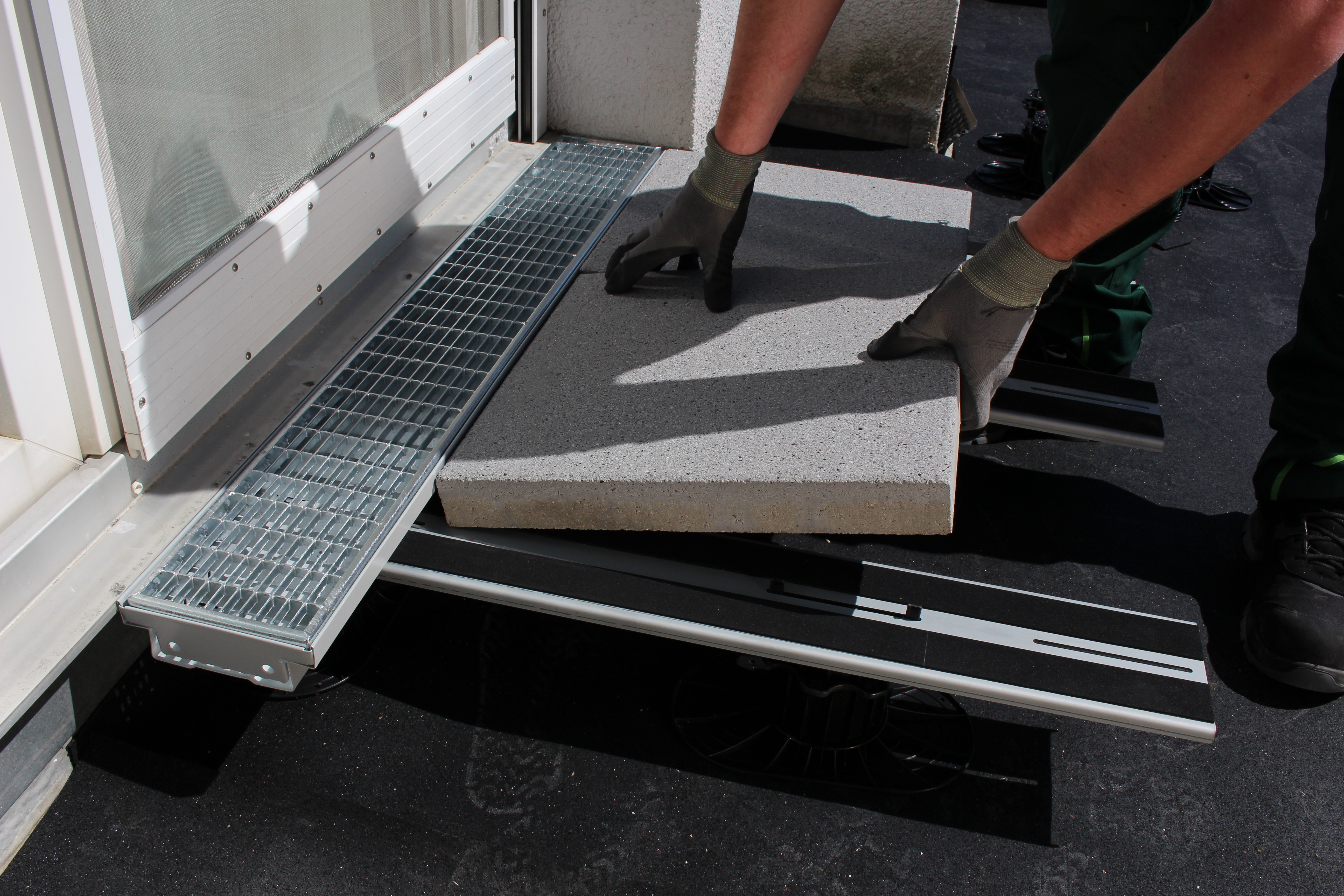 The new Elefeet pedestals are 20% more durable than their predecessors and now have an elongated base plate which allows them to be placed directly at the roof edge. The base plate now only has to be cut for the corner which is easily done thanks to the pre-marked line beneath. Four different standard versions are used for elevations of between 27 mm and approx. 200 mm, which are adjustable with millimetre precision. The height can even be increased to 500 mm with the correct extension pieces. Very few products on the market actually achieve this range. The ZinCo attention to detail truly comes into its own where the slabs are to be laid diagonally to the edge, large insulation wedges have to be bridged and the flooring has to be extended as far as the door exits. A cantilever arm support, a mitre cut support and much more allow for virtually any flooring to be used in almost any construction situation.