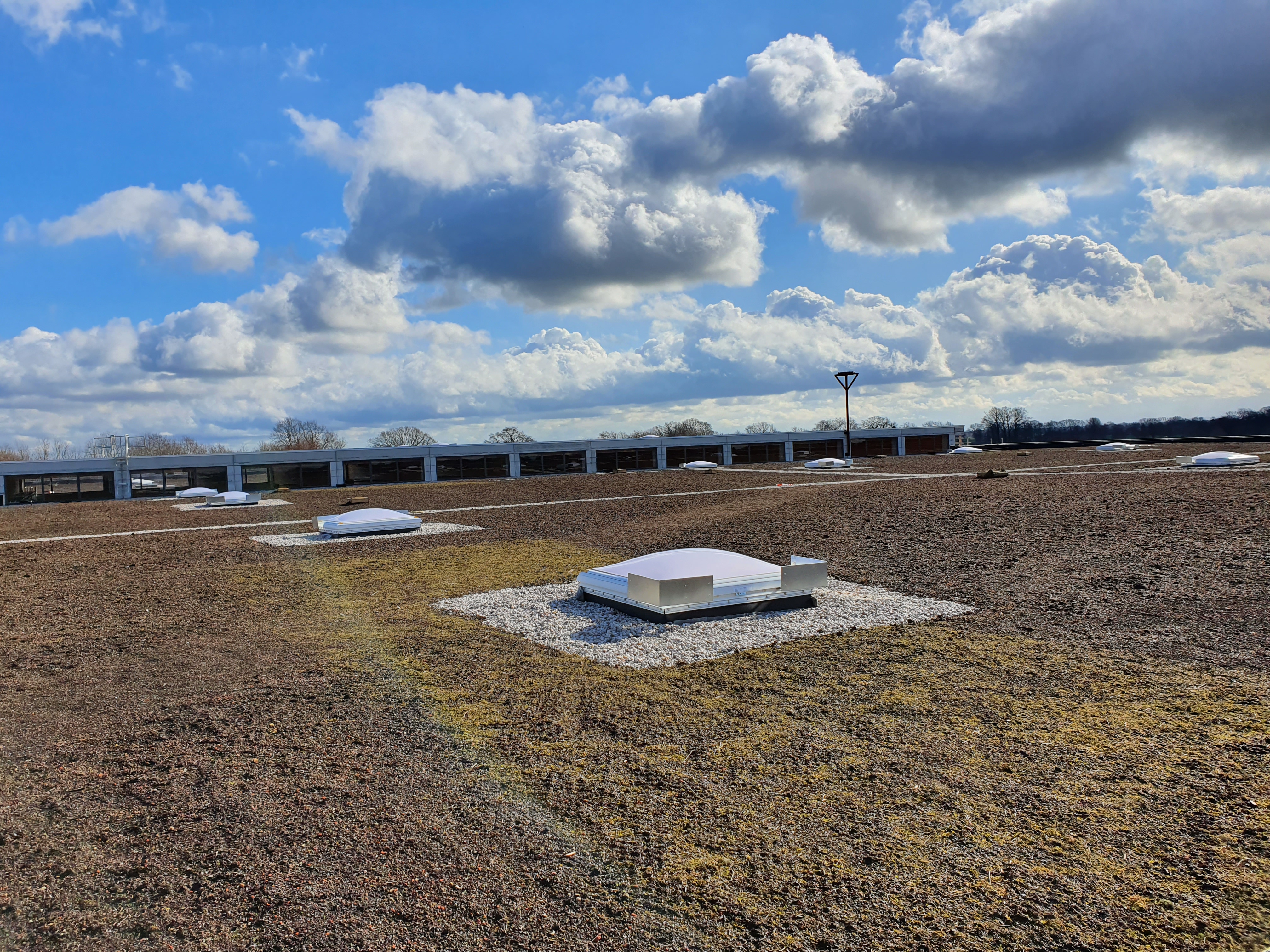 Für die Forschung an den Wildpflanzen standen bisher 54 Versuchsflächen auf dem Dach des Bibliotheks- und Hörsaalgebäudes am Campus zur Verfügung. Zu diesen 500 m² gesellen sich nun unschlagbare 10.000 m² Dachfläche auf dem neuen Warenlager der Firma Lütvogt. „Für uns ist das auch ein Pilotprojekt. So groß hat es das noch nicht gegeben“, betont Prof. Dr. Kathrin Kiehl. Die Finanzmittel für den Bau der Versuchsflächen und die Durchführung des bis 2020 laufenden RooBi-Projekts kamen vom Europäischen Fonds für Regionale Entwicklung sowie vom Land Niedersachsen. Mit dieser Unterstützung und hohen eigenen Finanzmitteln konnte Dirk Lütvogt das regionaltypische Biodiversitäts-Gründach genau so umsetzen, wie für das Forschungsprojekt notwendig.