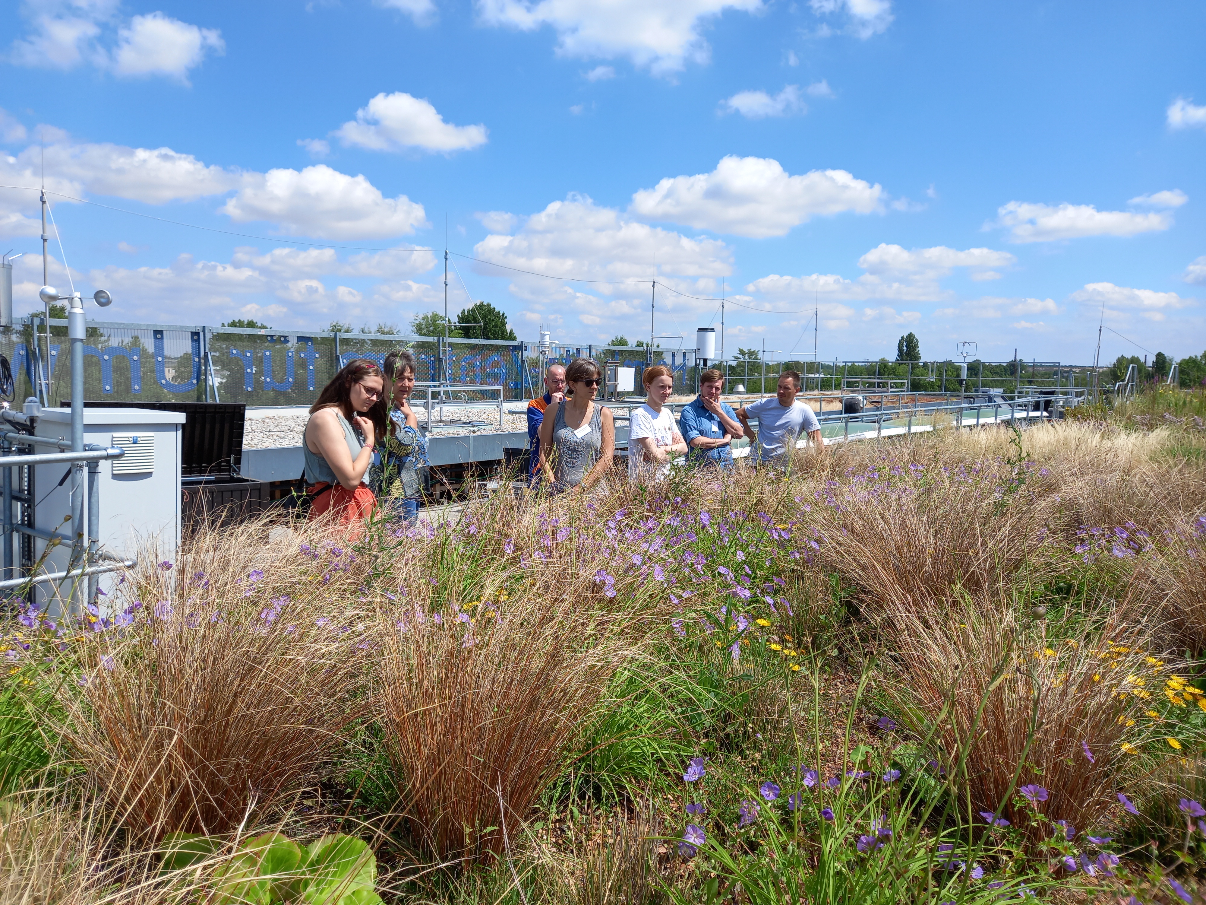 Und auf der Exkursion zu einigen Gründächern in Leipzig sahen die Studierenden live, was auf Dächern alles möglich ist. So flossen sämtliche Möglichkeiten heutiger Gründach-Systemtechnik in die kreativen Entwurfsarbeiten der Studierenden ein – von Retentions-Gründächern über Biodiversitätsmodule bis zur Kombination mit Photovoltaik und Windenergieanlagen.