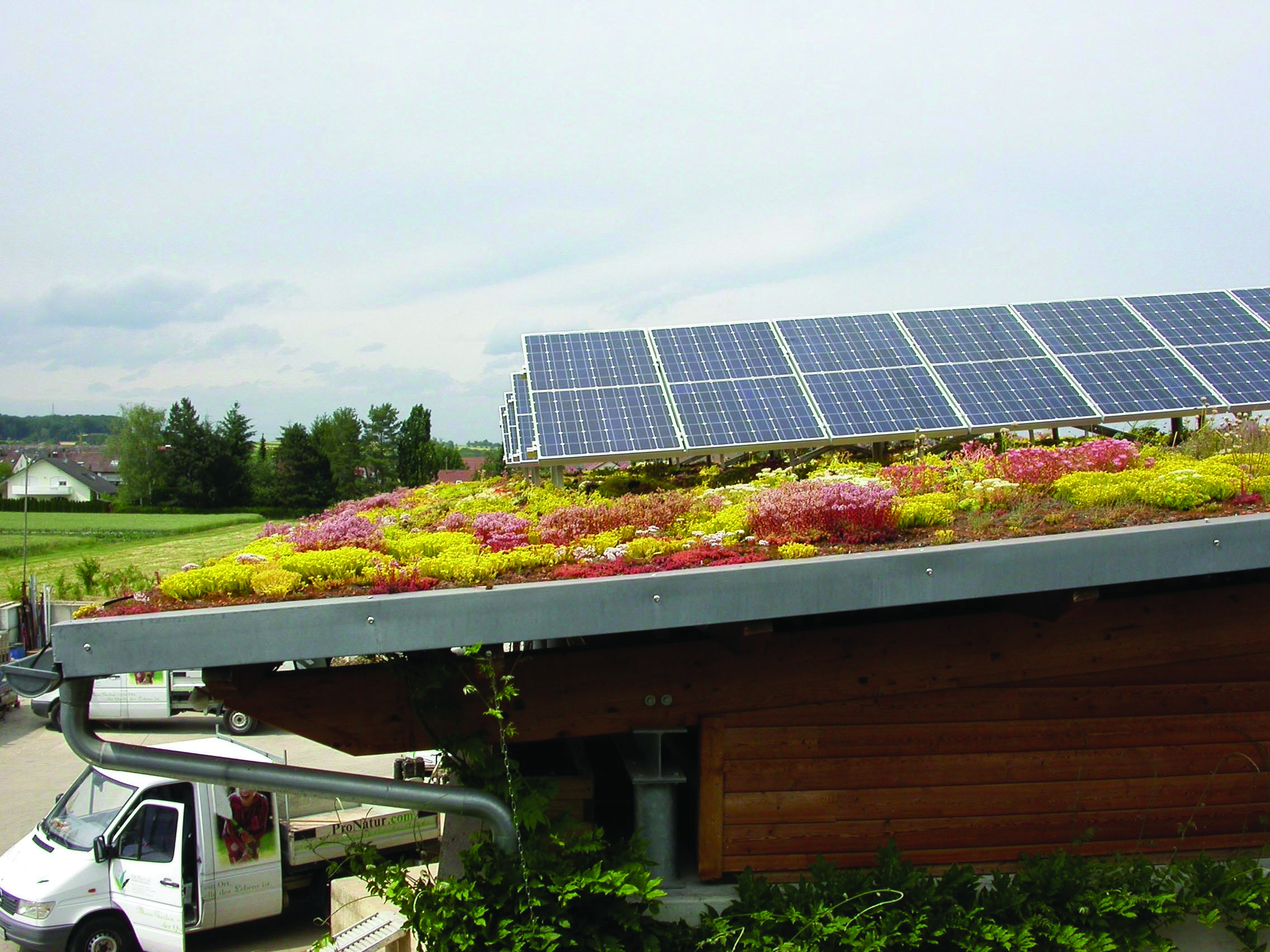 (pressebox) (Nürtingen, 11.07.2007) Gründächer erfüllen vielerlei Funktionen. Sie ergänzen die Wärmedämmung, schützen die Dachdichtung, bieten Lebensraum für Pflanzen und Tiere, halten Regenwasser zurück, verbessern das Kleinklima und stellen wichtige Ausgleichs- bzw. Erholungsflächen dar. Eine weitere Art der Nutzung kommt dazu: die Nutzung der Sonnnenenergie zur Stromerzeugung (Photovoltaik) oder Warmwasseraufbereitung bzw. zur Heizungsunterstützung (Solarthermie).