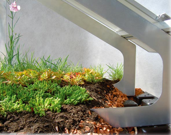 Natürlich lässt sich die Solarbasis SB 200 auch in bereits bestehende Dachbegrünungen integrieren. Mit der „Substratauflast“ entspricht sie der oben erwähnten Norm. Betonfundamente oder andere Auflastkonstruktionen können entfallen.