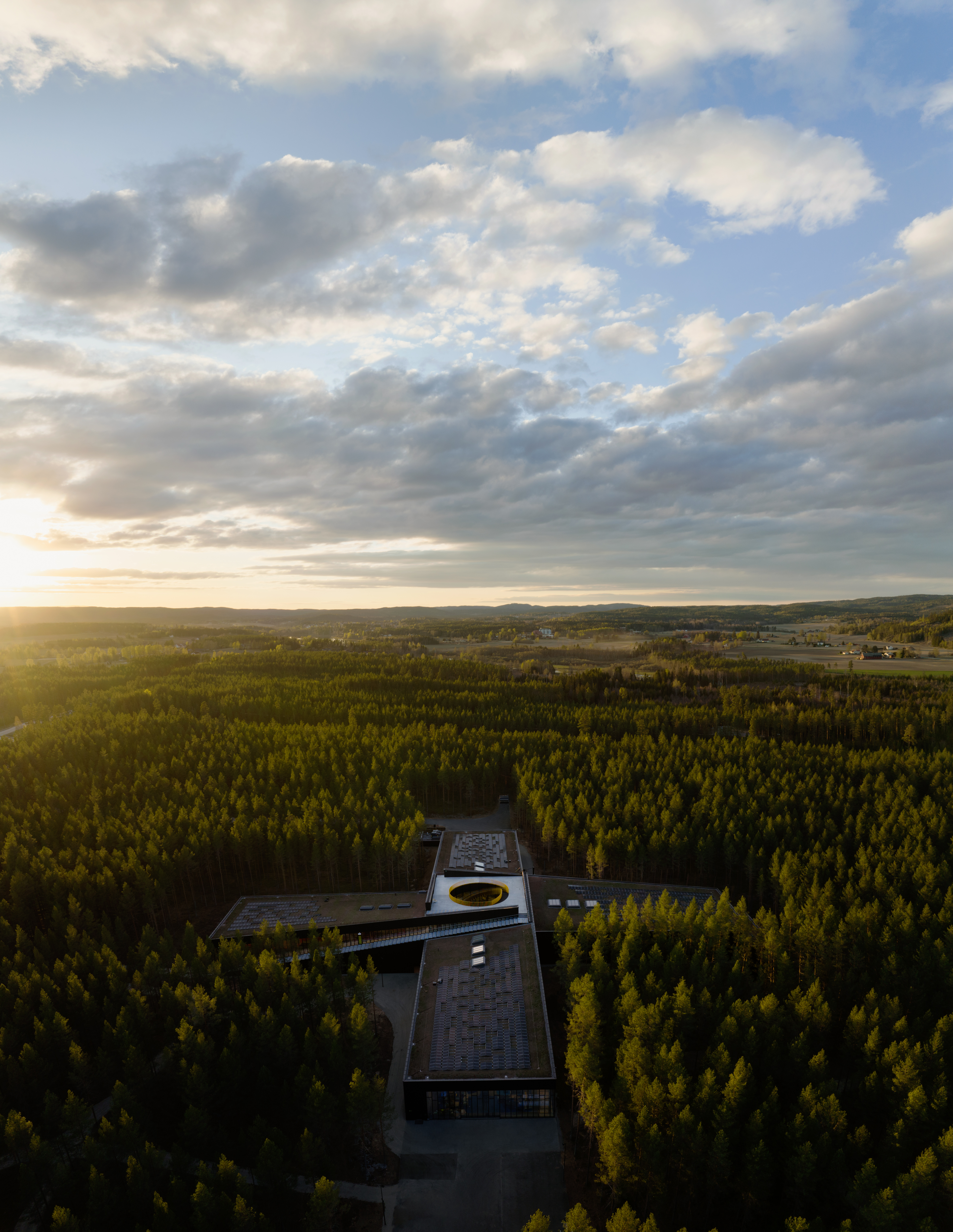 Vestre AS, operating worldwide, has been manufacturing urban furniture for over 75 years now and in a particularly sustainable manner. Vestre has adopted 9 of the 17 UN Sustainable Development Goals directly into their corporate policy and measures its success on the basis not only of financial results but also environmental and social results. In their search for a location for their new factory they settled on the Norwegian village of Magnor with a population of about 900. It is in the South of the province of Innlandet, 3 km from the Swedish border and 50 km as the crow flies from the Vestre location in the Swedish town of Torsby. The glass and timber industries are well established in this densely wooded location.
