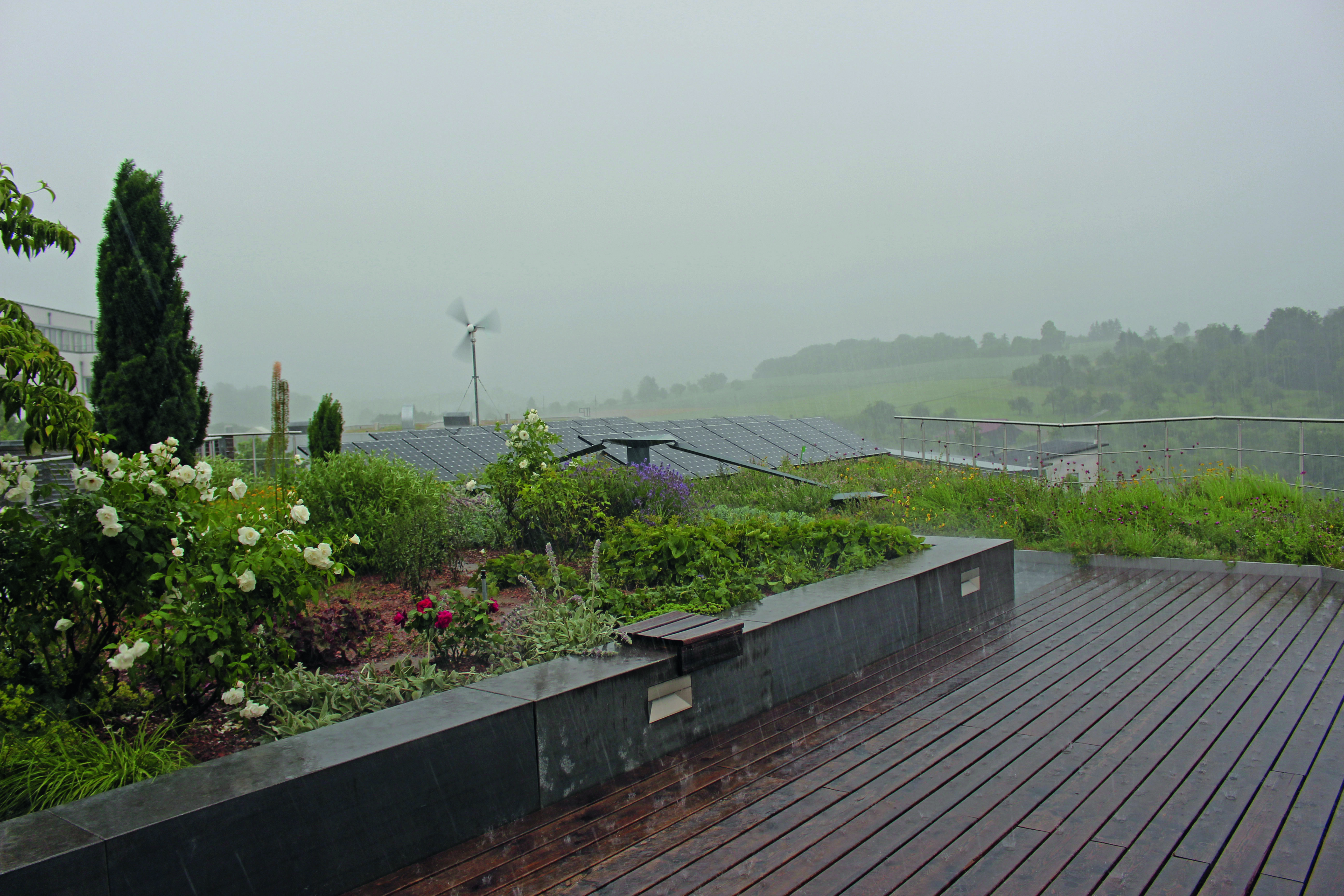Bereits in der Planungsphase sind die erforderlichen Lasten für den zusätzlichen Wasserrückhalt und die zusätzliche Aufbauhöhe zu berücksichtigen. Lediglich die in vielen Köpfen vorhandene Angst vor Wasseranstau auf dem Dach steht oft noch im Weg. Dass diese Angst unbegründet ist, beweisen mehr als vier Jahrzehnte Erfahrung mit Intensivbegrünungen, die ja seit jeher mit Anstaubewässerung auf gefällelosen Dächern (gemäß Dachabdichtungsnorm DIN 18531 und Flachdachrichtlinien) funktionssicher gebaut werden.