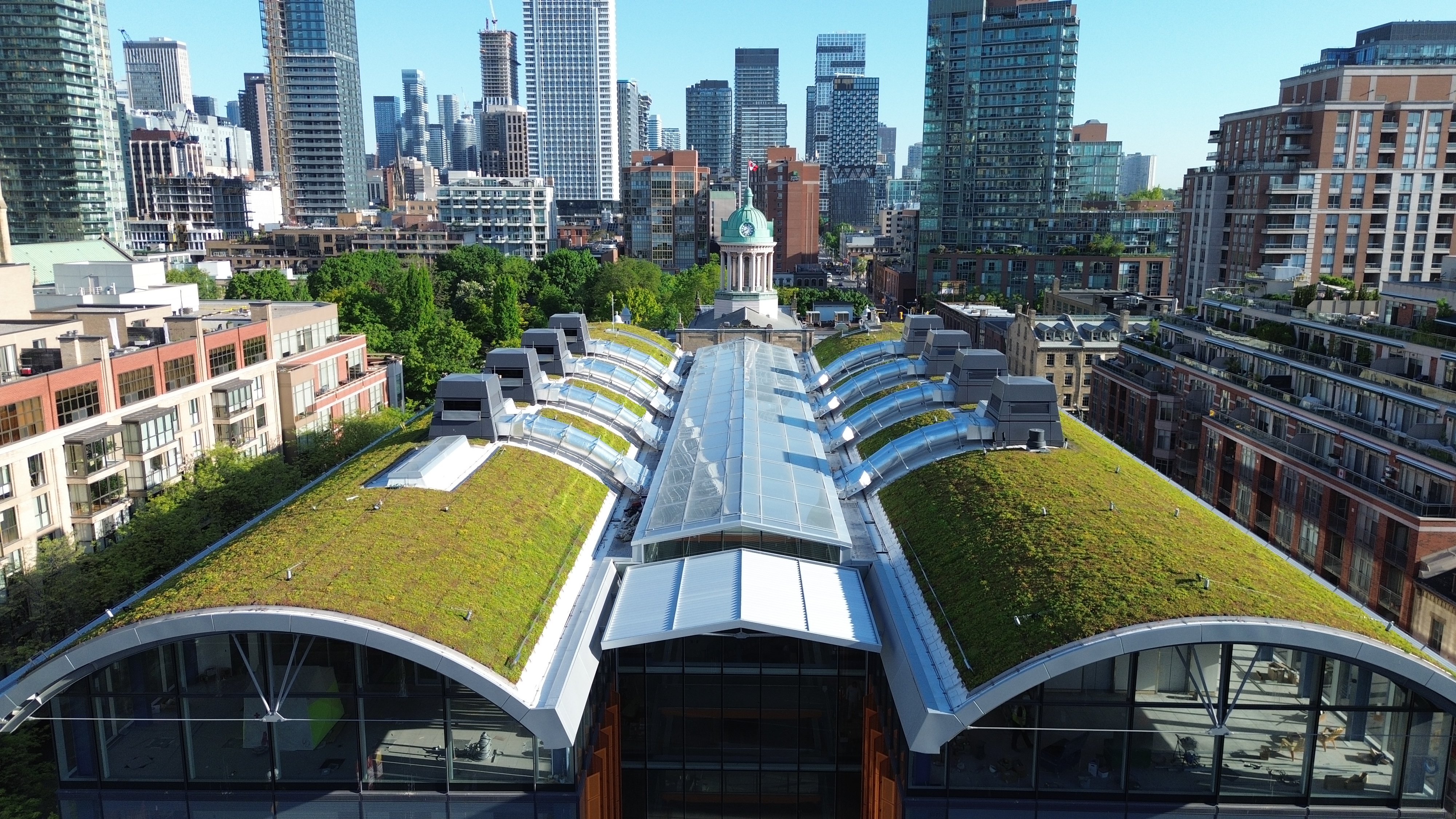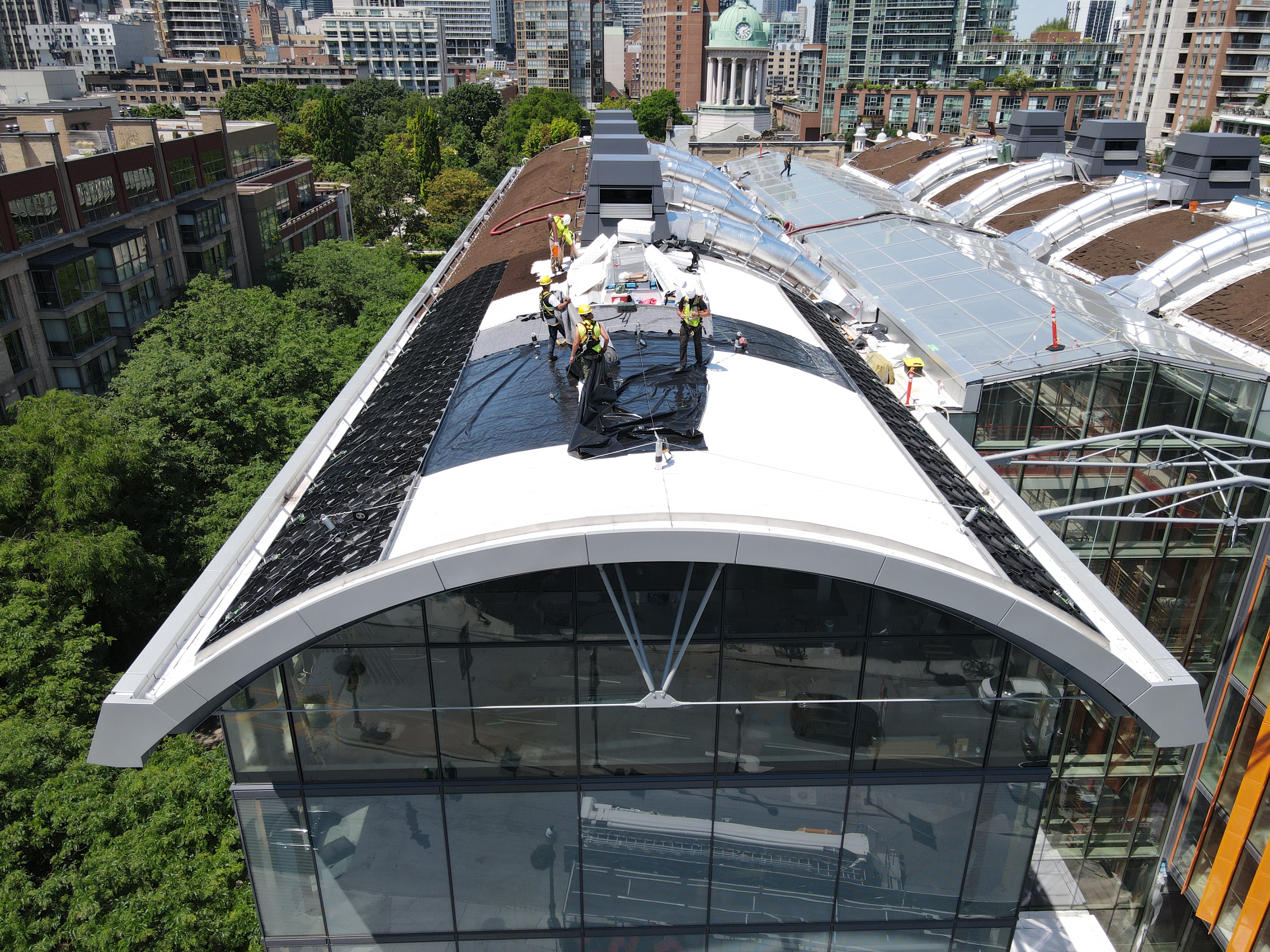 The barrel roofs rise above two of Toronto’s busiest intersections — Jarvis Street and Front Street. As such, the green roof installation posed logistical and organizational challenges.