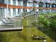 Als Dachabdichtung kam eine 6 mm dicke Flüssigabdichtung aus einer Mischung aus Bitumen und Synthesekautschuk zum Einsatz, die vom Verarbeiter heißflüssig aufgebracht wurde und die vor Ort eine Trägereinlage aus Polyester erhielt. Diese Abdichtung wurde mit einer zusätzlichen Wurzelschutzschicht versehen, bevor die Wärmedämmschicht aus extrudierten Polystyrol-Hartschaumplatten aufgebracht wurde. Auf diesen Umkehrdachaufbau schloss sich dann das Begrünungssystem an. Auf das Systemfilter SF folgten die vollflächig verlegten Drän- und Wasserspeicherelemente Floradrain® FD 40 – das Kernstück im Systemaufbau. Diese 40 mm hohen Elemente speichern Regenwasser in ihren oberseitigen Mulden und leiten Überschusswasser über das unterseitige Kanalsystem zügig ab. Eine zweite Lage Systemfilter SF grenzt die Dränschicht gegenüber der darauf folgenden Substratschicht ab und sichert damit deren dauerhafte Funktionsfähigkeit. Zum Einsatz kam hier die ZinCo-Systemerde „Dachgarten“ abgestimmt auf die gewünschte Intensivbegrünung.