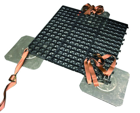 Basis sind die bekannten und lange bewährten Rasterelemente, wie sie auch bei den ZinCo-Absturzsicherungssystemen Fallnet zum Einsatz kommen. Diese Rasterelemente sind kombiniert mit drei Halteplatten – die späteren Befestigungspunkte für die Spannbänder. Da sich diese Halteplatten beliebig unter dem ca. 1 x 1 m großen Rasterelement positionieren lassen, ermöglicht das System eine ganz individuelle Anpassung an den Durchmesser des Wurzelballens und verhindert gleichzeitig ein Zusammenziehen der Haltepunkte. Der Wurzelballen ist dauerhaft stabilisiert und ein Herausziehen des Baumes unmöglich.