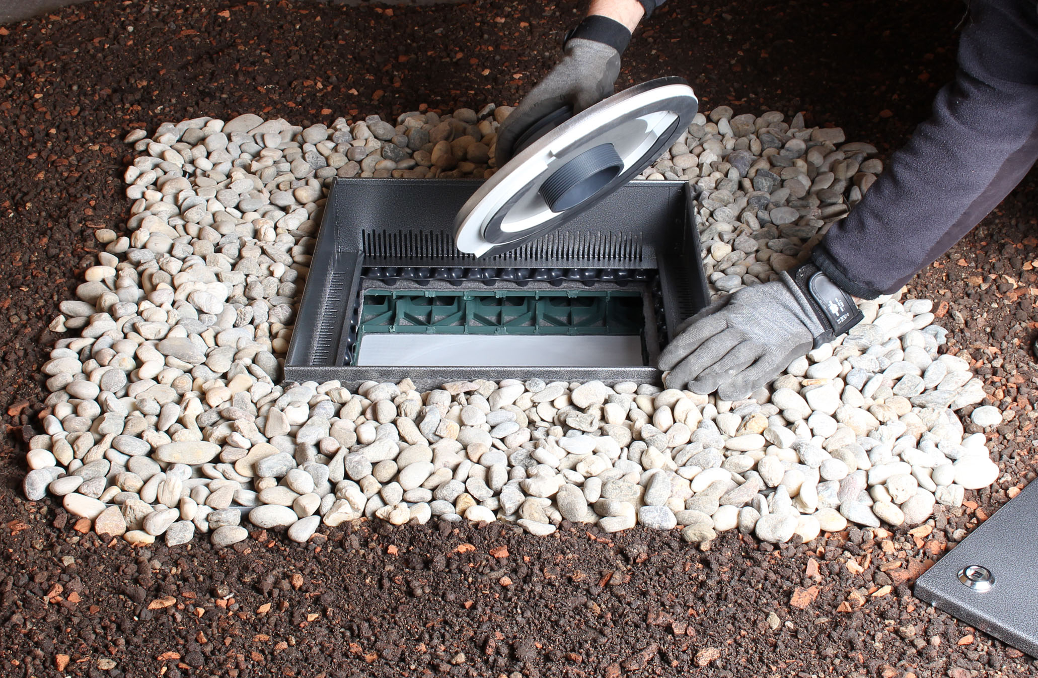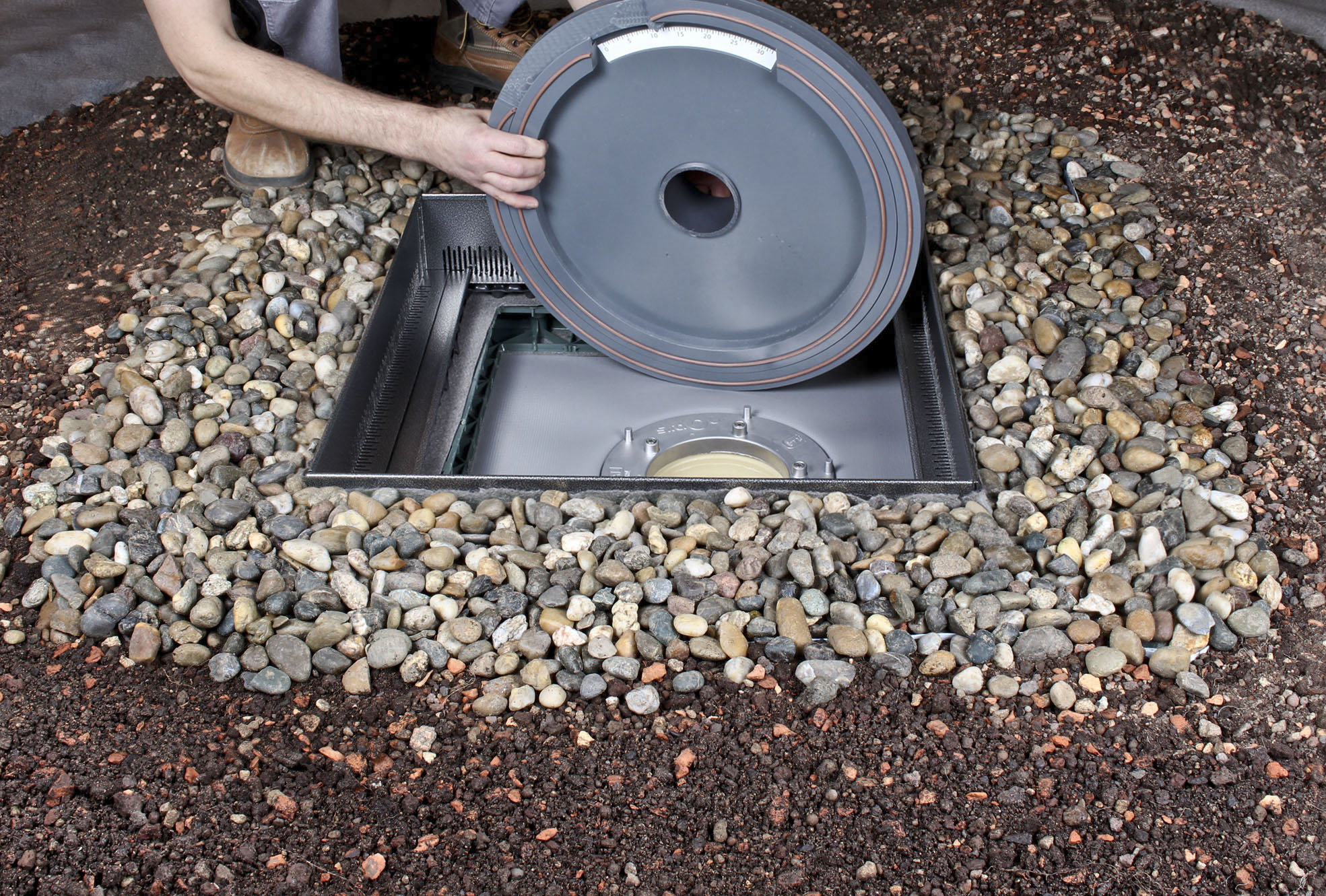 Damit all dies auch dauerhaft einwandfrei funktioniert, liegen Gully und Retentionsdrossel geschützt unterhalb eines Kontrollschachts, dessen Feinschlitzung das Einschwemmen von Fremdstoffen verhindert.